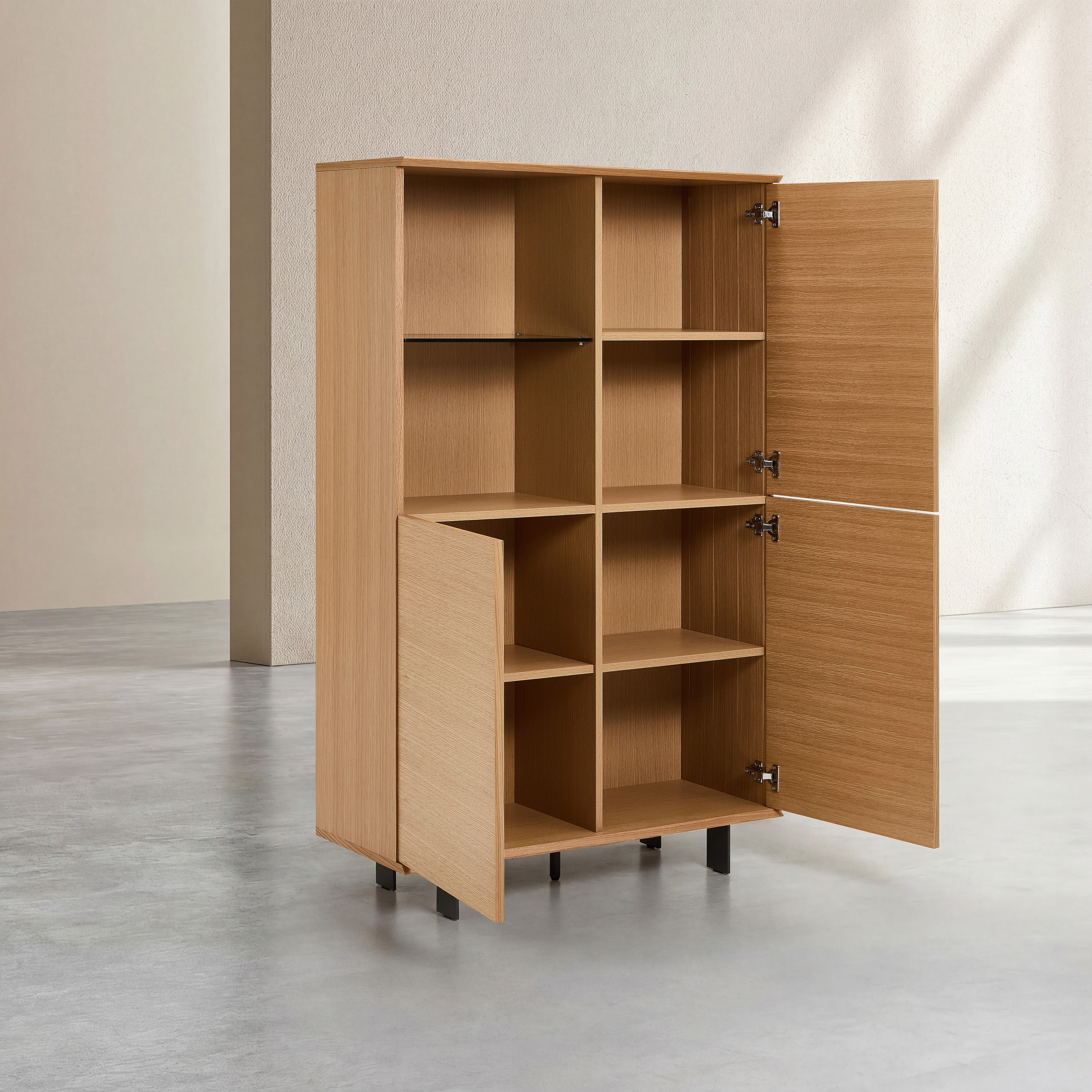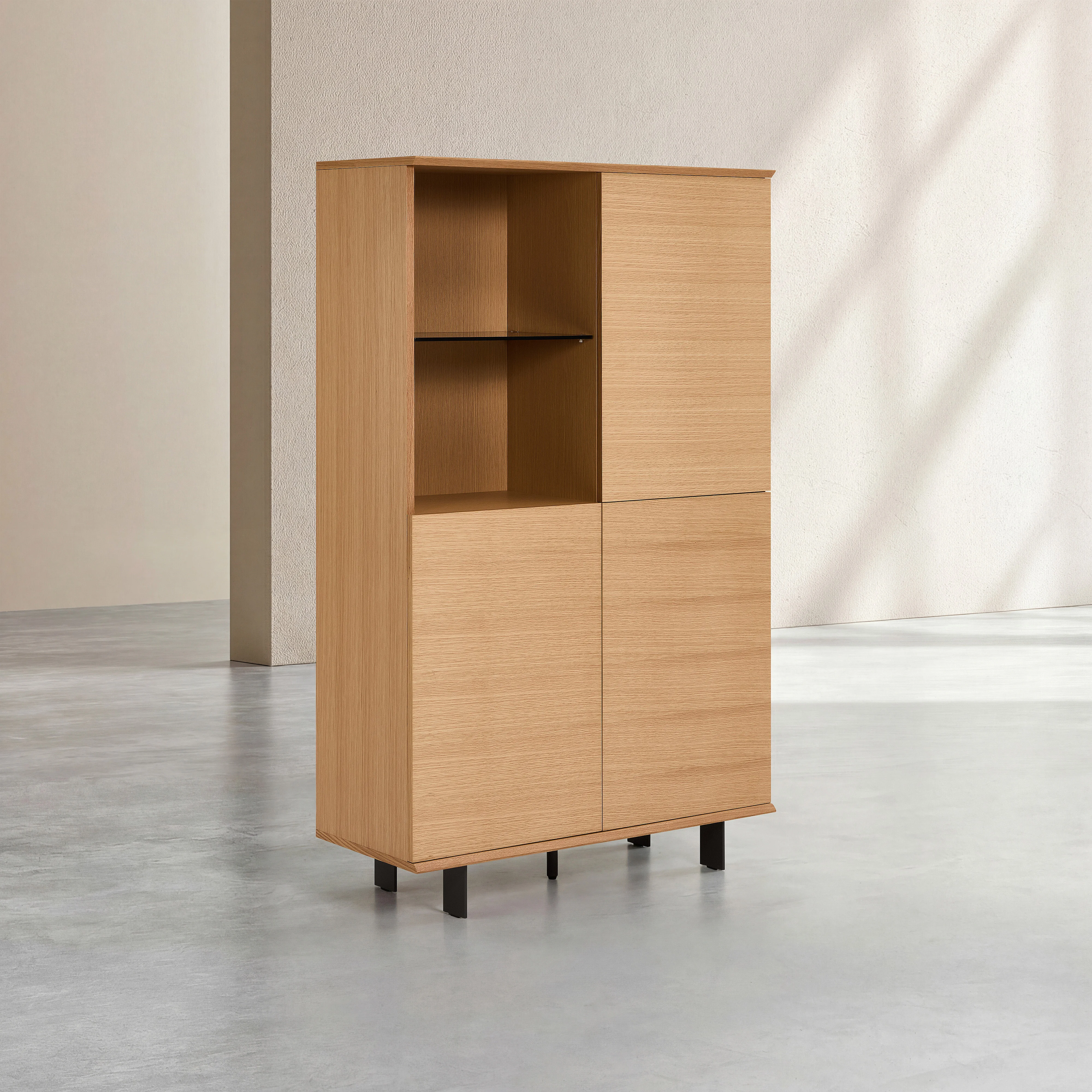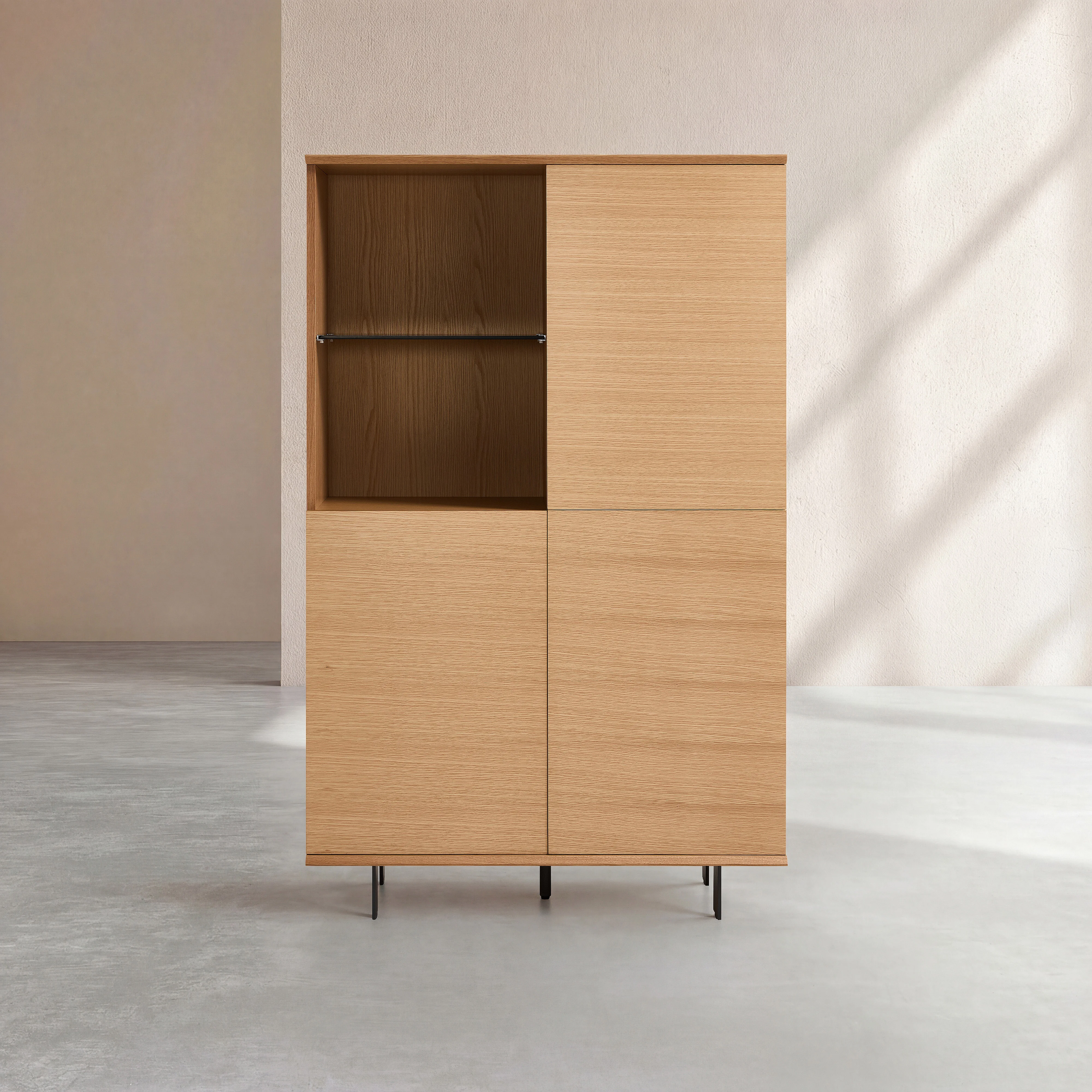 Buffet haut 3 portes en chêne et pieds en métal - Naturel