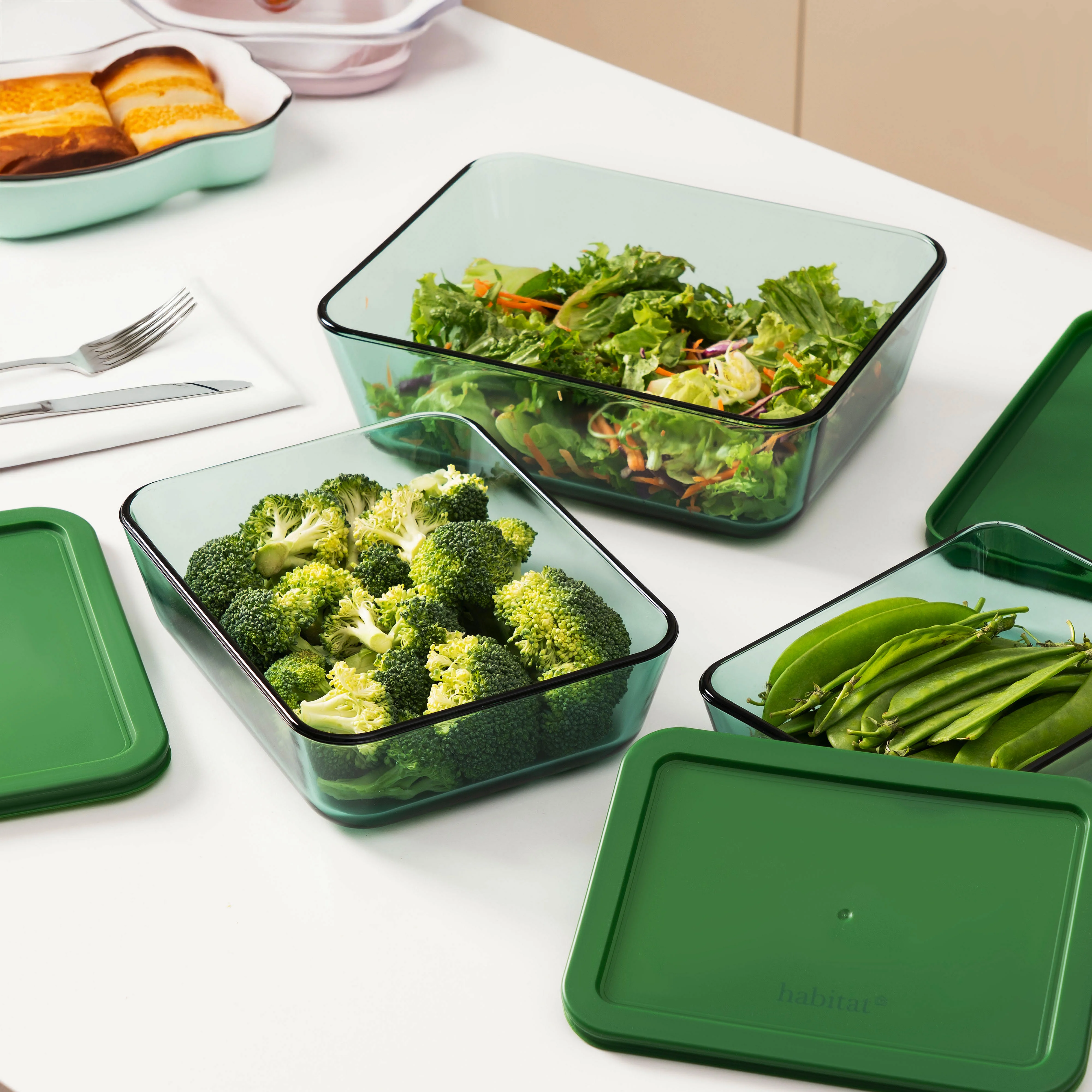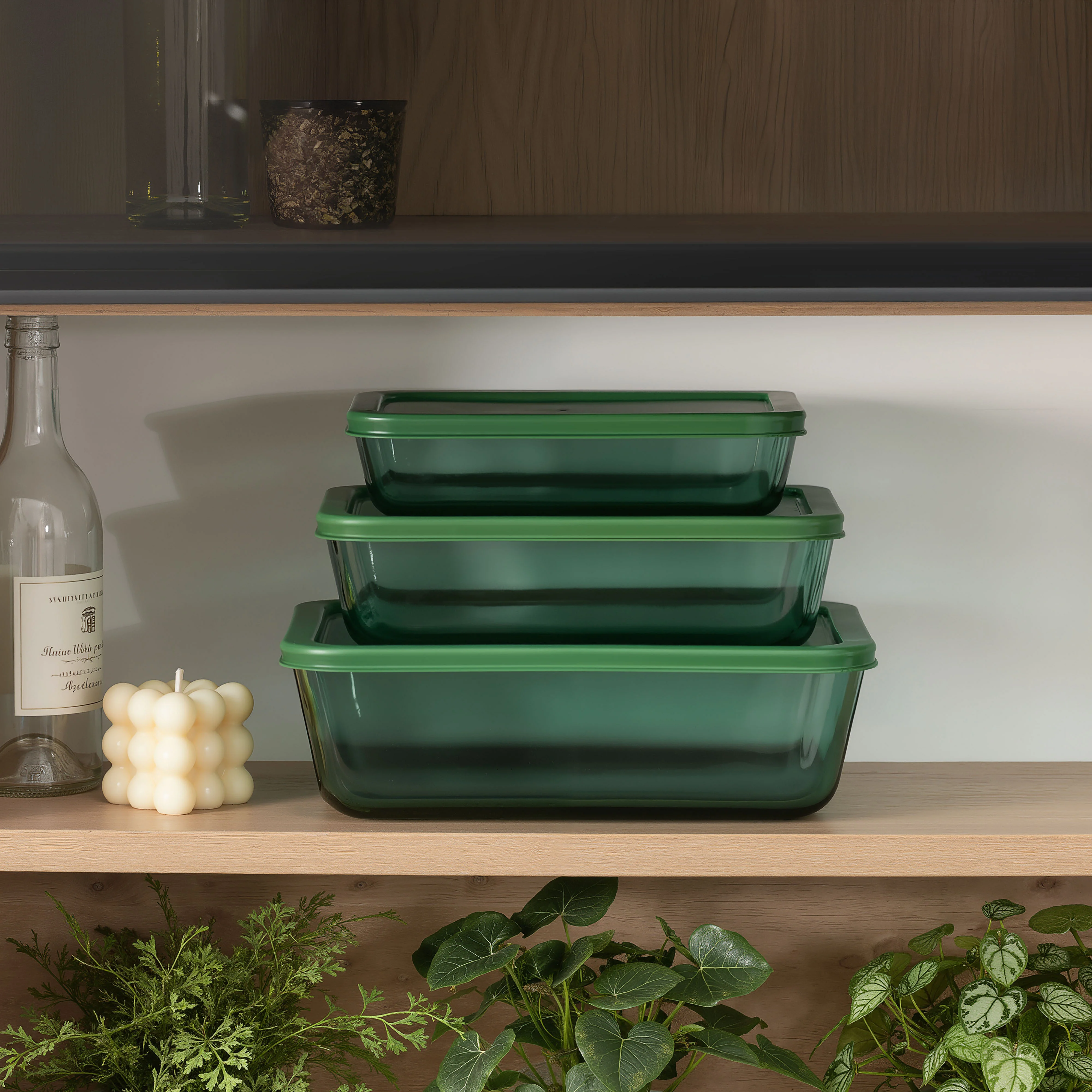Lot de 3 boîtes de conservation rectangulaires en verre - Vert