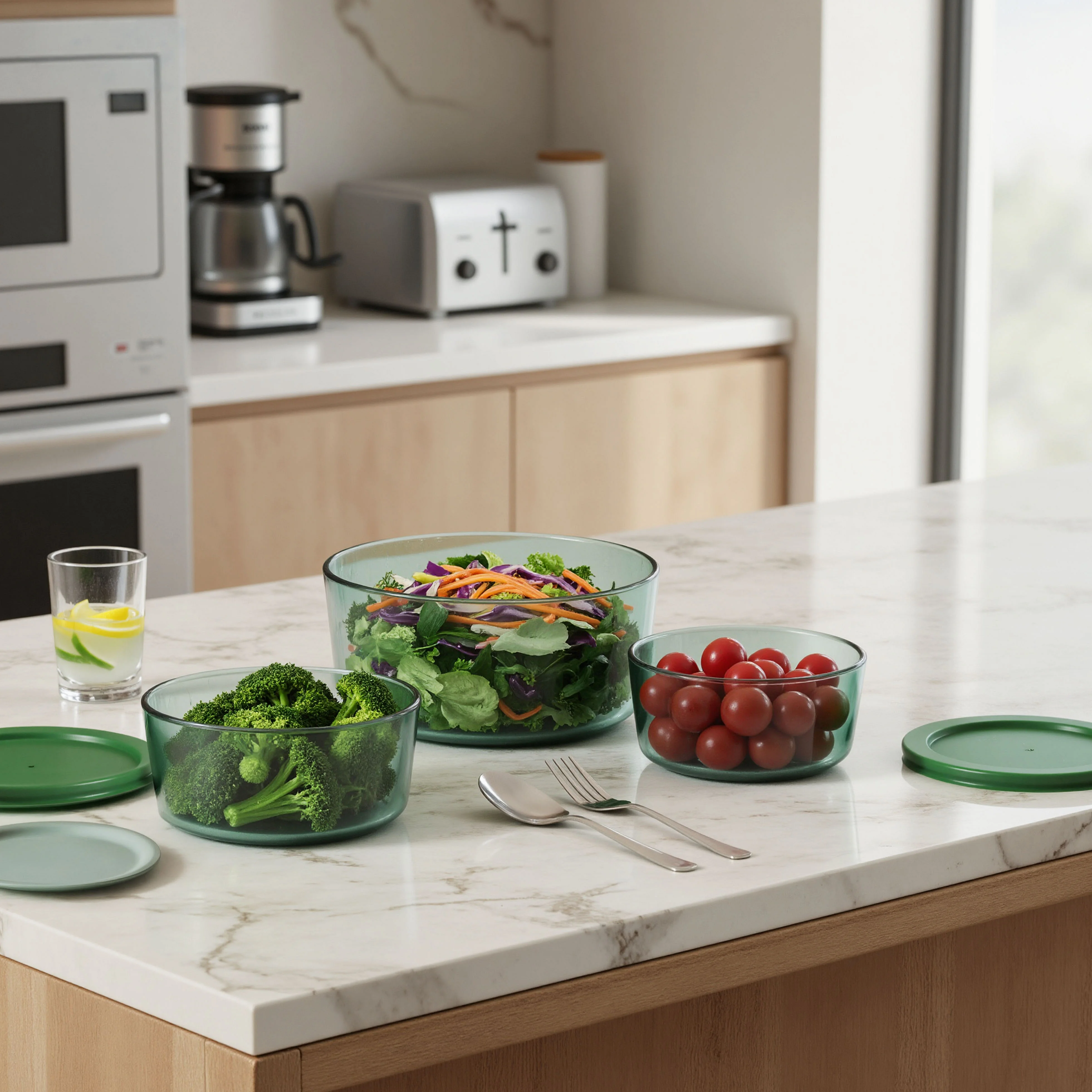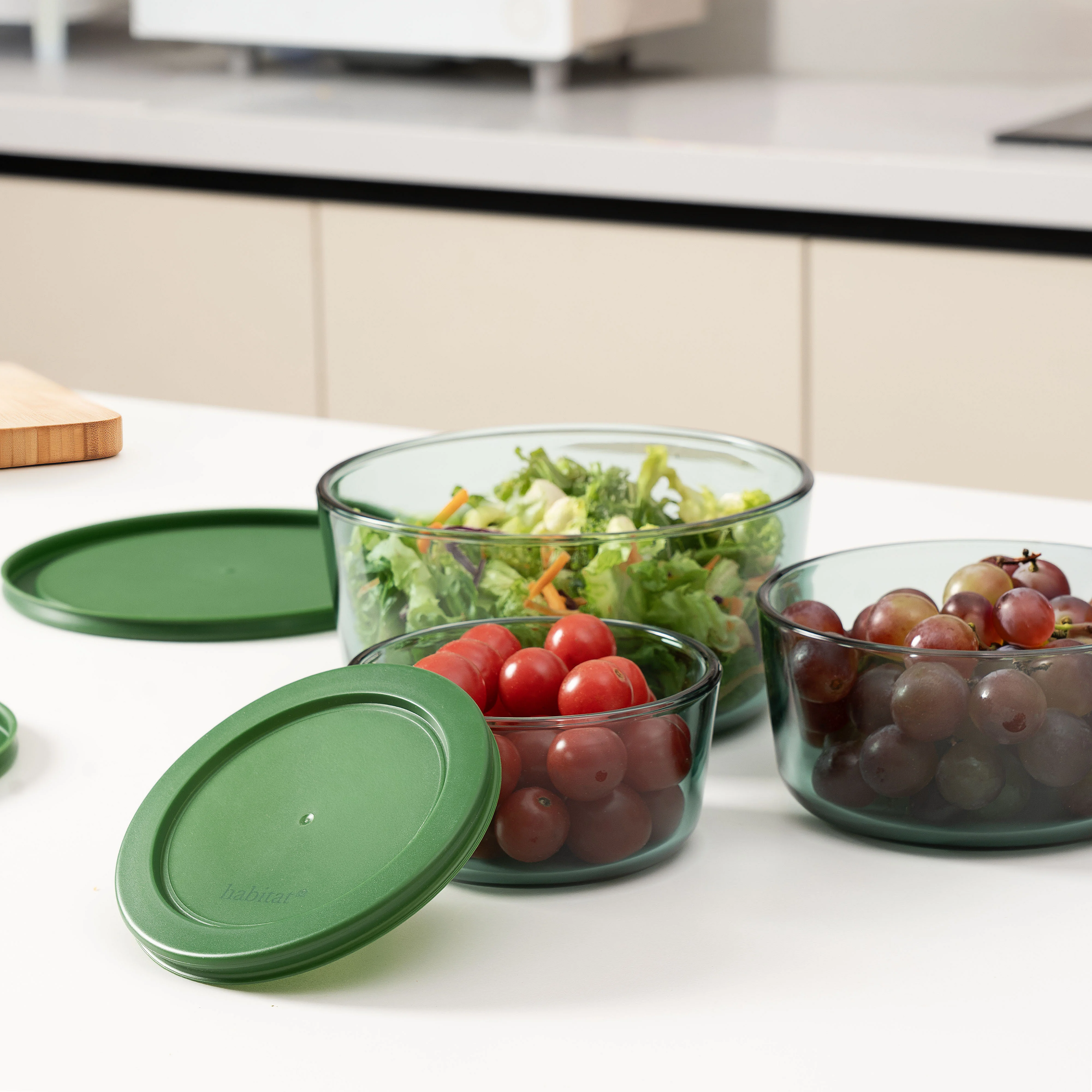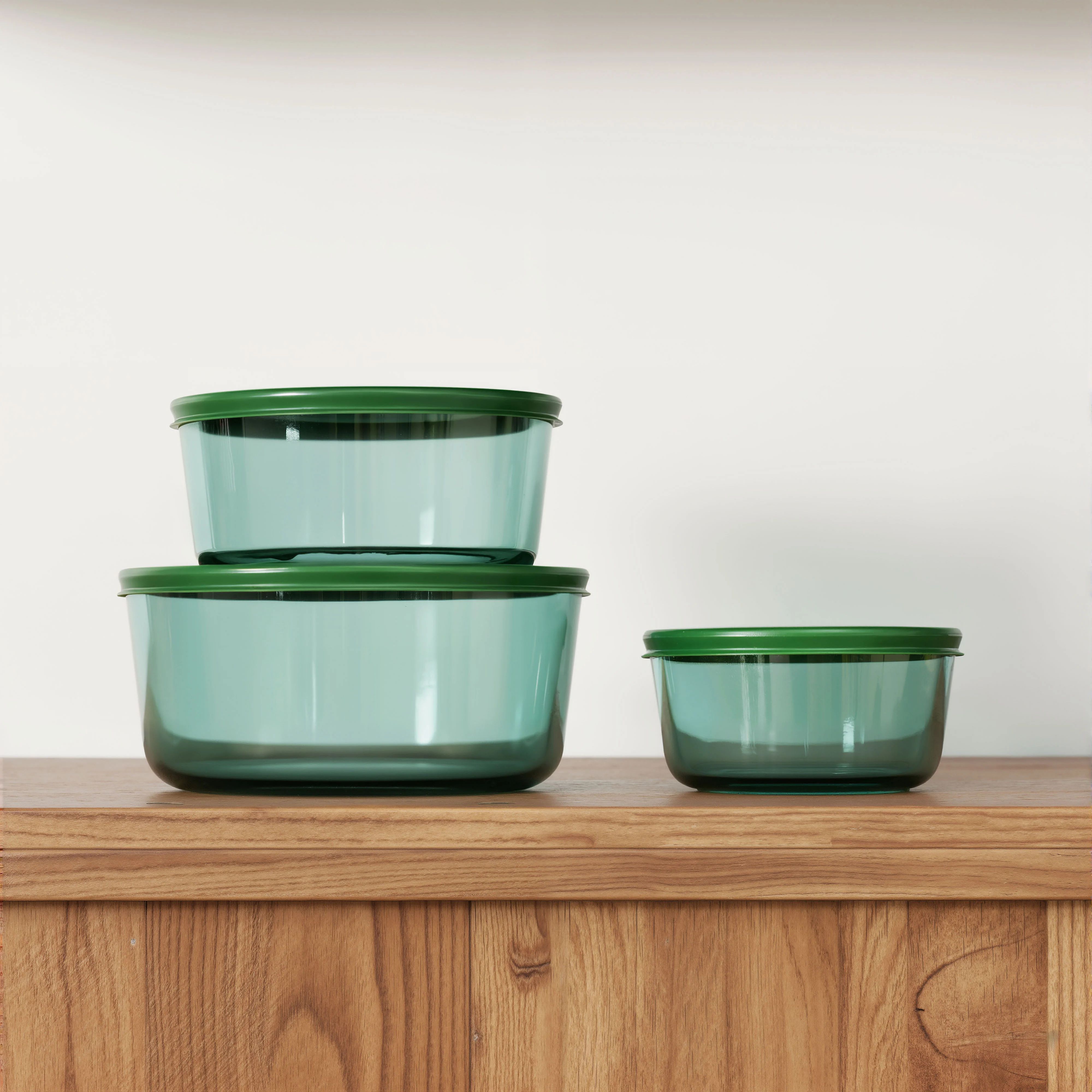 Lot de 3 boîtes de conservation rondes en verre - Vert