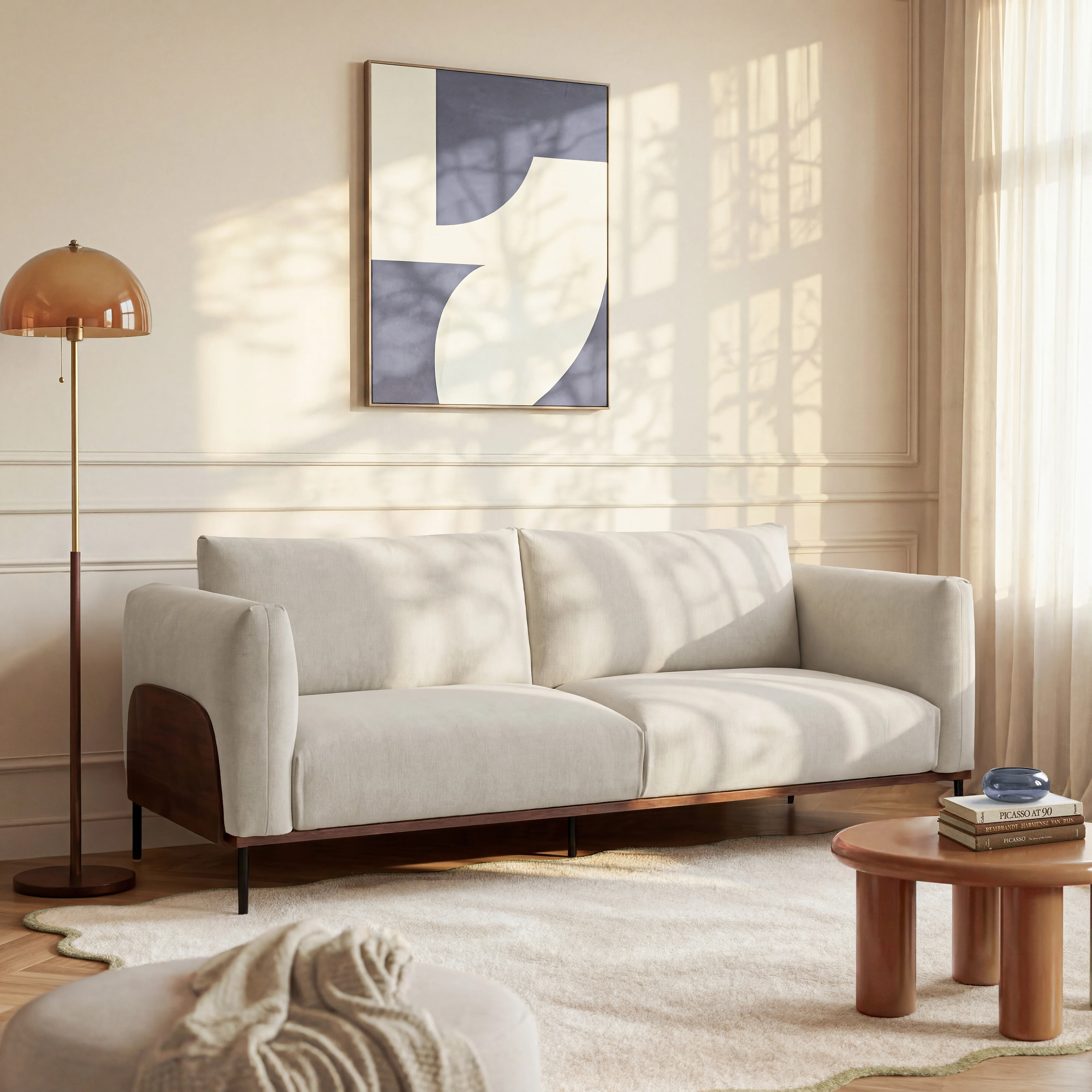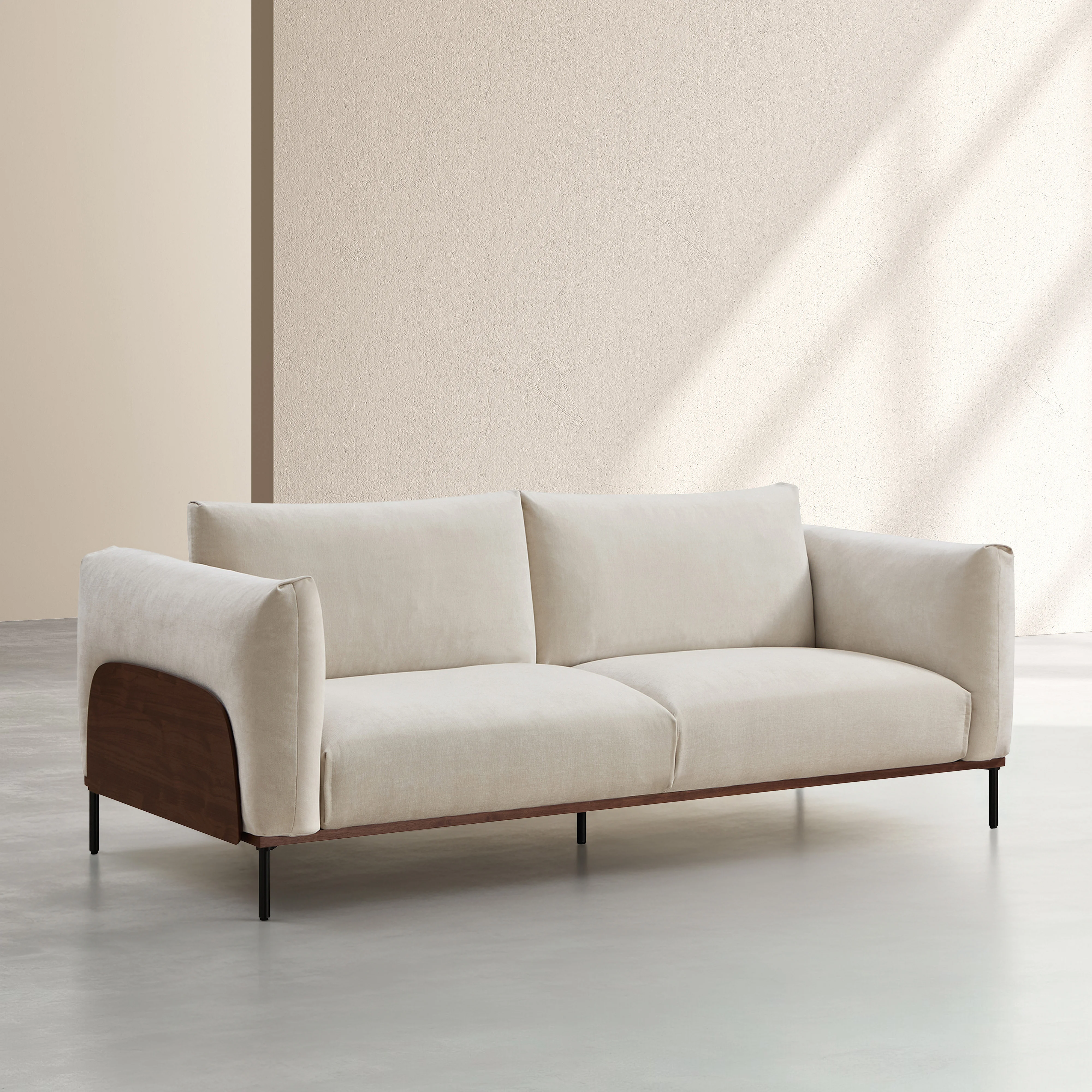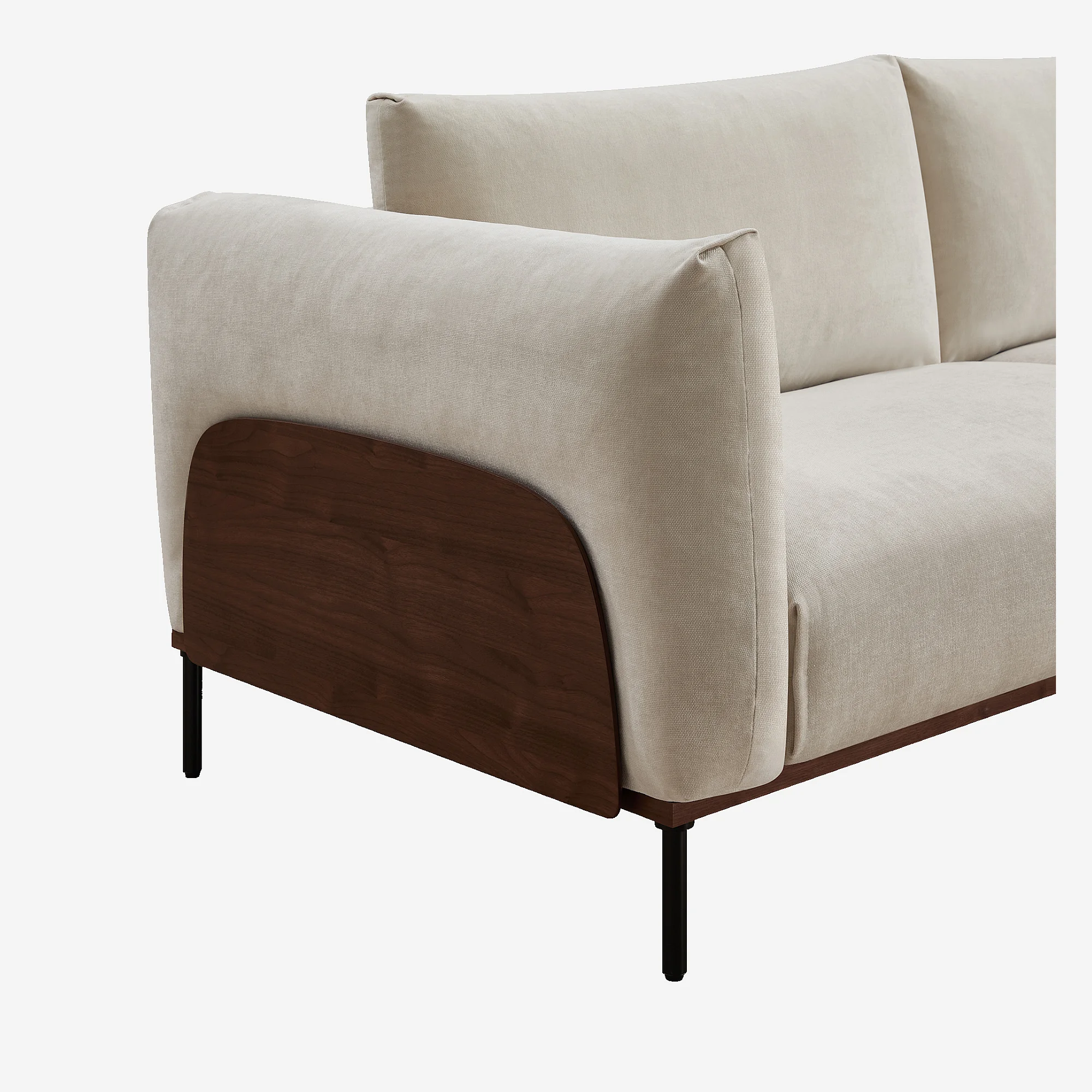 Canapé 3 places en tissu et bois garni de plumes - Sable et noyer