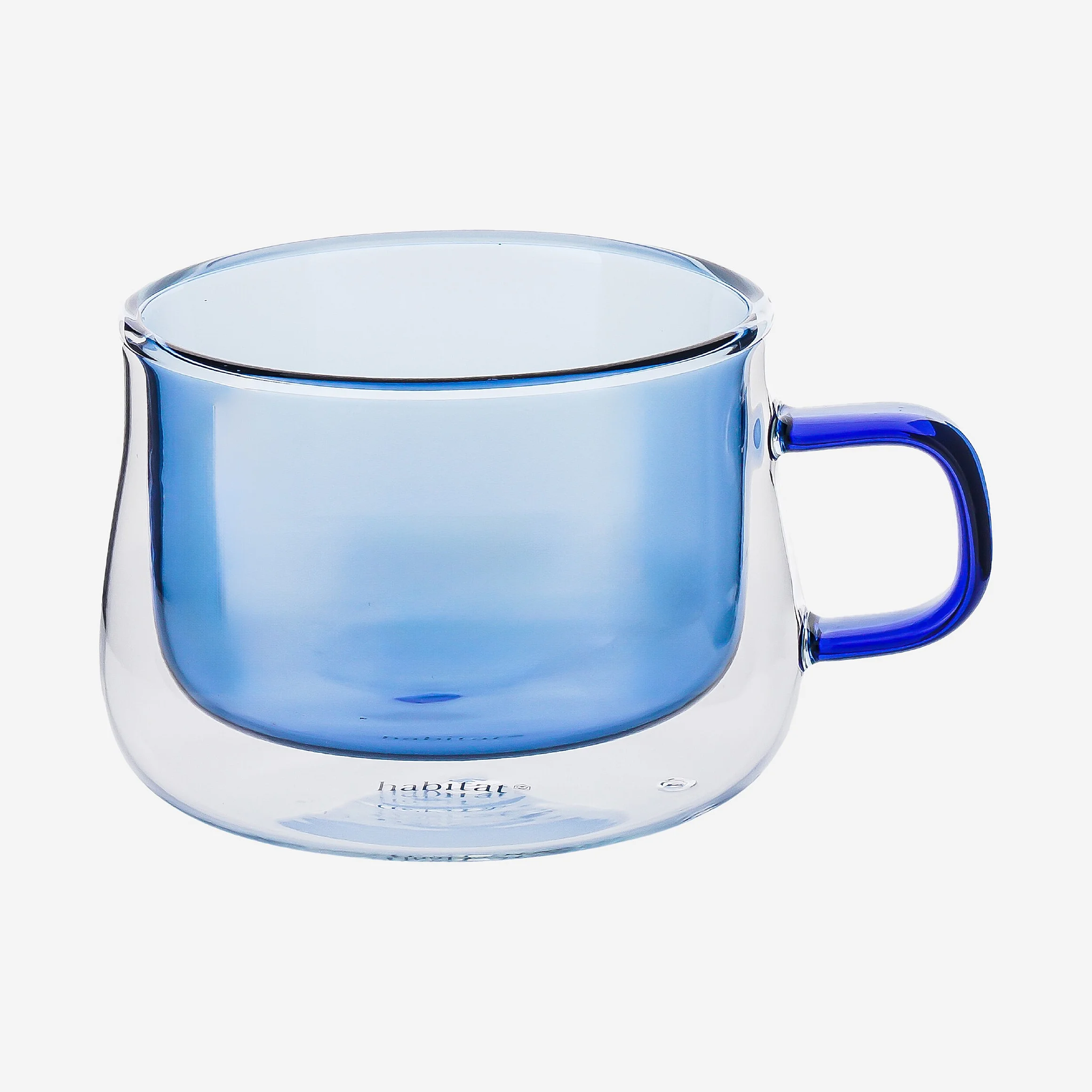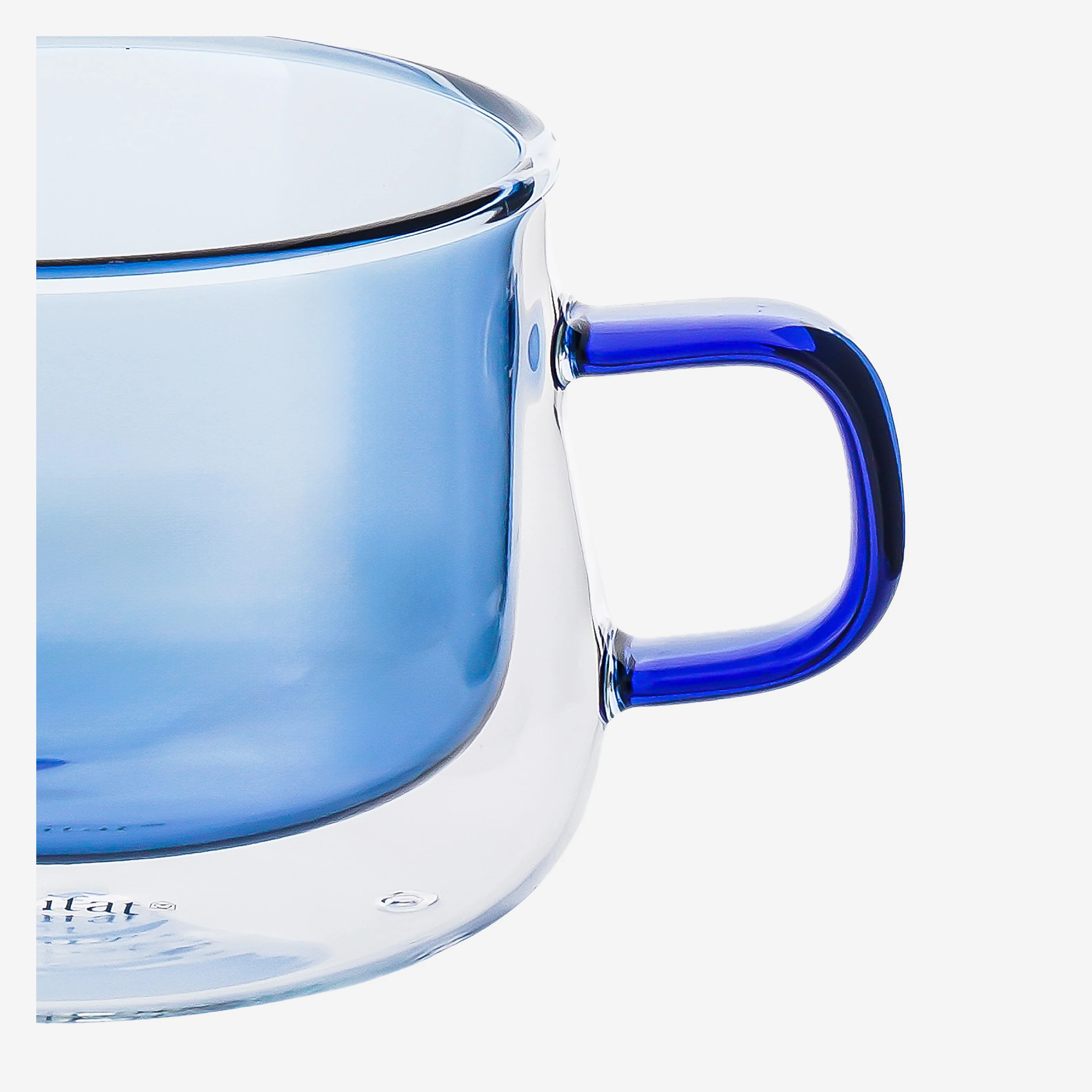 Lot de 2 tasses double paroi en verre avec anse - 22 cl - Bleu