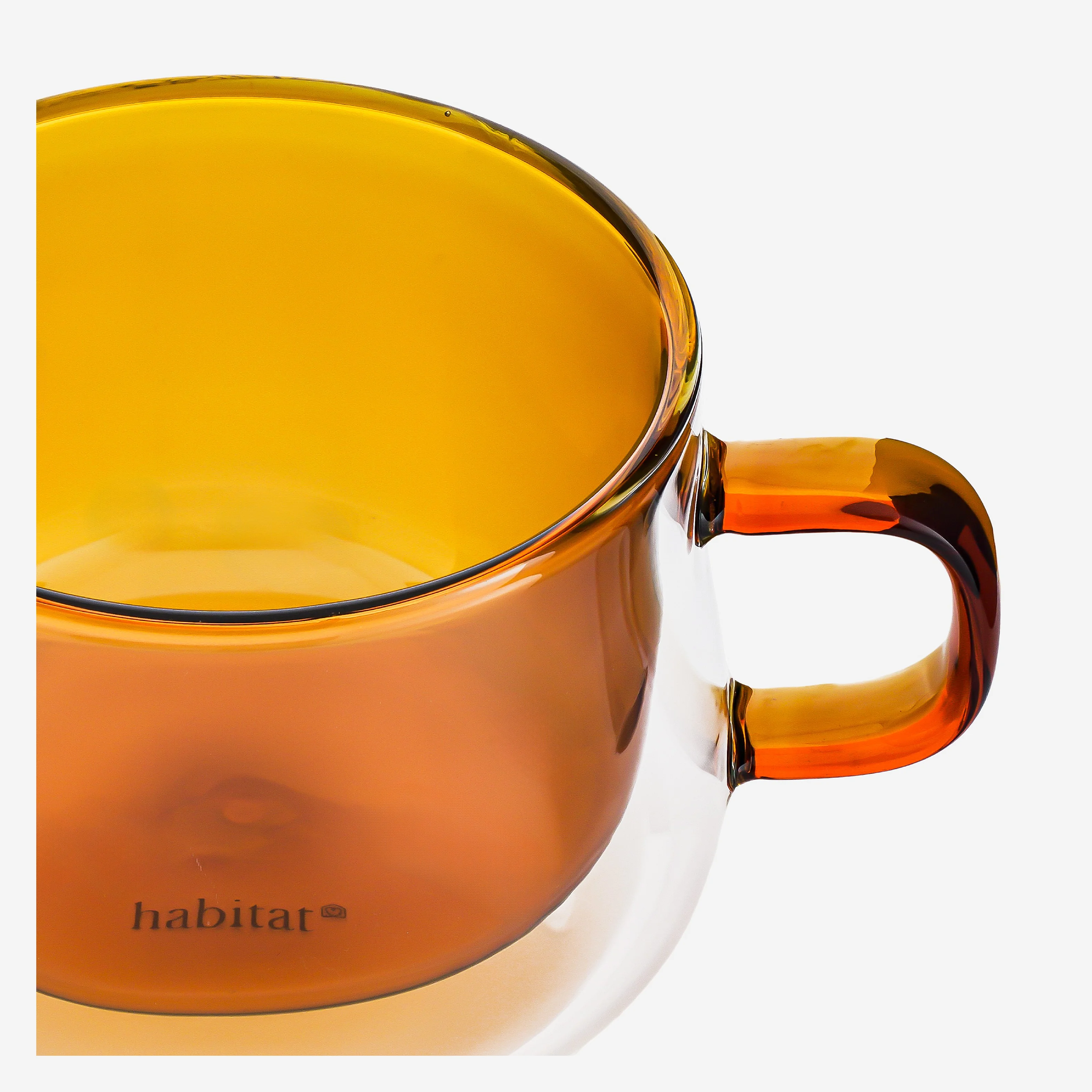 Lot de 2 tasses double paroi en verre avec anse - 22 cl - Orange