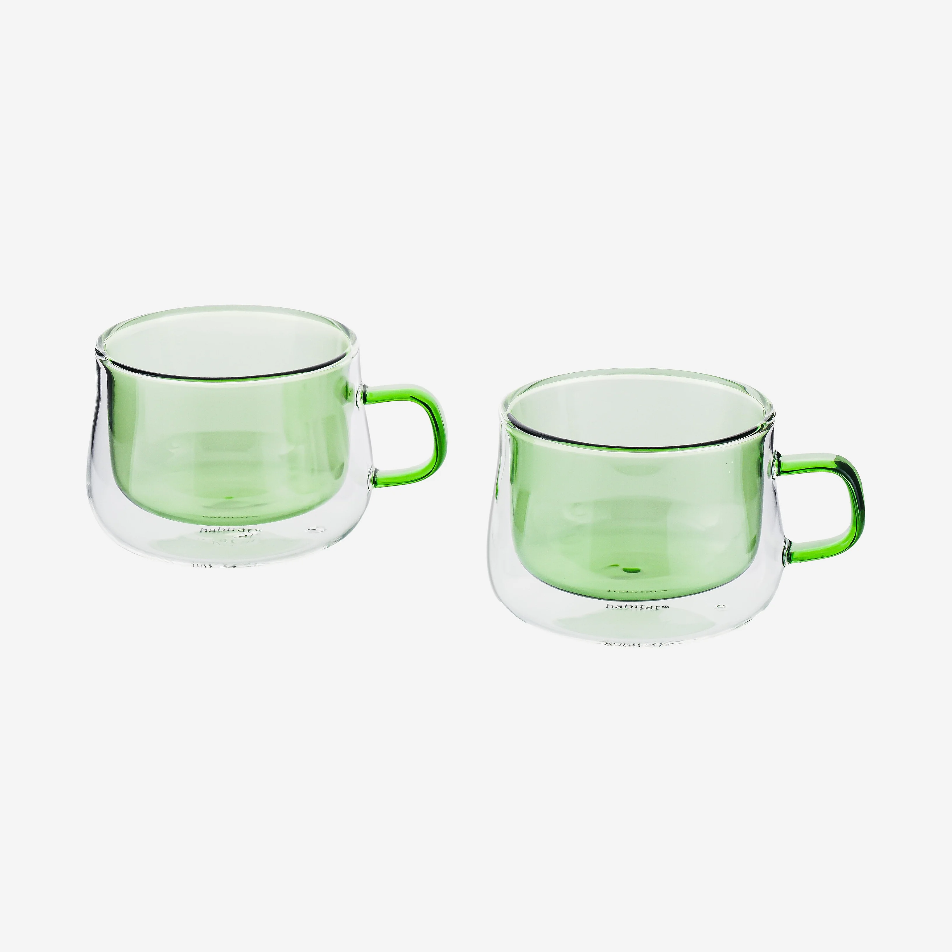 Lot de 2 tasses double paroi en verre avec anse - 22 cl - Vert