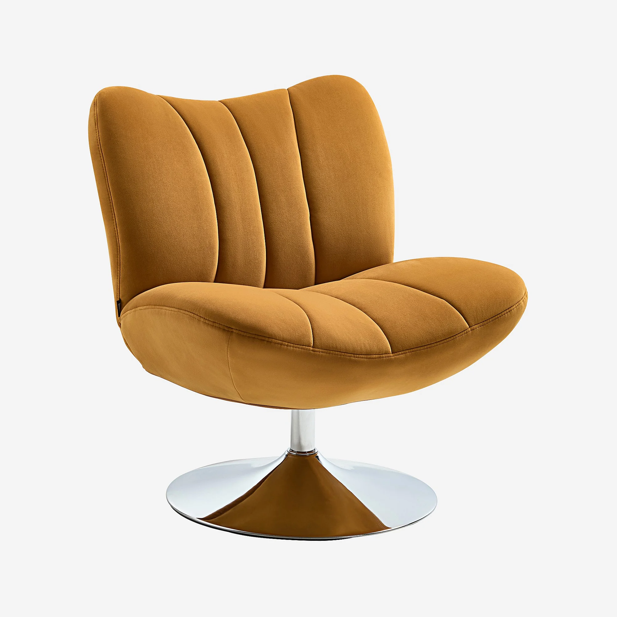 Fauteuil pivotant matelassé en tissu et métal chromé - Miel