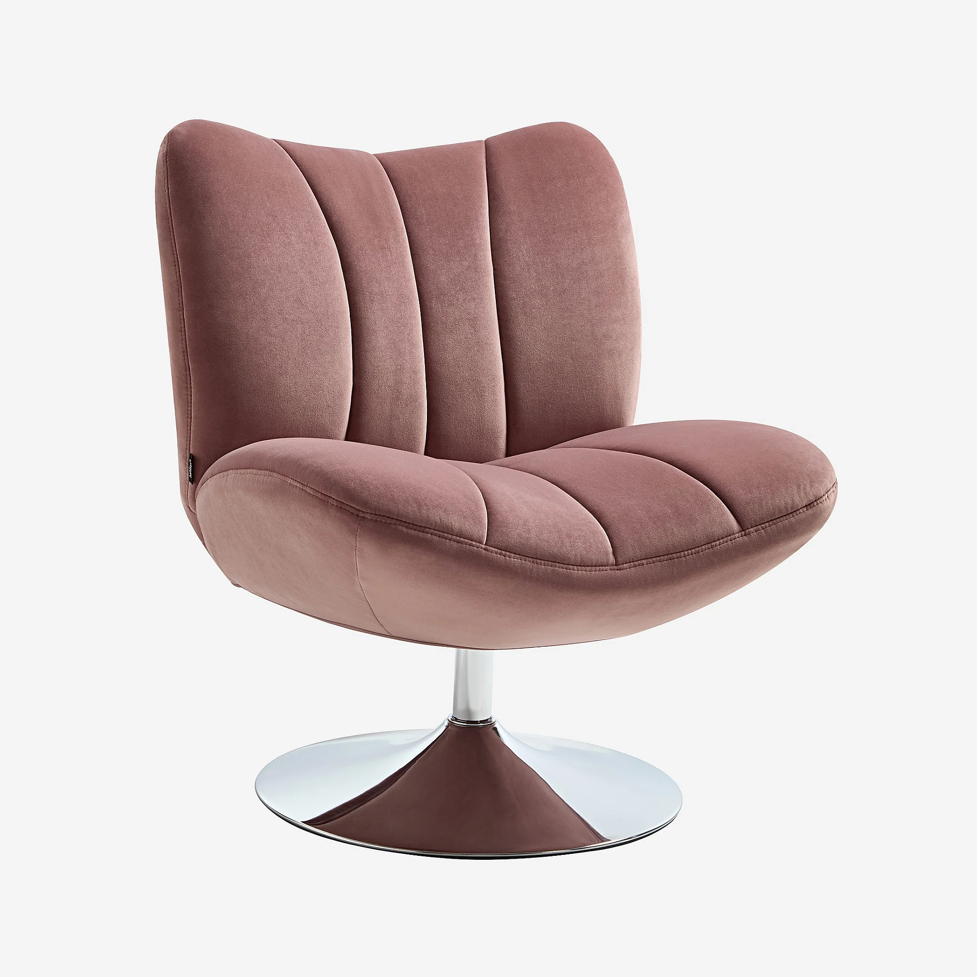Fauteuil pivotant matelassé en tissu et métal chromé - Vieux rose