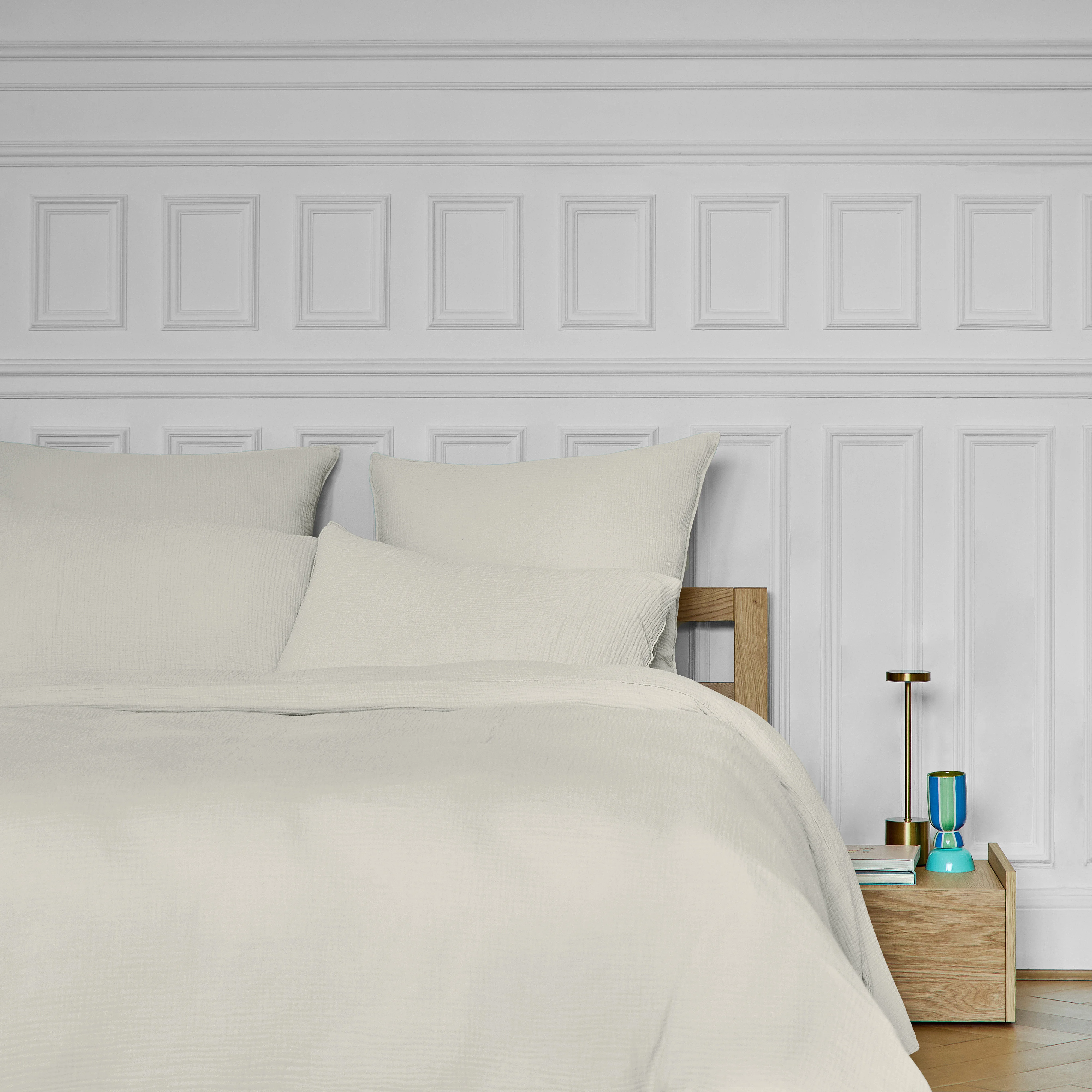 La housse de couette Arielle séduit par la légèreté de sa double gaze de coton et sa texture subtile. Elle transforme le lit en un cocon doux et respirant, propice à la détente en toute saison.
