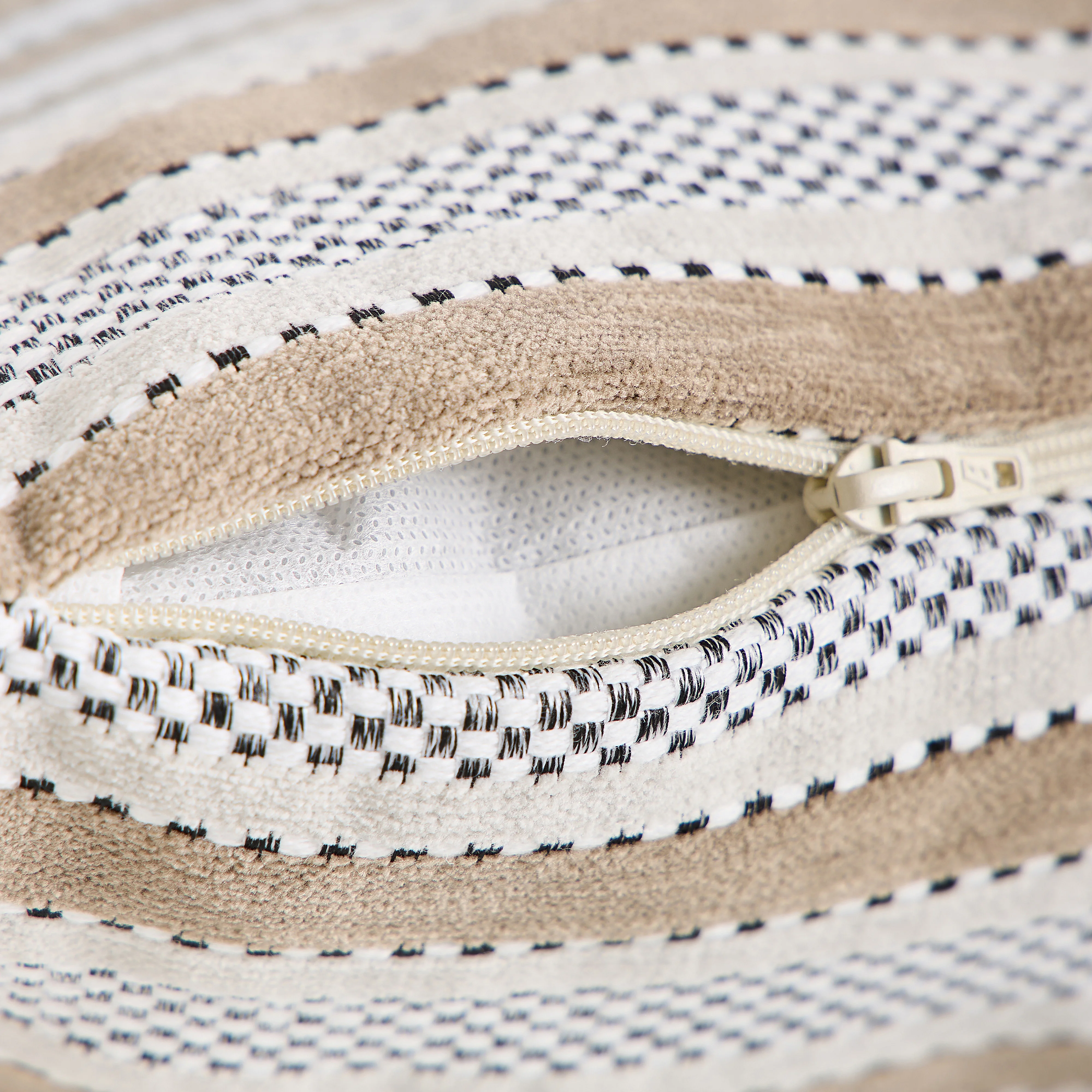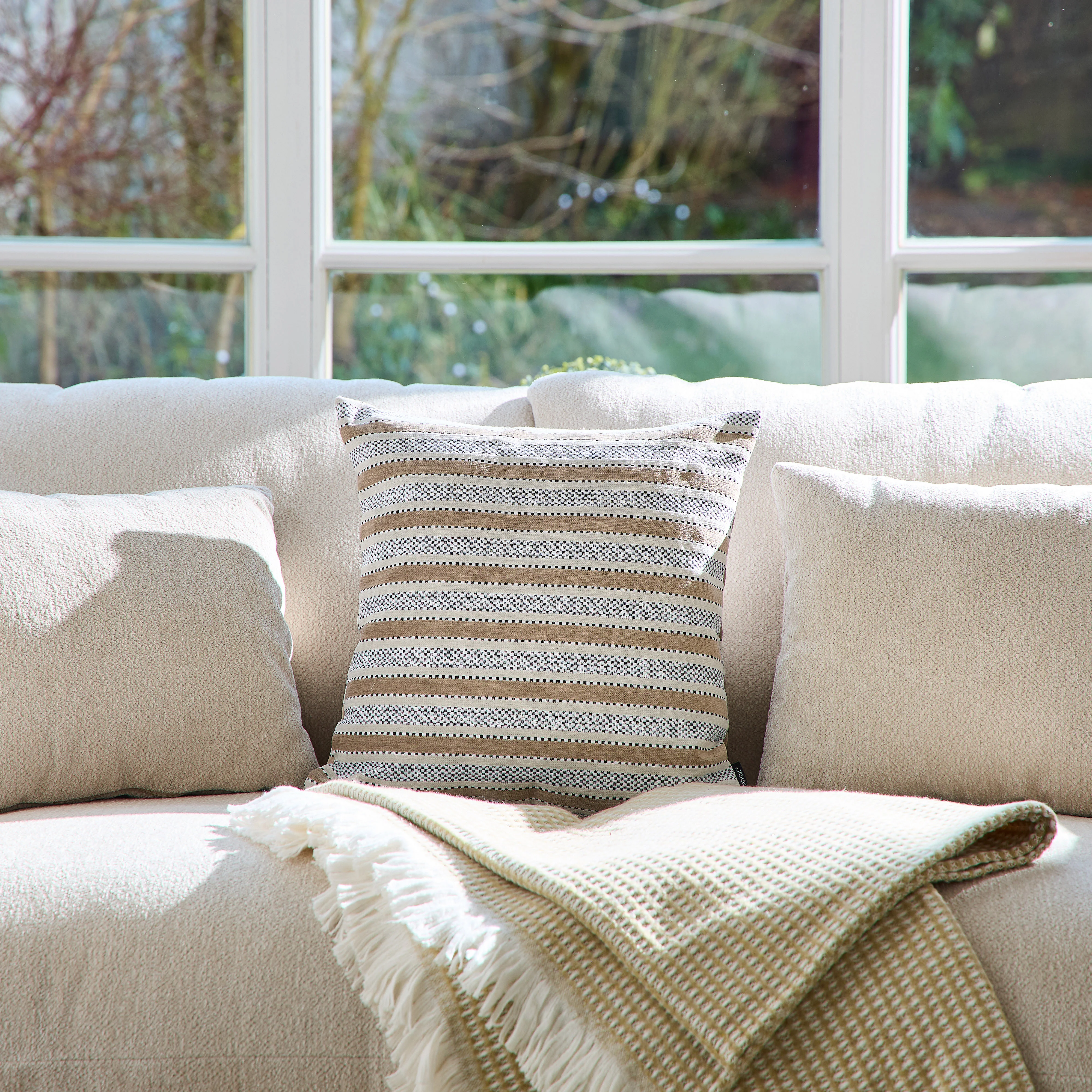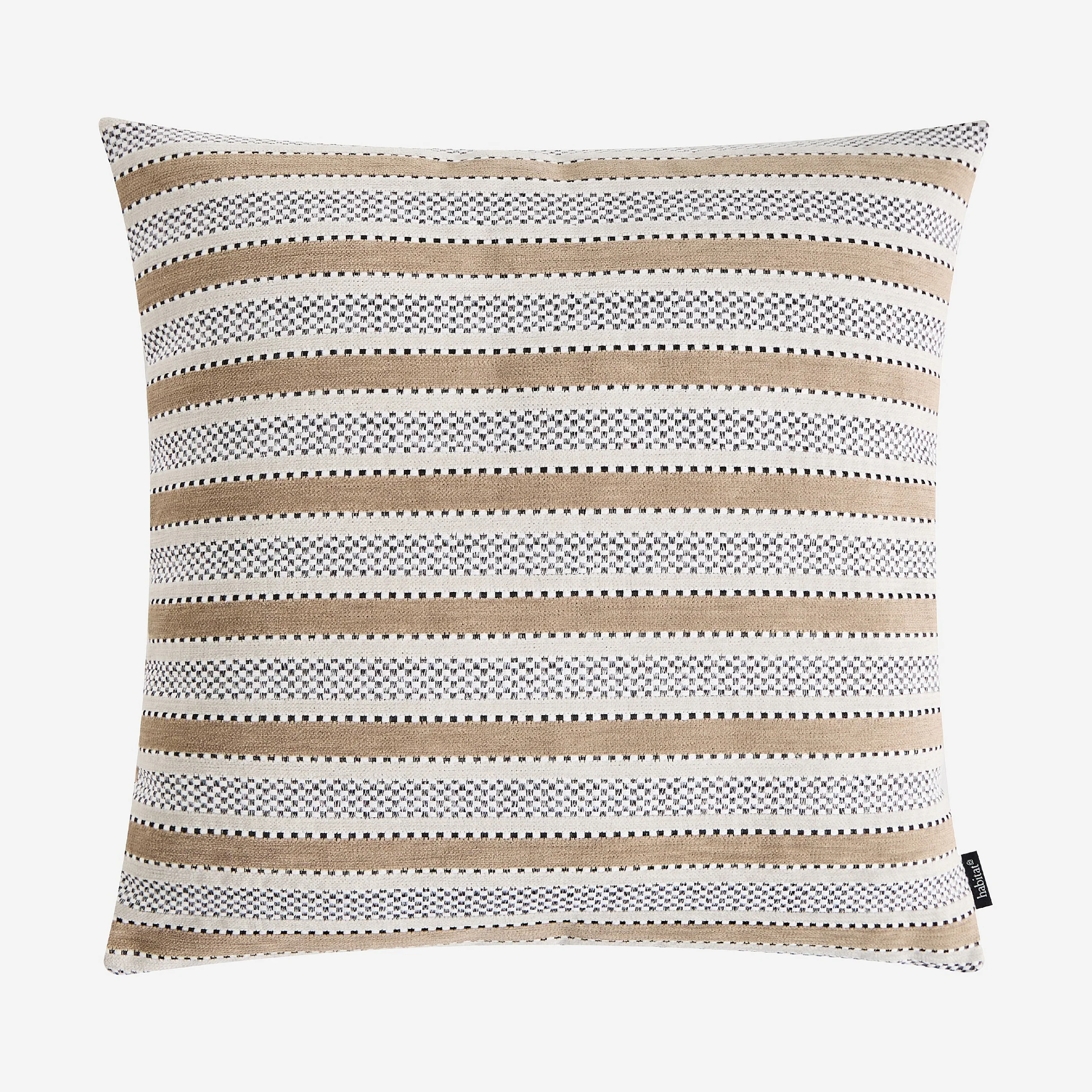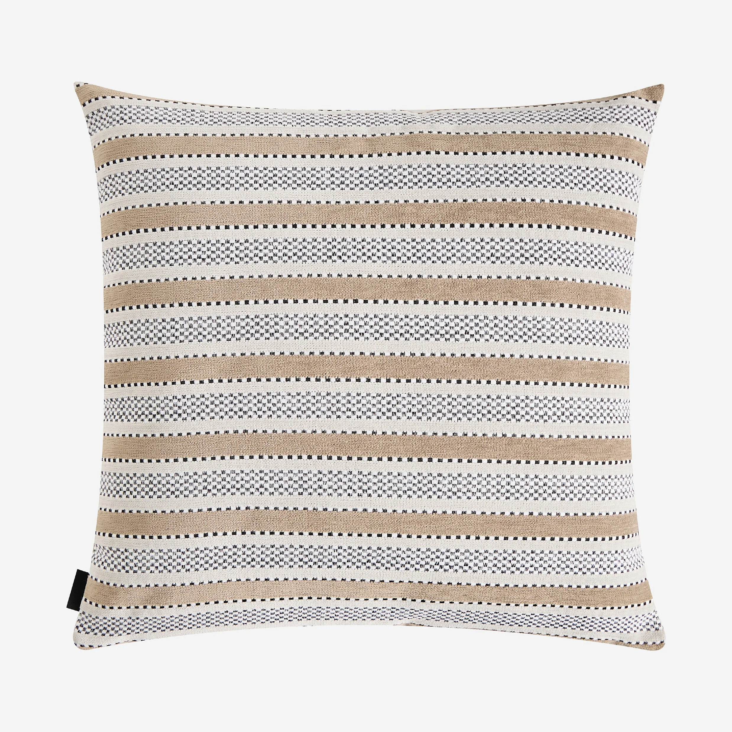 Coussin en tissu jacquard - 44 x 44 cm - Motifs à rayures - Beige