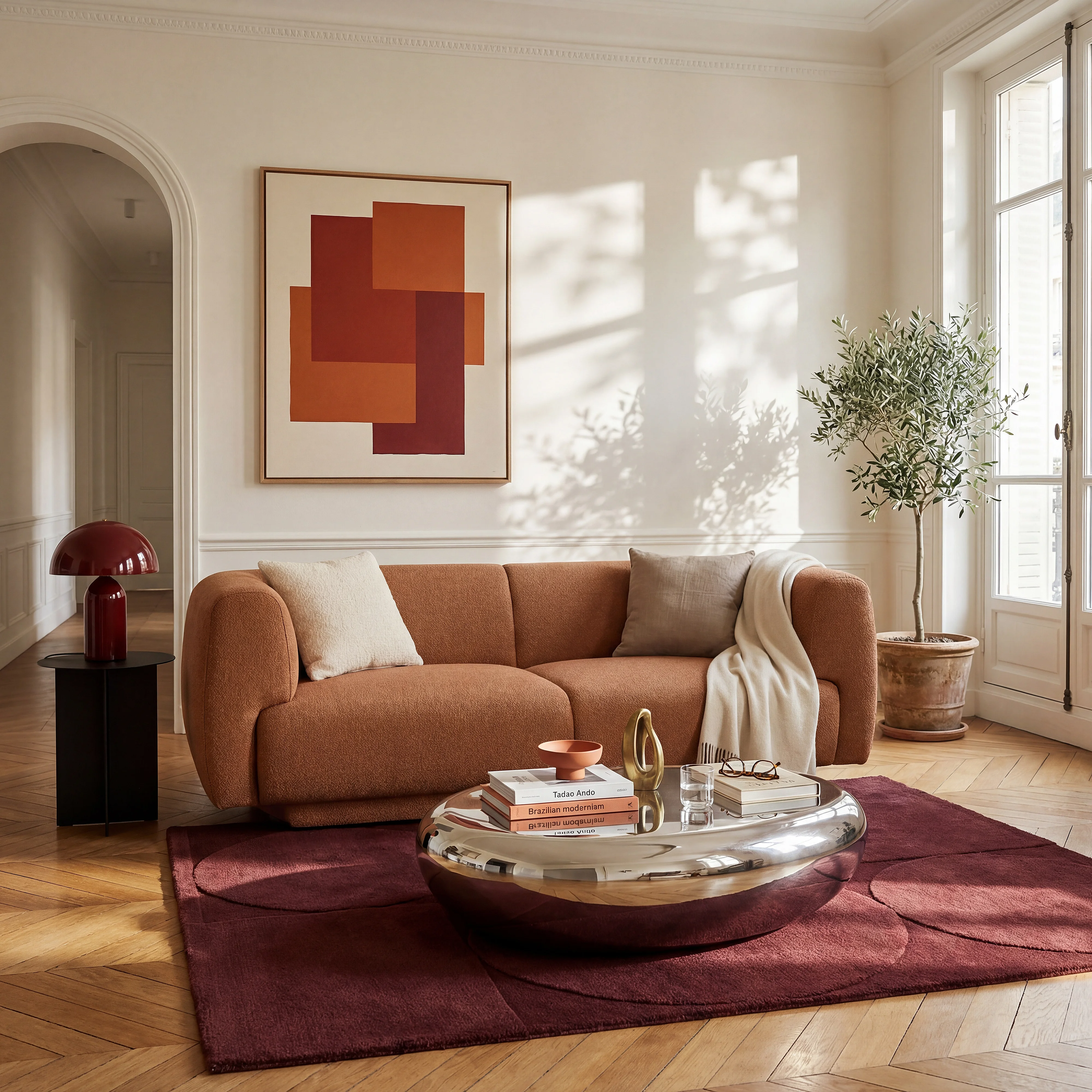 Canapé 2 places en tissu texturé - Terracotta - Design by Federica Francini