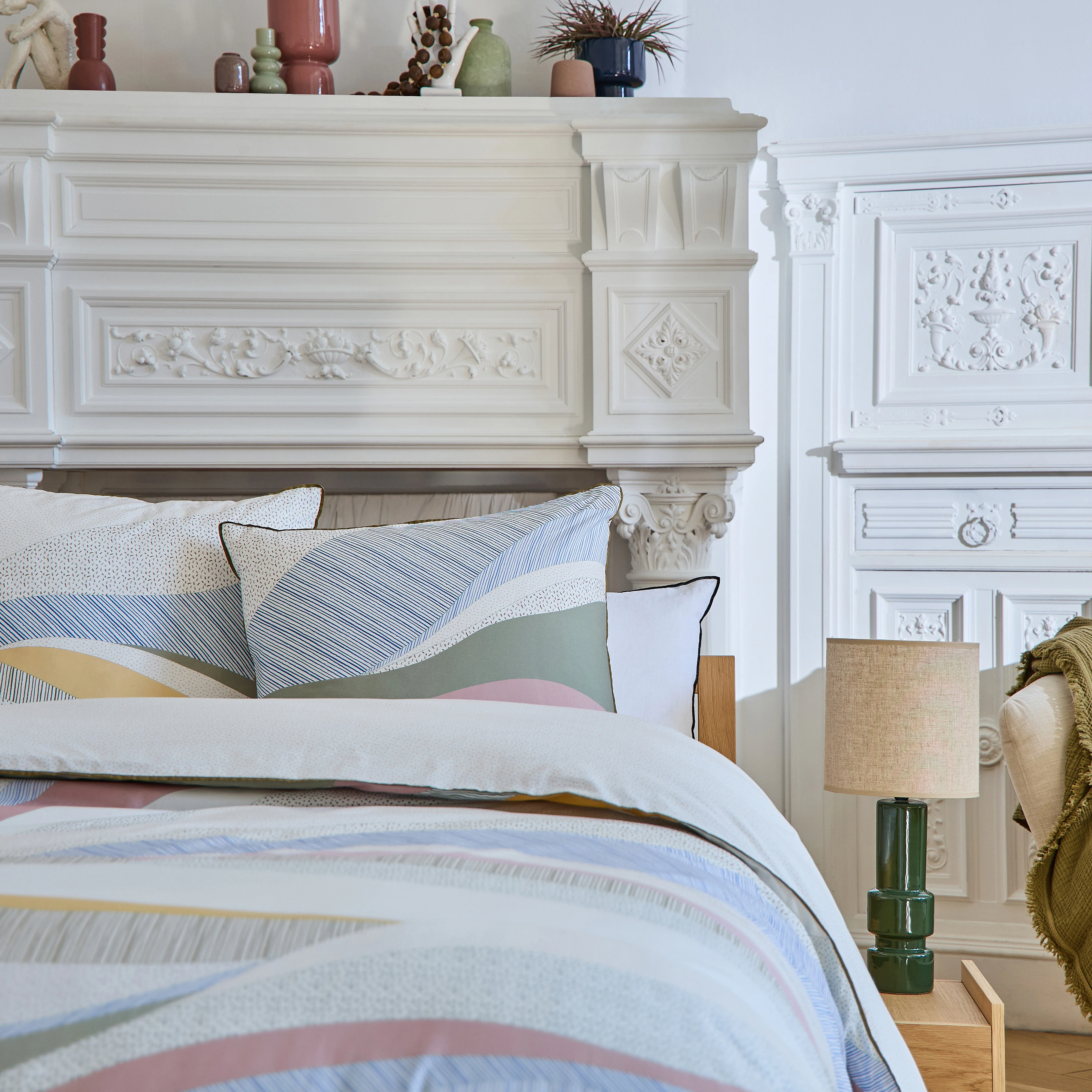 Certifiée OEKO-TEX et GOTS, la parure de lit Azélie apporte une touche graphique et poétique à la chambre avec ses lignes fluides et ses contrastes subtils. En percale de coton bio, elle allie douceur, élégance et confort au quotidien.