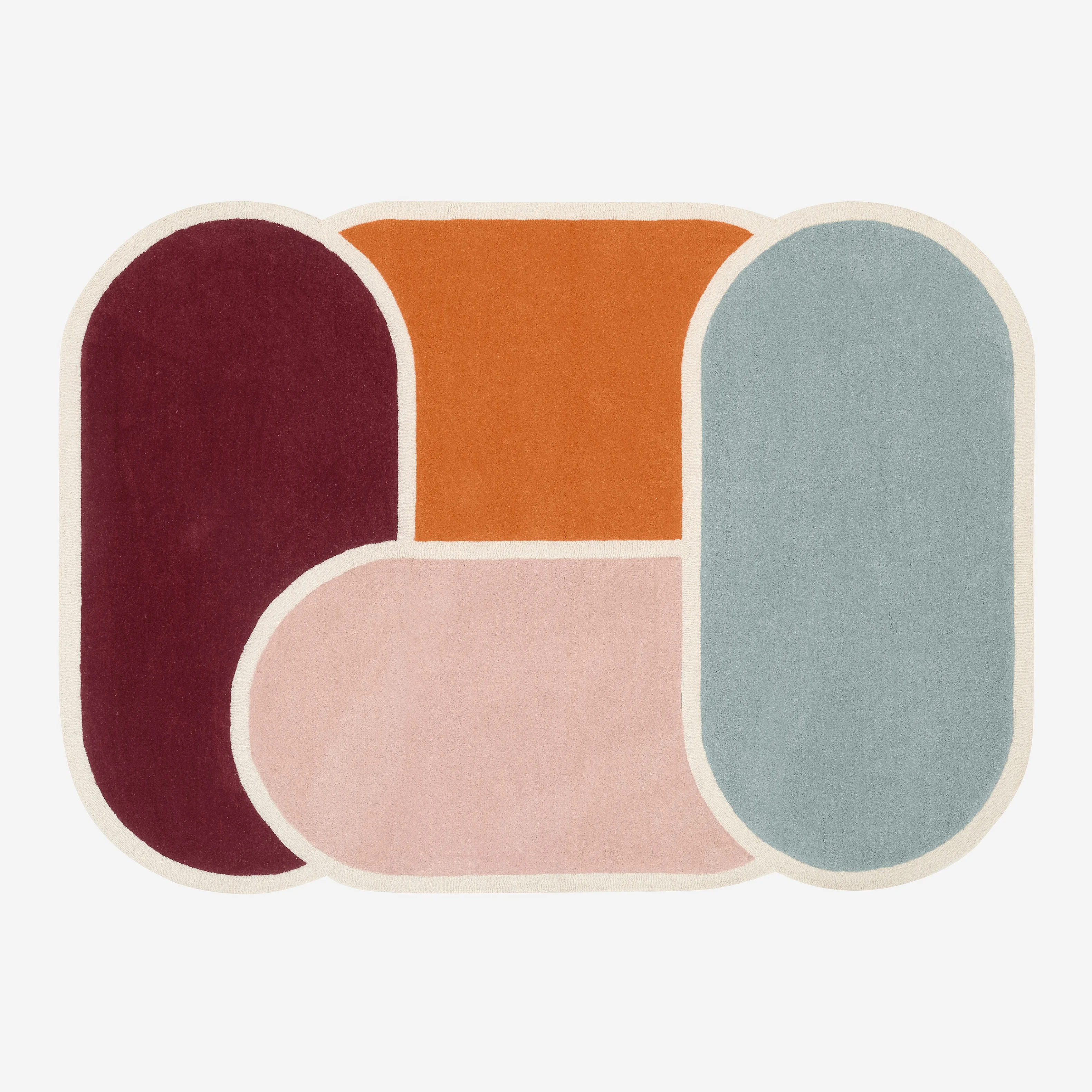 Tapis tufté et bouclette en laine - 170 x 240 cm - Bordeaux et orange - Design by Floriane Jacques