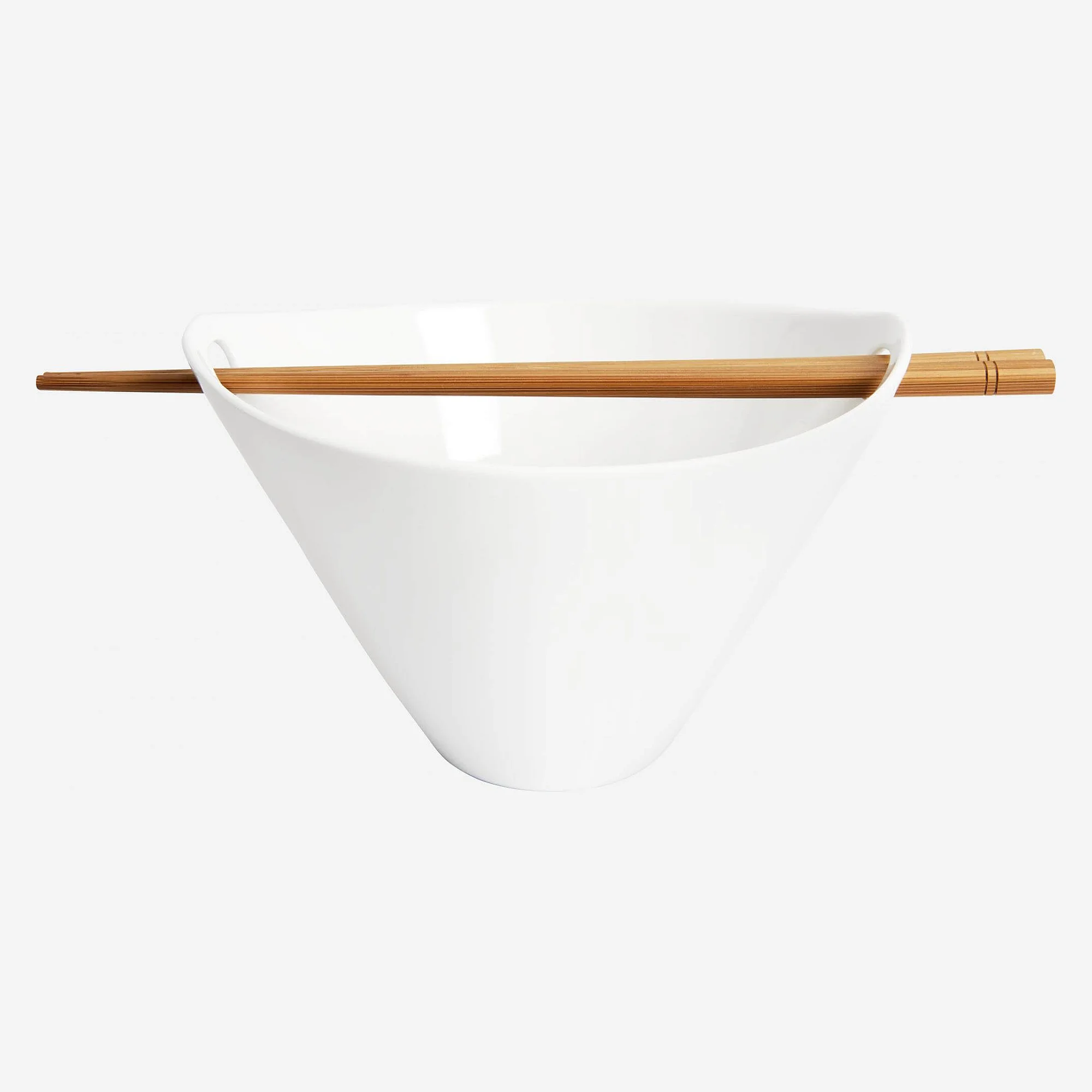 Le bol de nouilles Jersey associe design élégant et praticité, avec ses baguettes en bambou intégrées pour savourer pâtes et raviolis en toute simplicité.