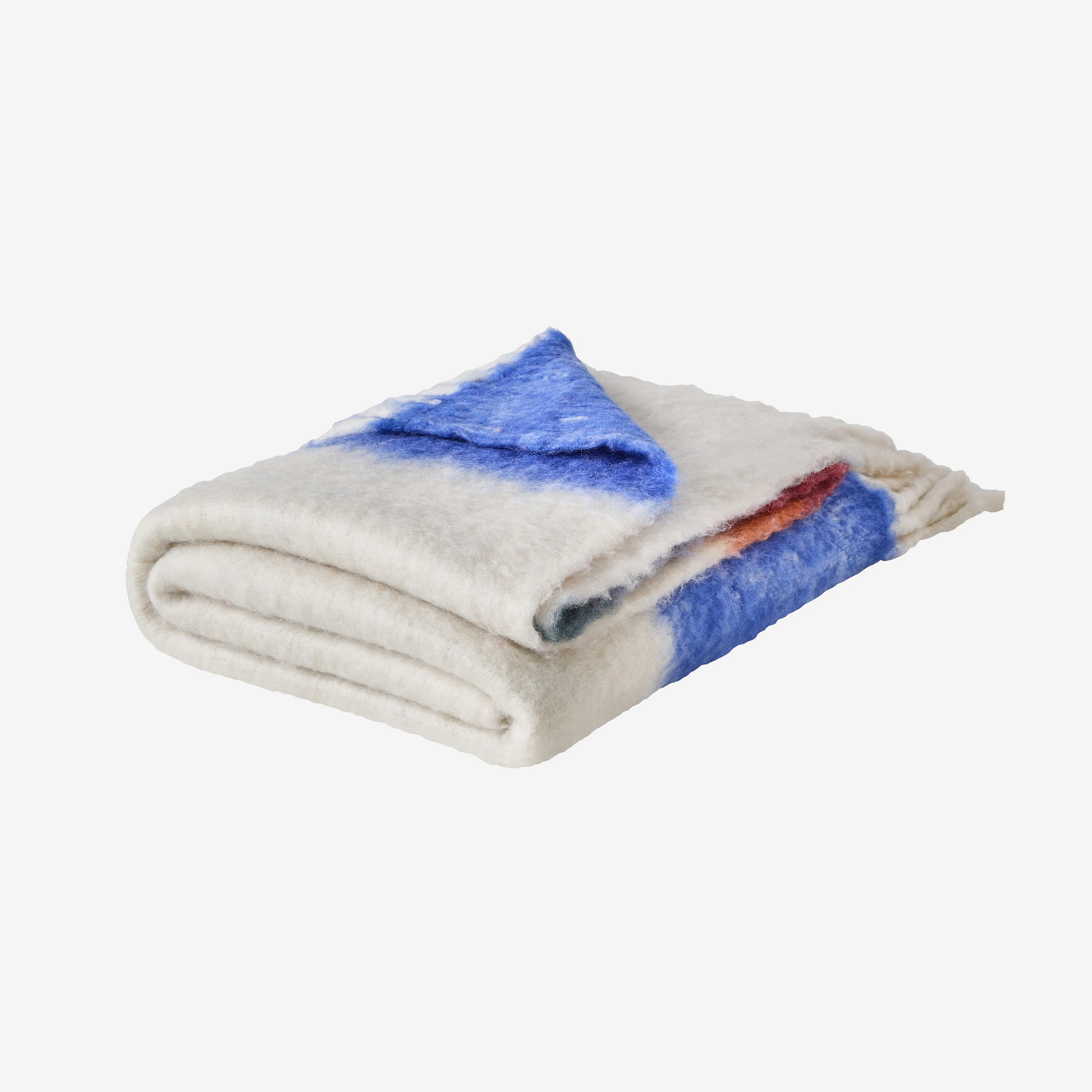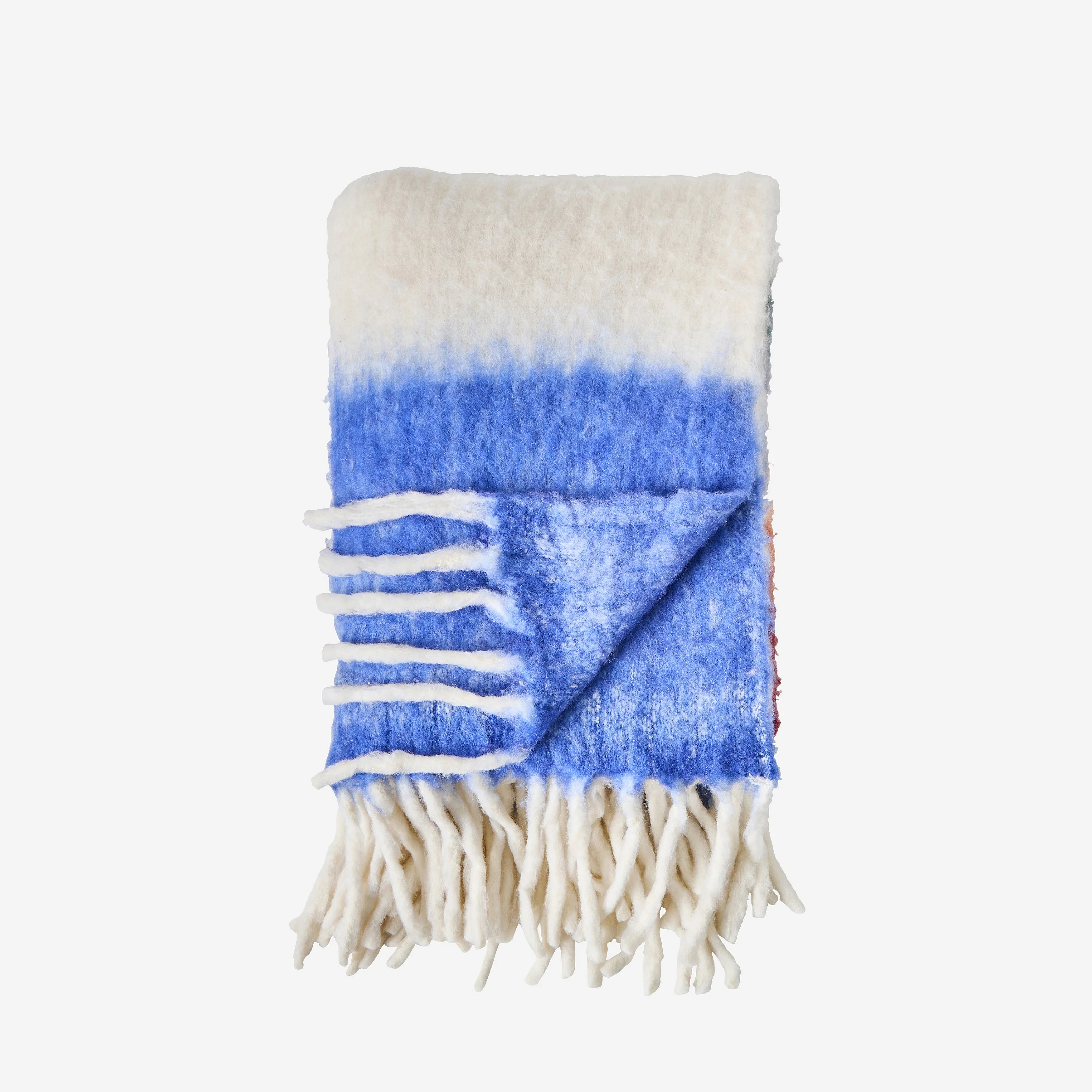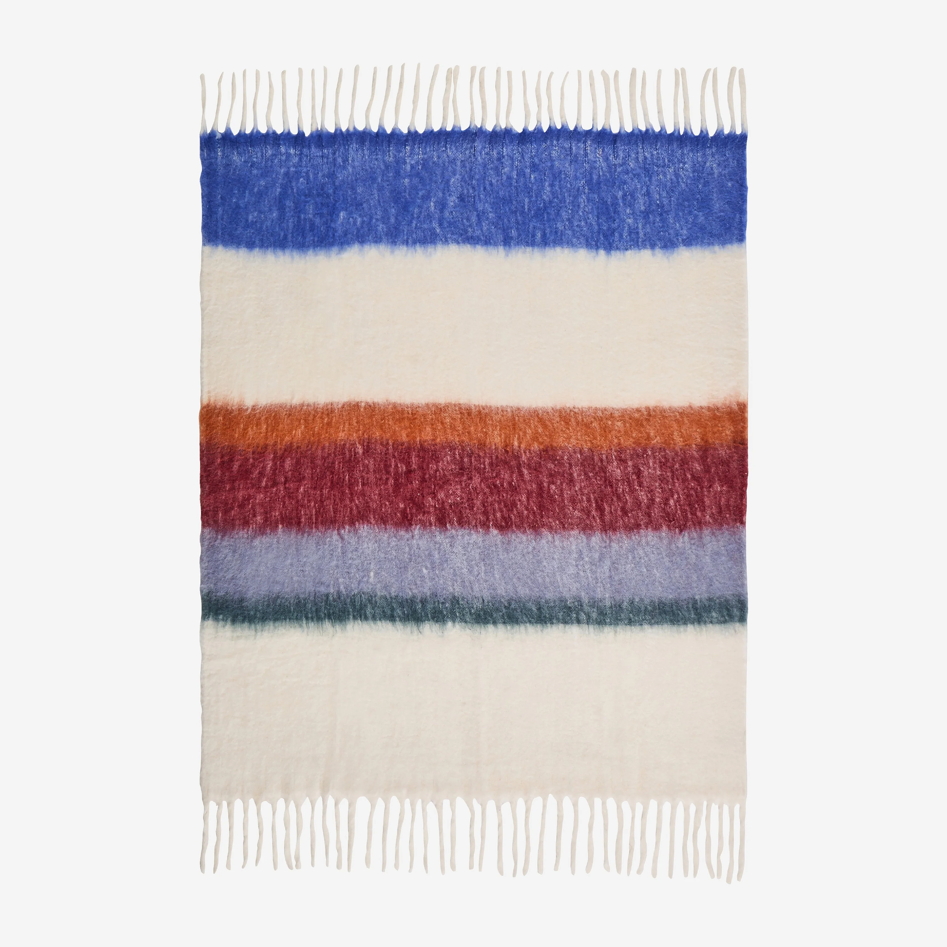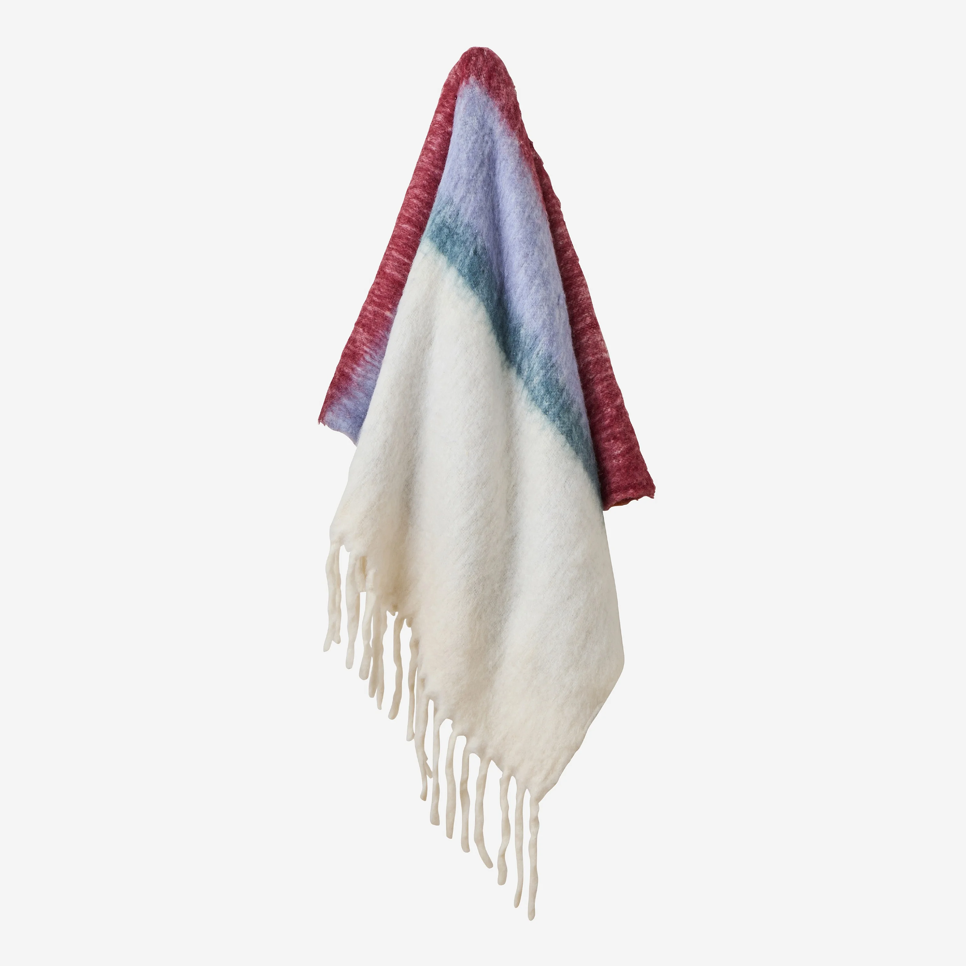 Rayures fondues et nuances colorées s'entremêlent pour créer un plaid tout en douceur, où l'on souhaite se blottir chaleureusement.