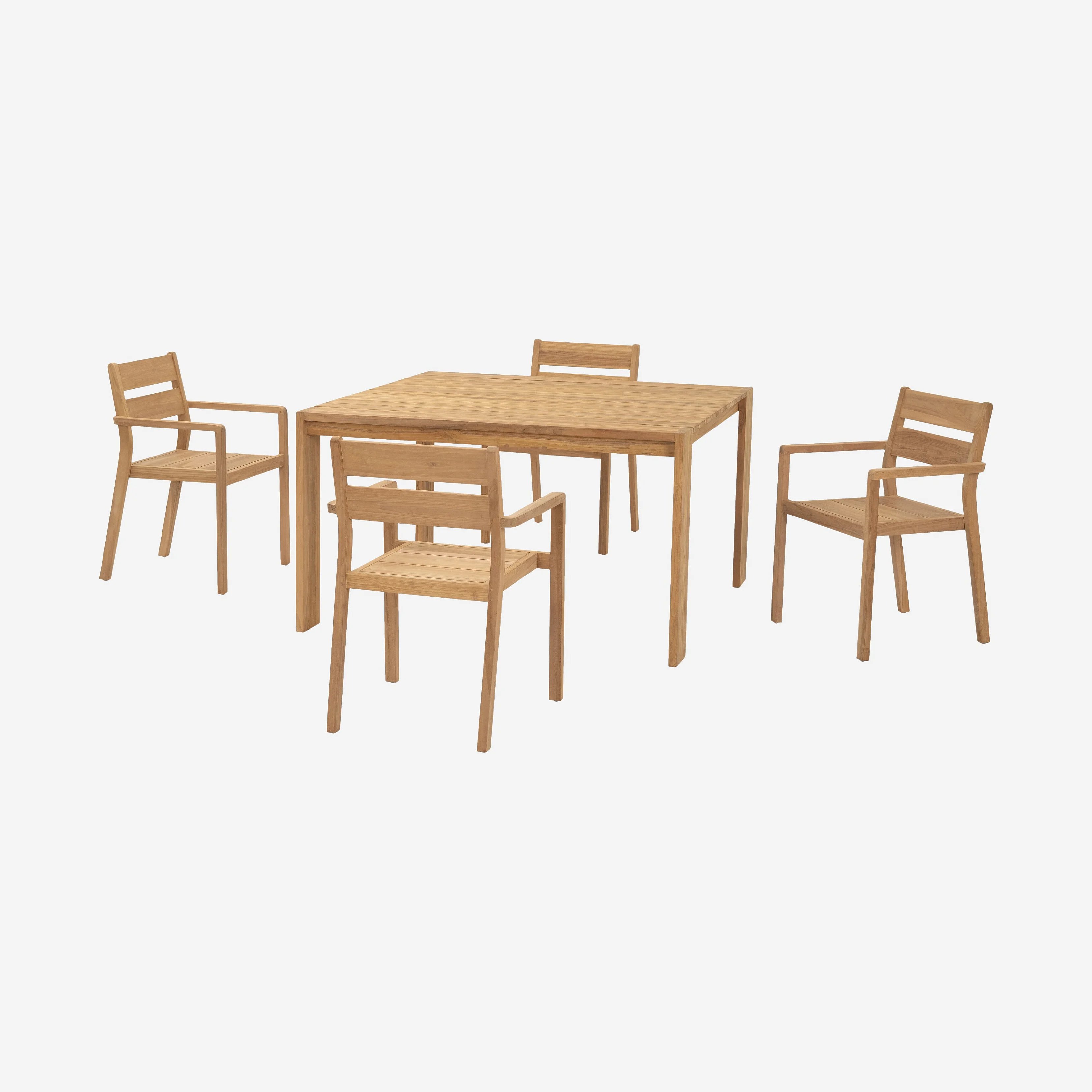 Ensemble table carrée et 4 chaises de jardin en teck massif - Naturel
