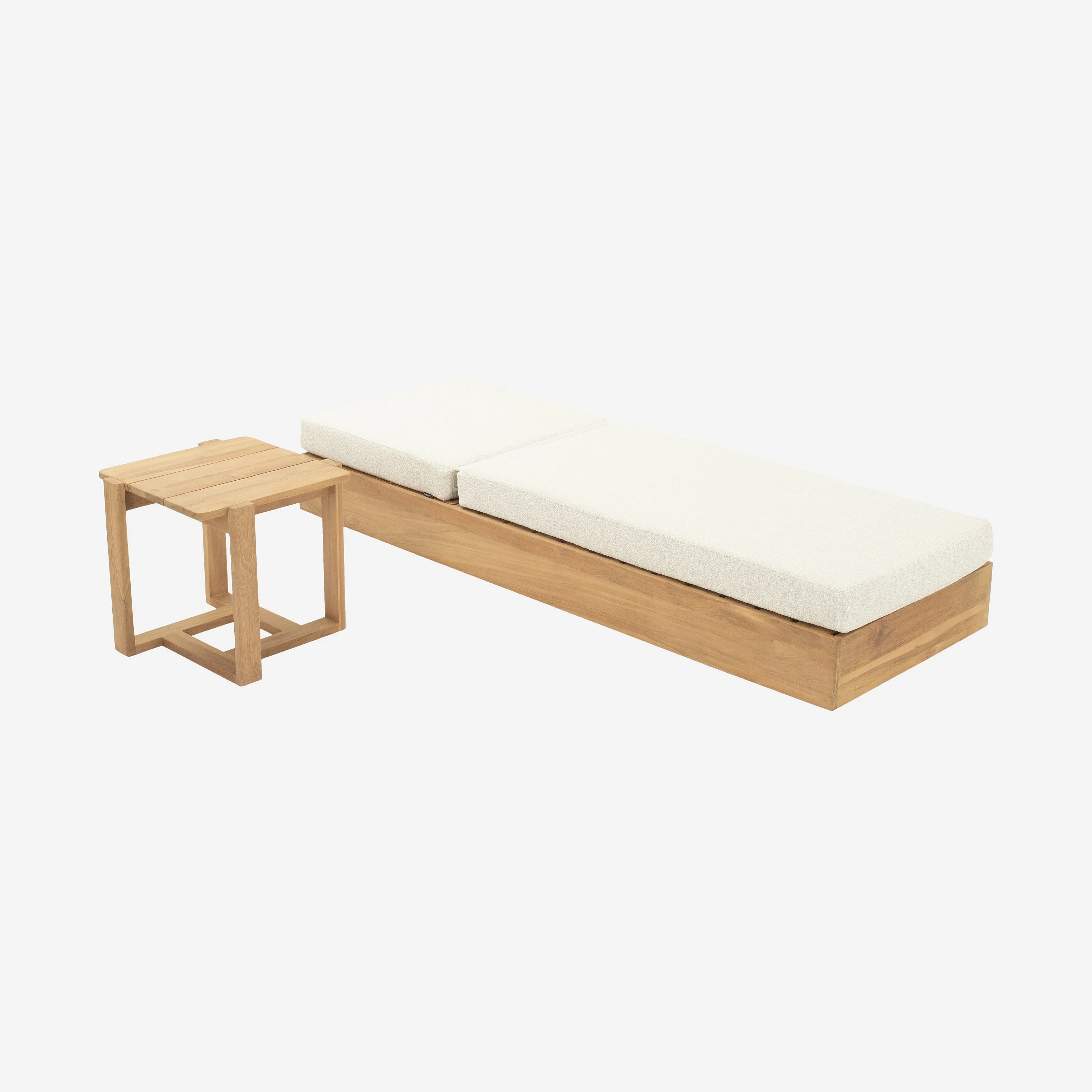 Ensemble table d'appoint et bain de soleil en teck massif et tissu imperméable - Naturel et blanc cassé
