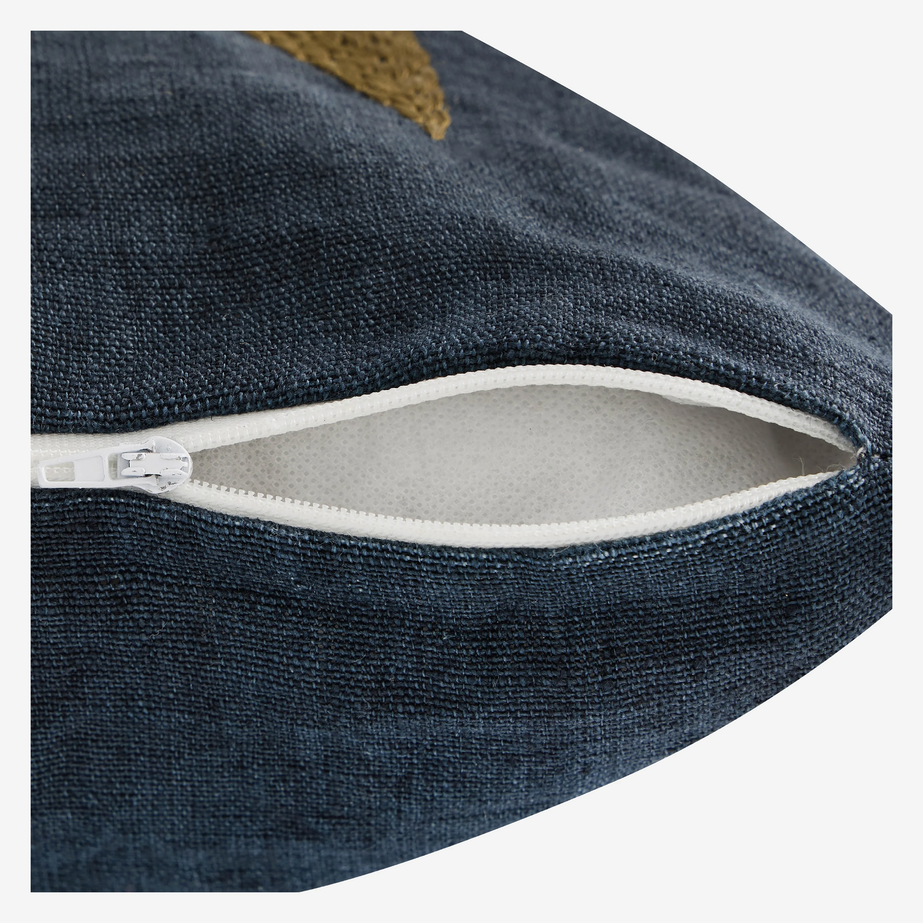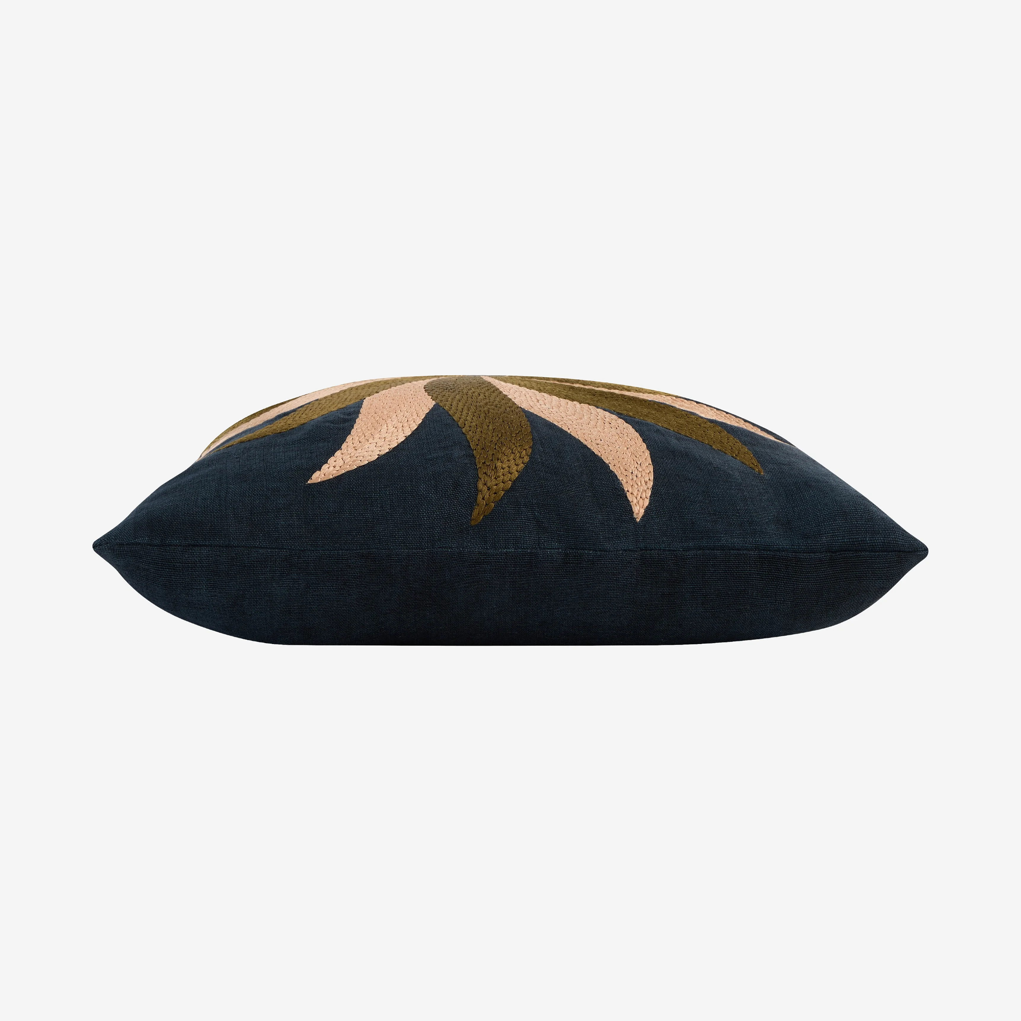 Coussin brodé en lin - 45 x 45 cm - Bleu nuit - Design by Floriane Jacques