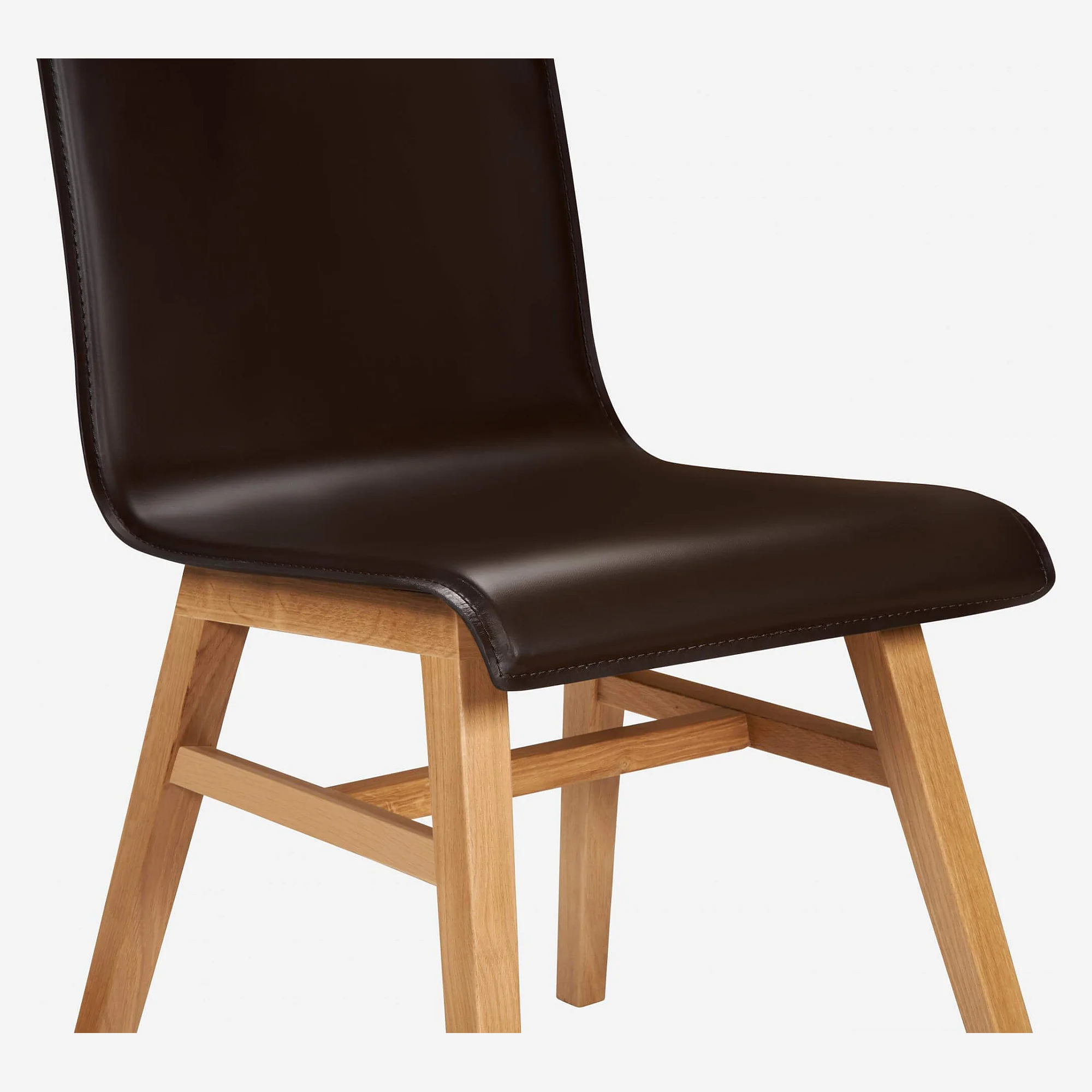Ply III associe assise en cuir et piètement en chêne massif huilé dans un design d’inspiration scandinave. Une création emblématique à l’allure épurée, fabriquée en Europe, idéale autour d’une table contemporaine.