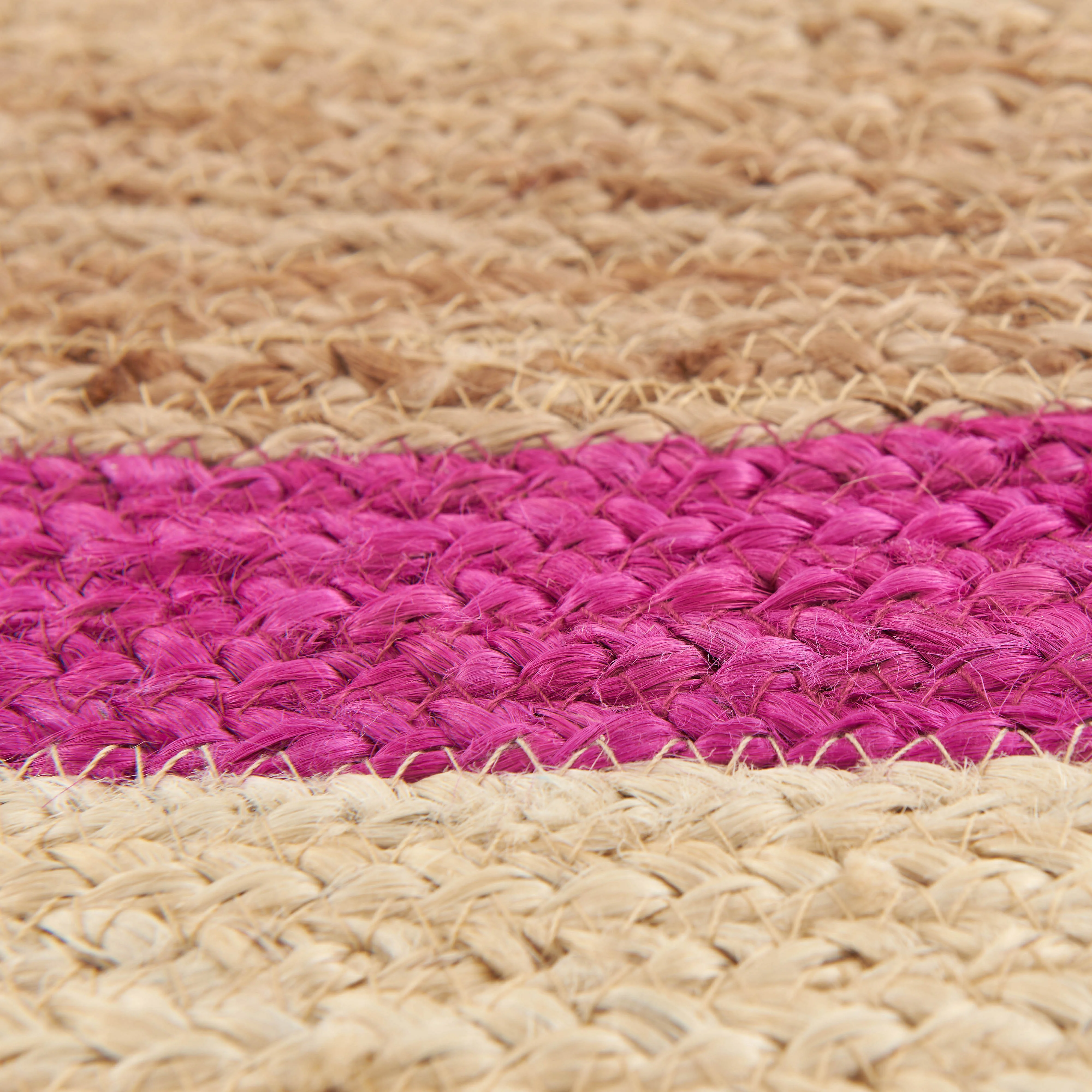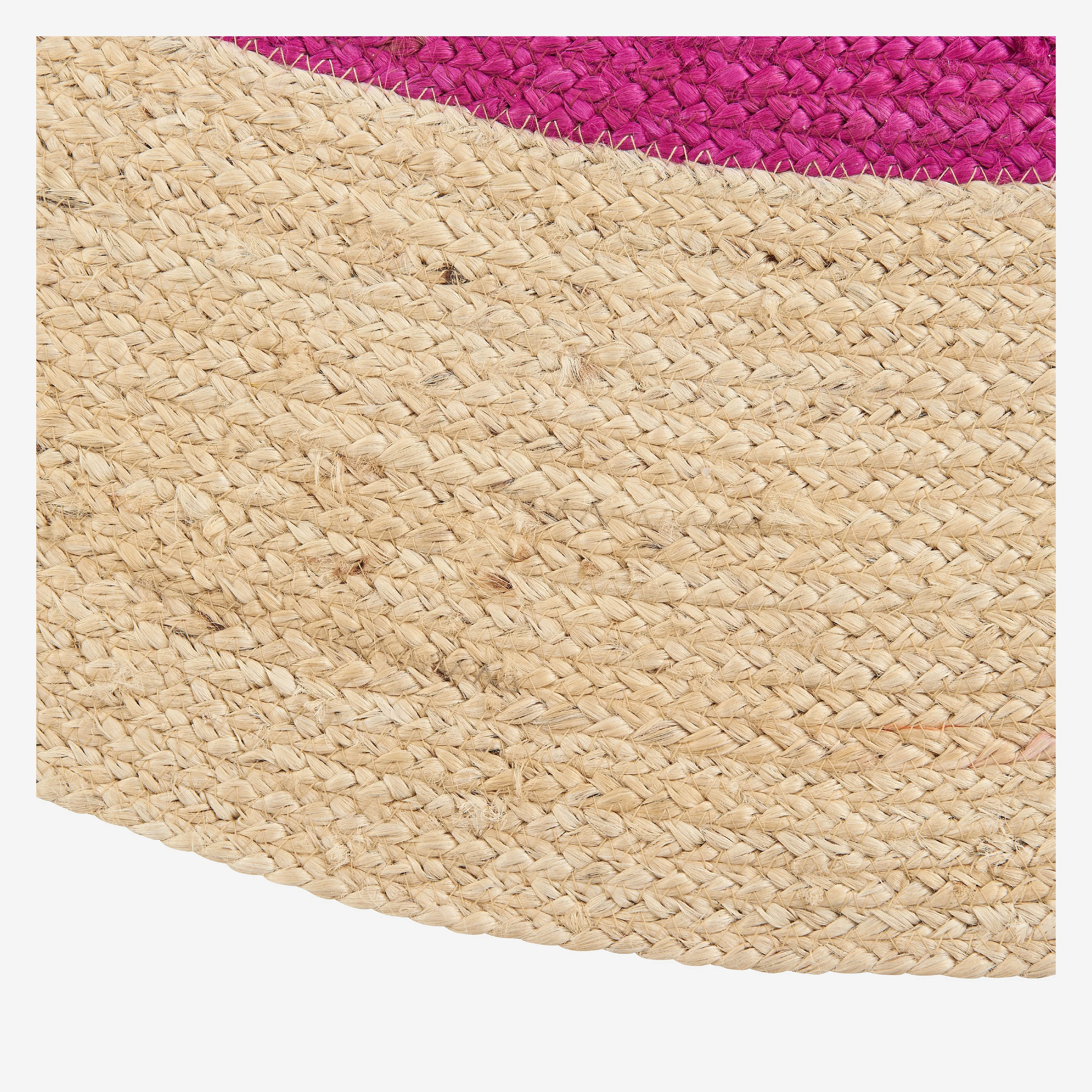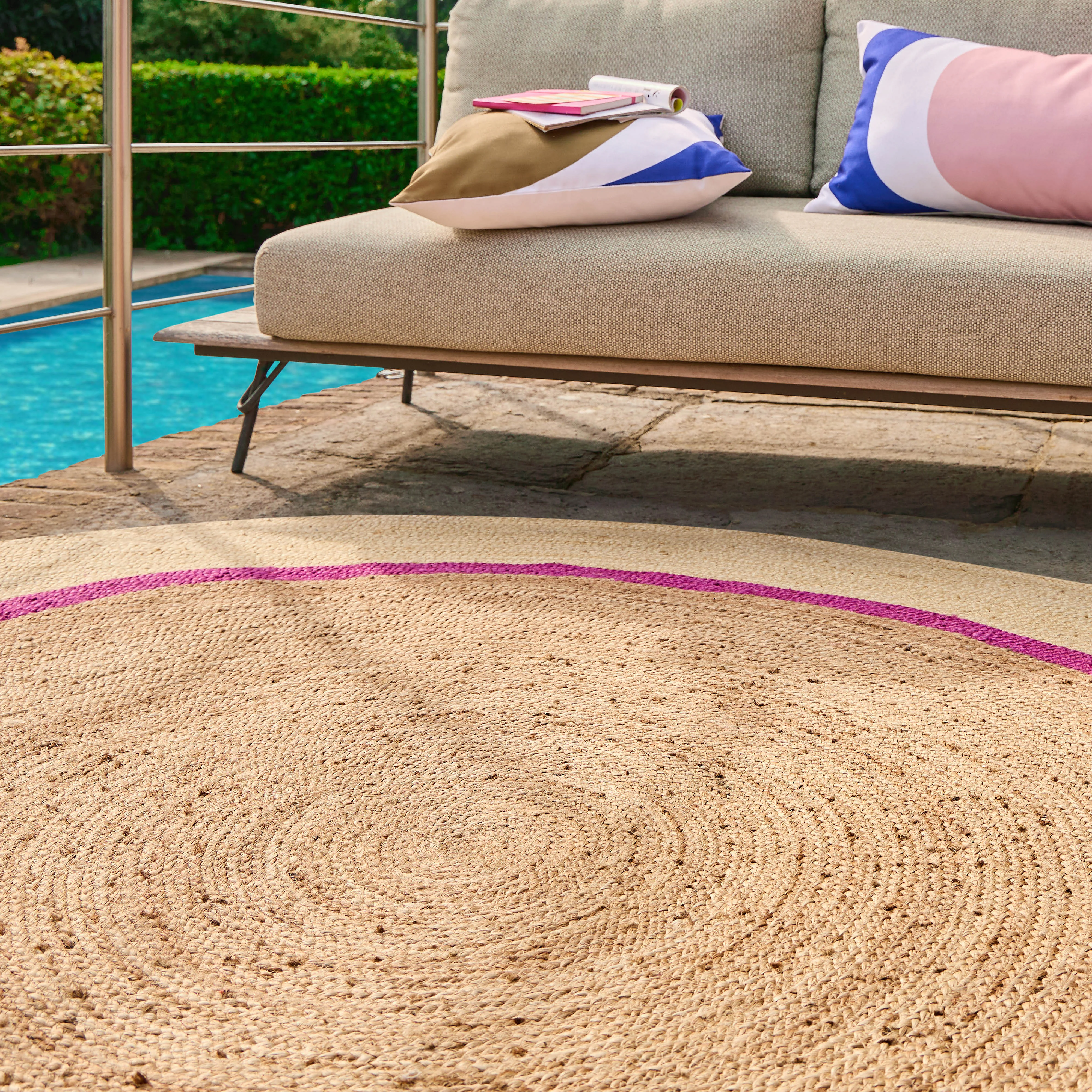 Tapis d'extérieur rond en jute déperlant - 200 cm - Naturel et Fuchsia - Design by Floriane Jacques