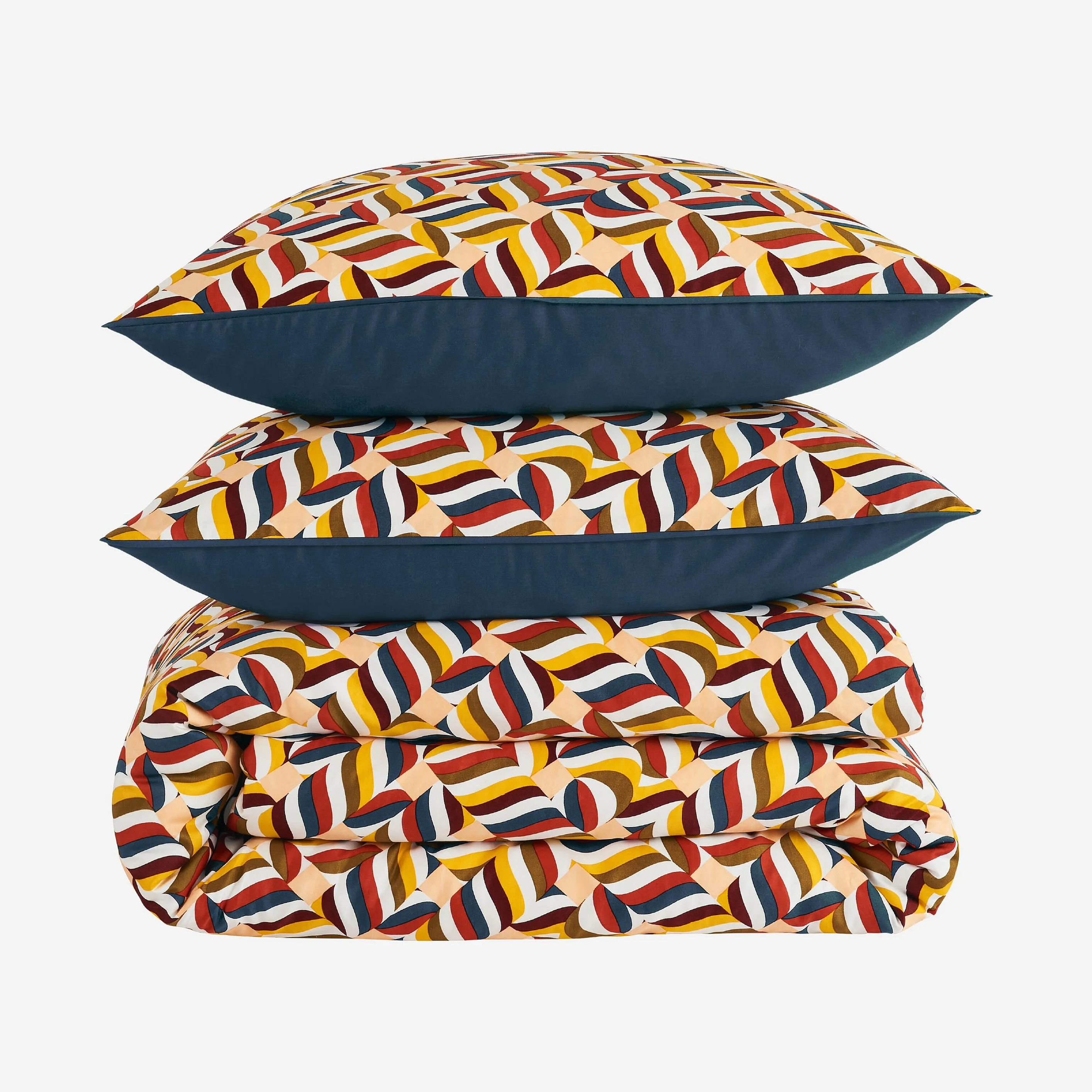 Parure de lit réversible en satin de coton bio - 240 x 220 cm - Bleu nuit et Bordeaux - Design by Floriane Jacques