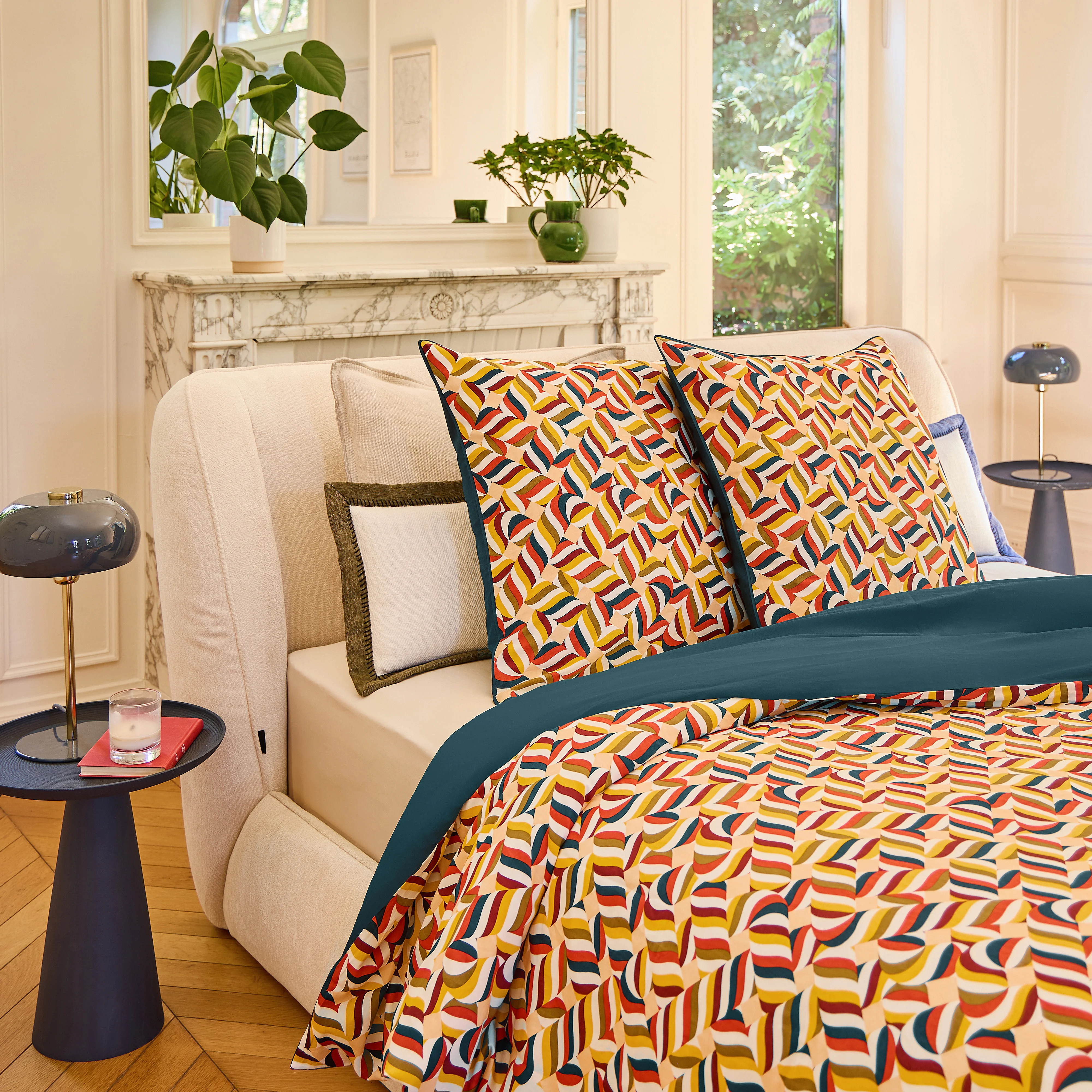 Claudia décline des parures de lit en satin de coton bio, dessinées par Floriane Jacques, pour envelopper la chambre d’une douceur soyeuse et d’une élégance contemporaine.