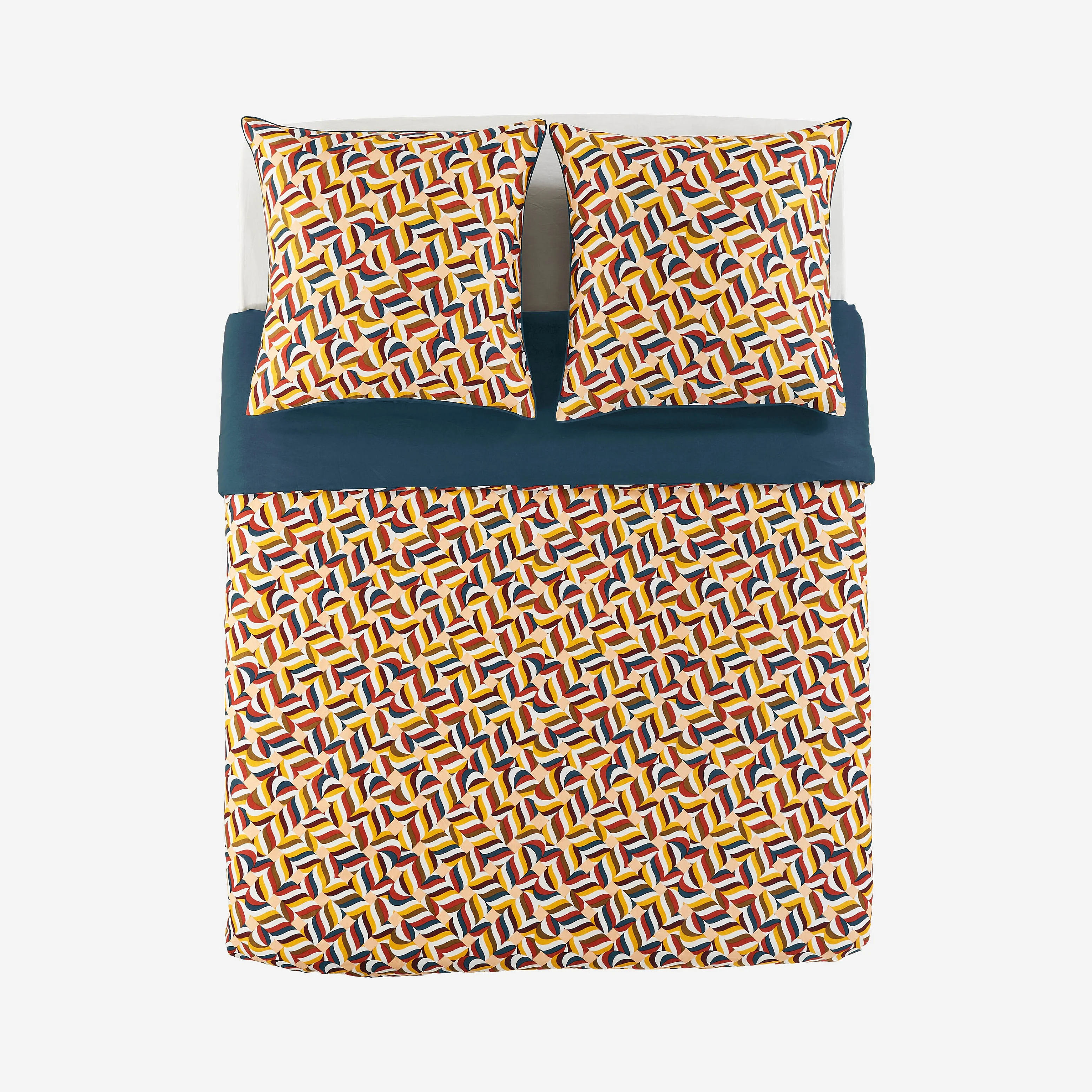 Parure de lit réversible en satin de coton bio - 260 x 240 cm - Bleu nuit et Bordeaux - Design by Floriane Jacques