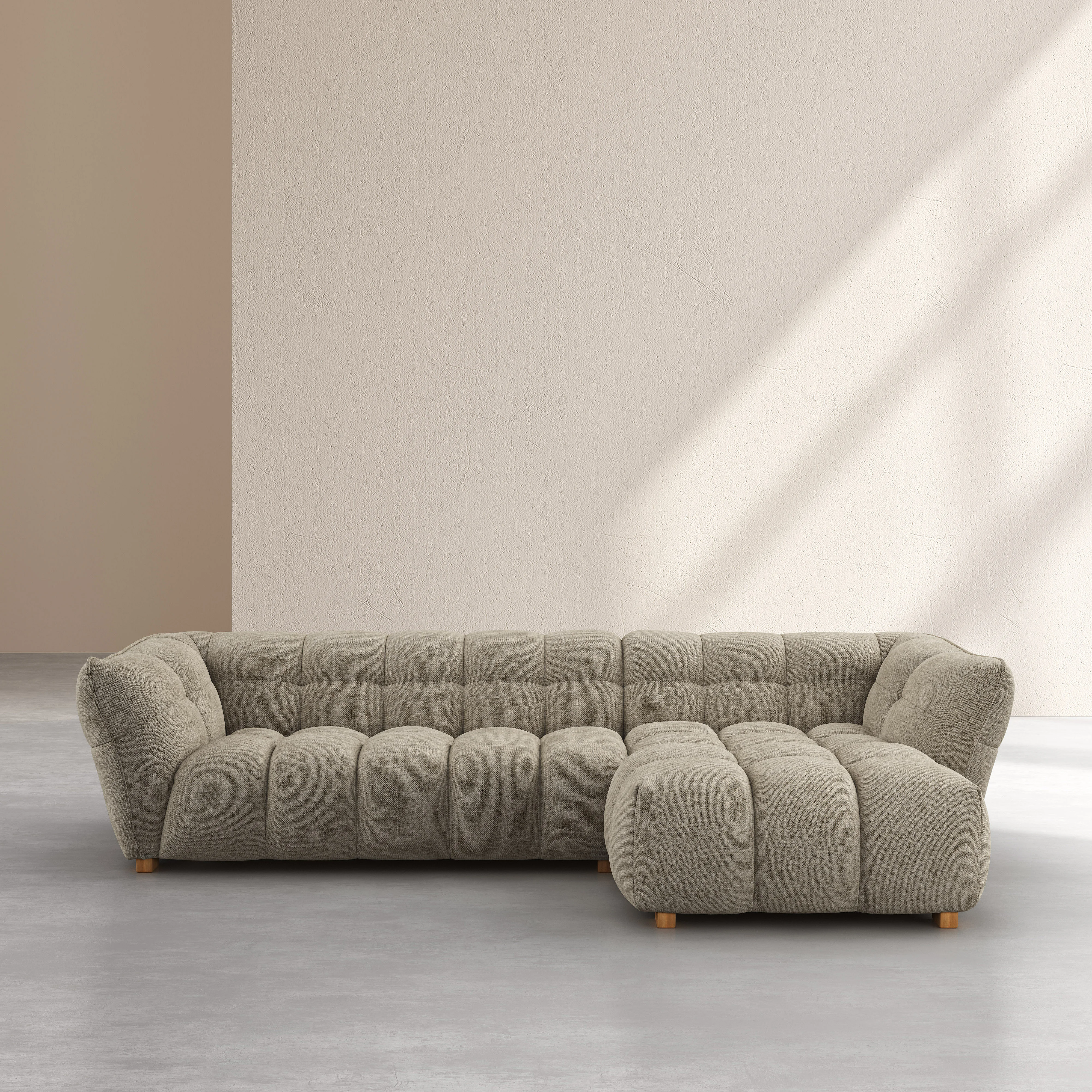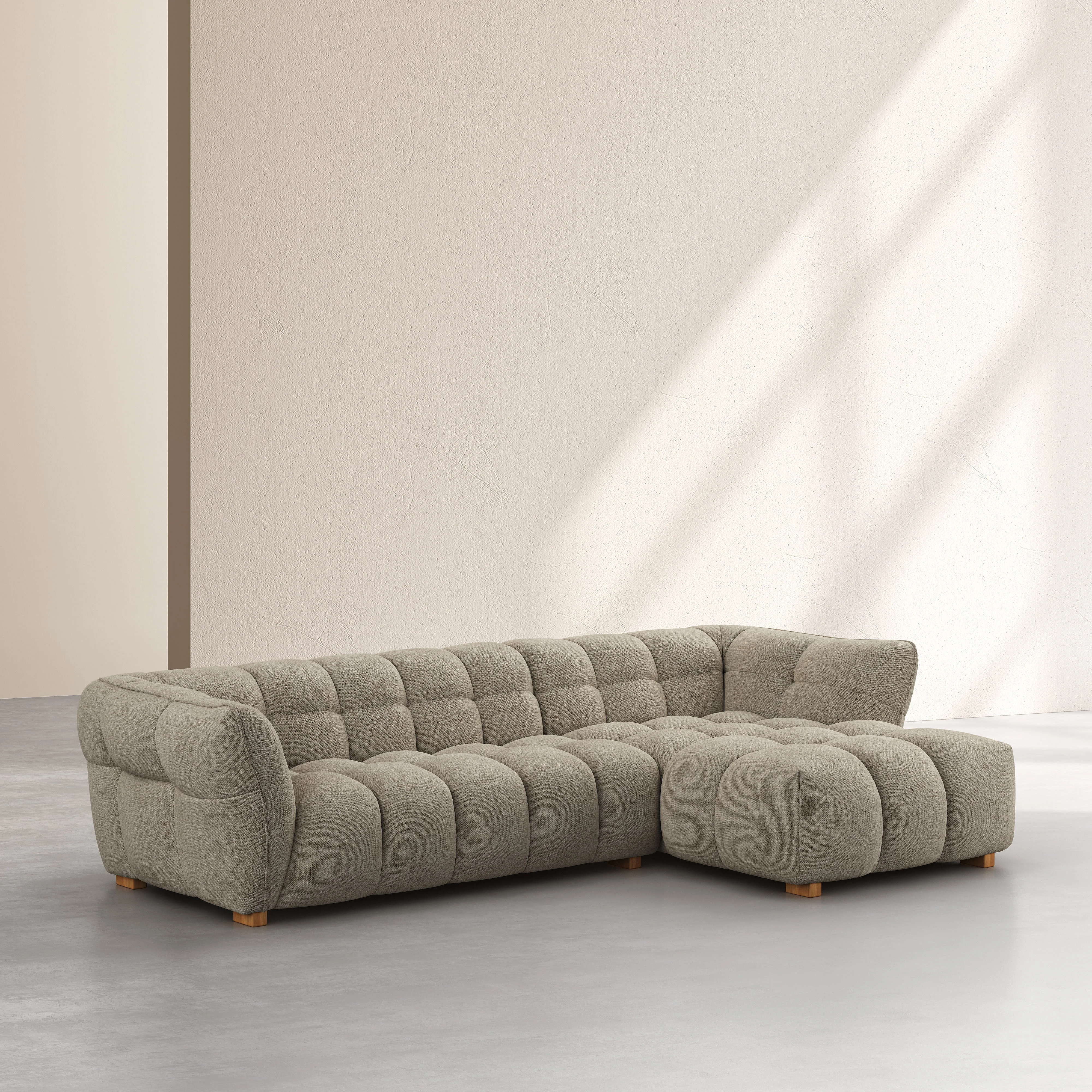 Canapé d'angle droit en tissu chenille Nino - Grège