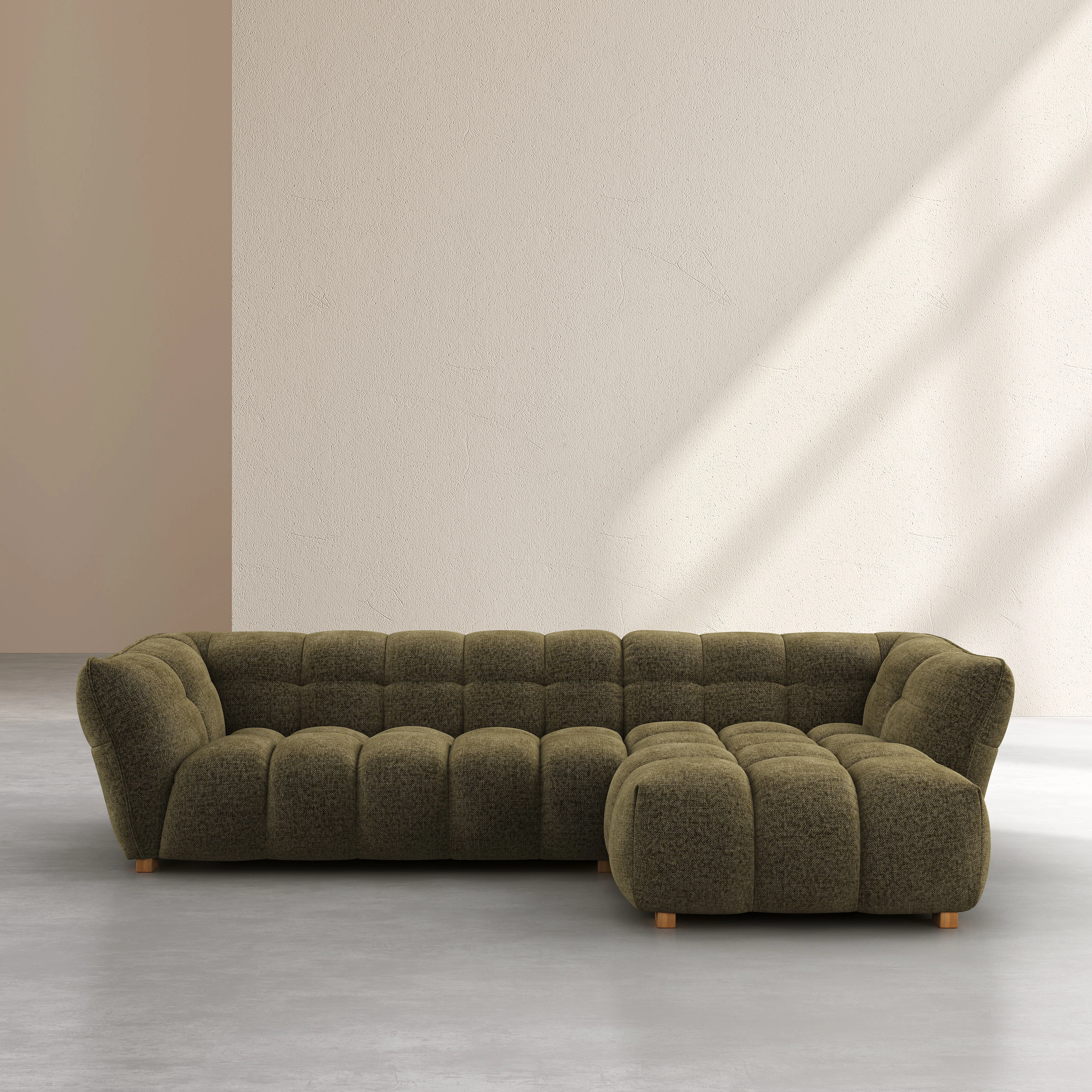 Canapé d'angle droit en tissu chenille Nino - Vert mousse