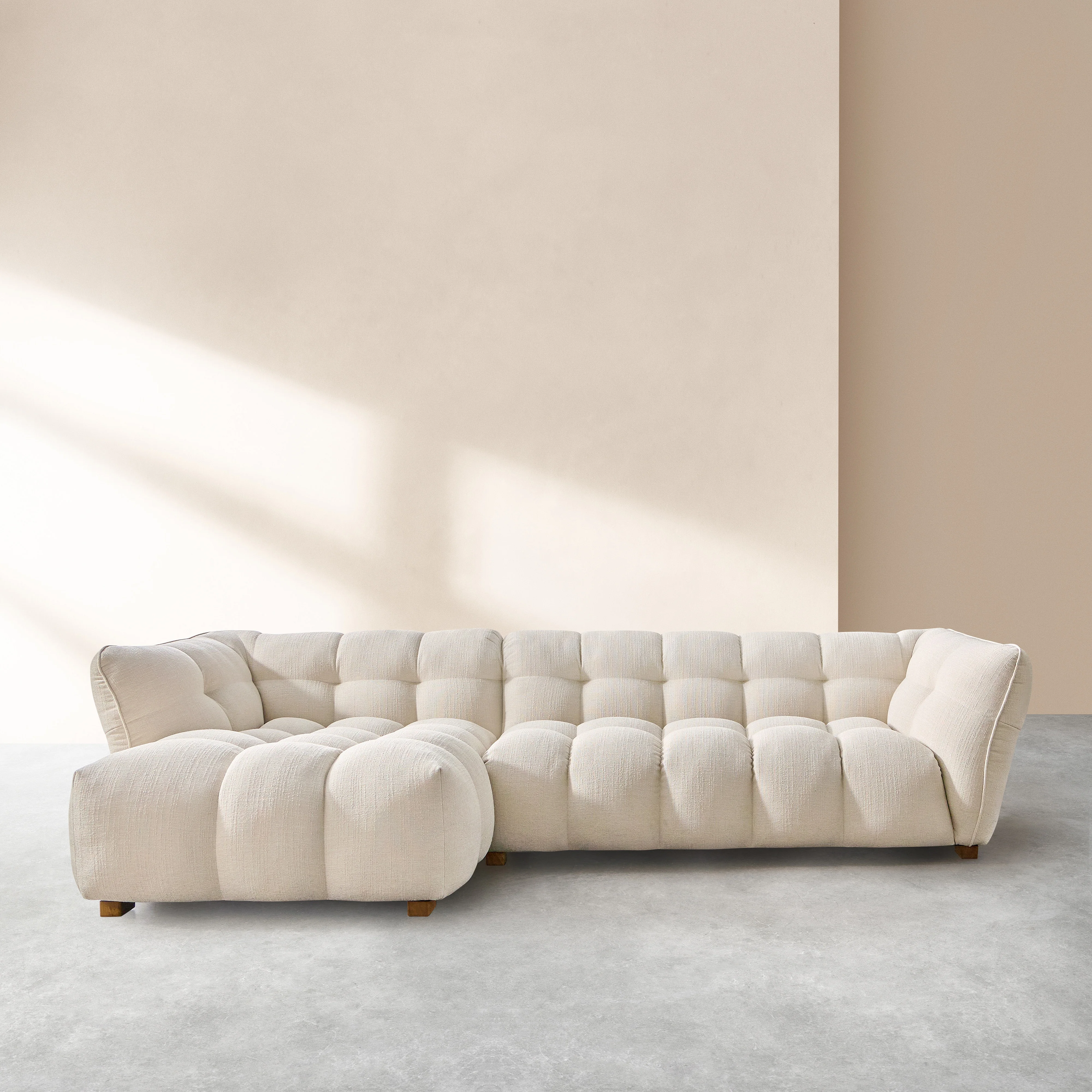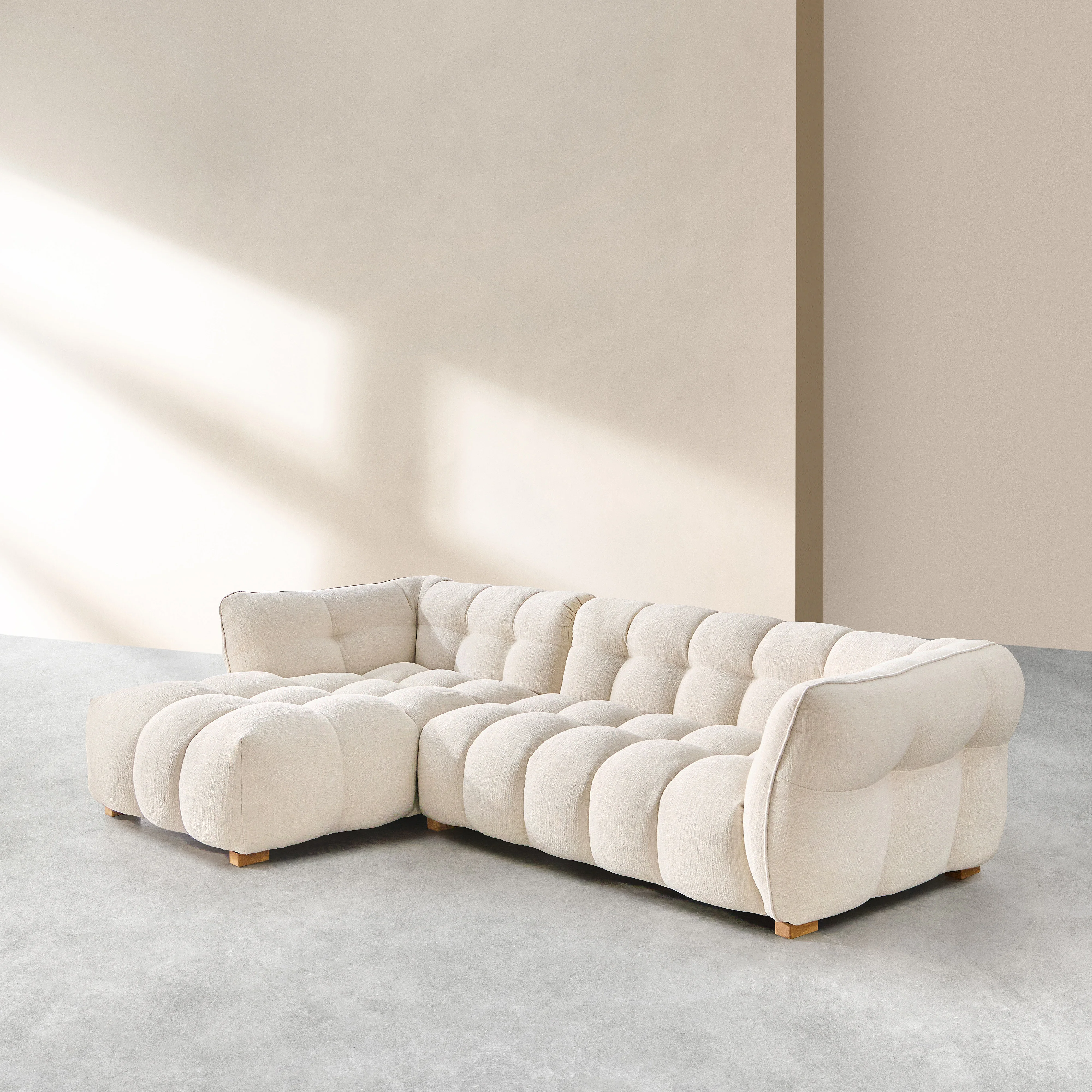 Canapé d'angle gauche en tissu bouclette courte Mira - Ivoire