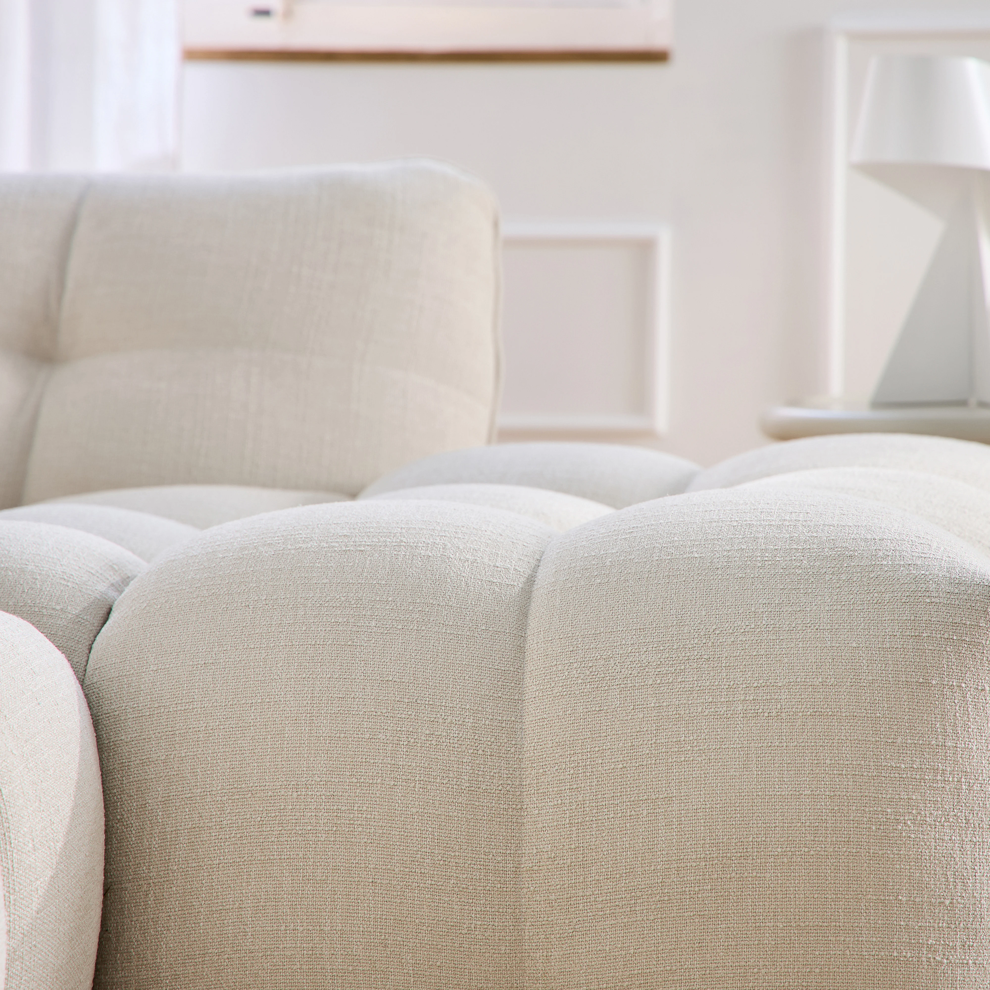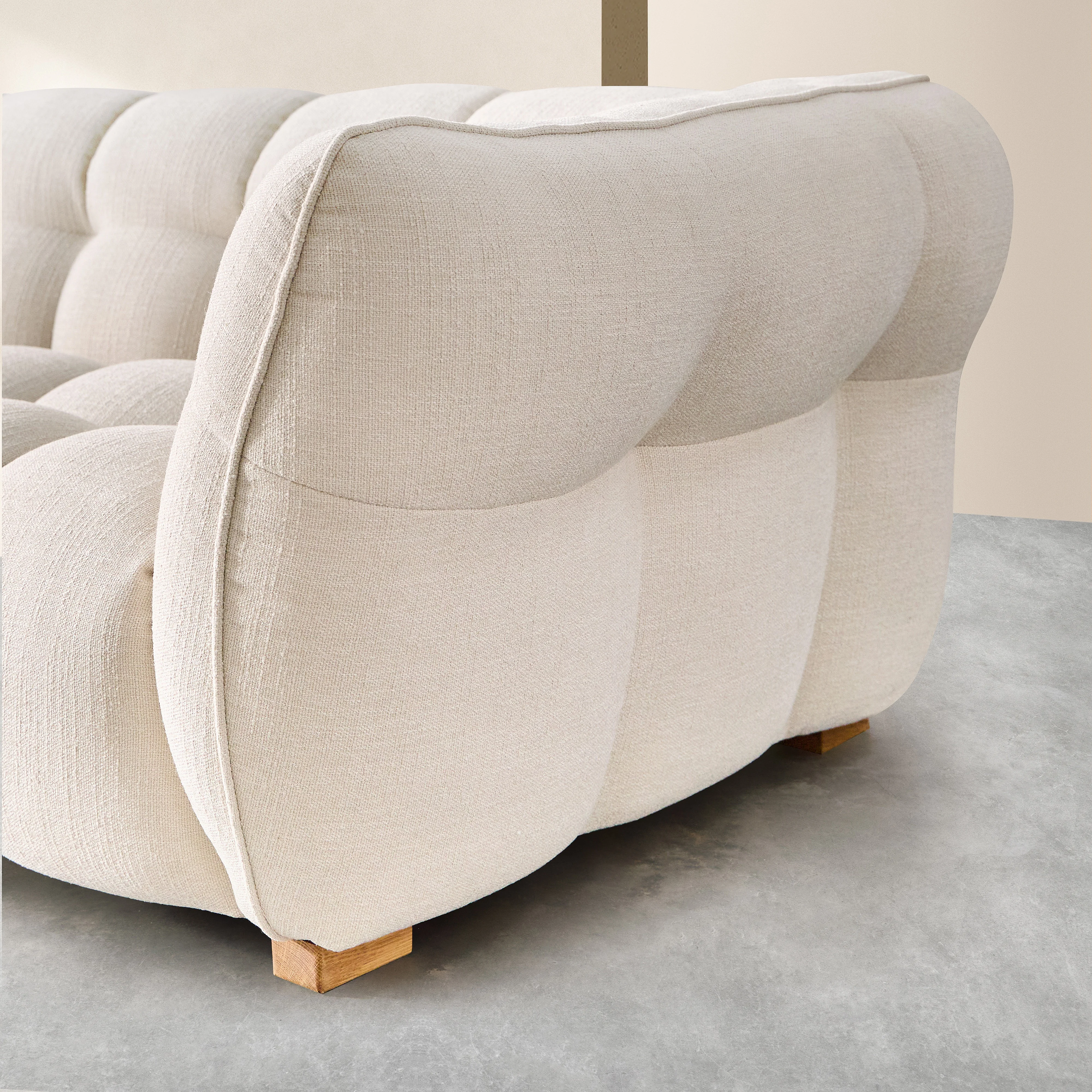 Dalvi séduit par sa silhouette audacieuse et son assise généreuse. Un canapé au design singulier, entre douceur visuelle et confort immersif.