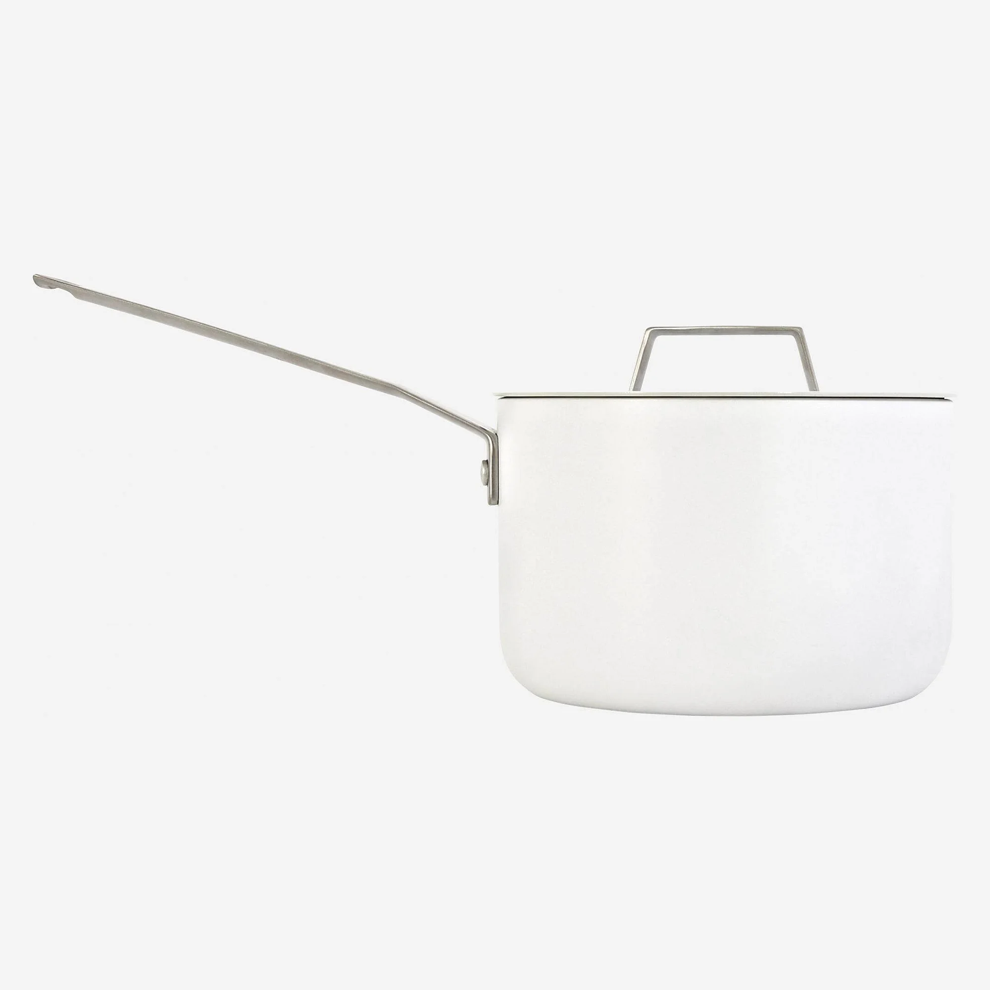 Casserole avec couvercle 18 cm en aluminium extérieur blanc et revêtement intérieur céramique