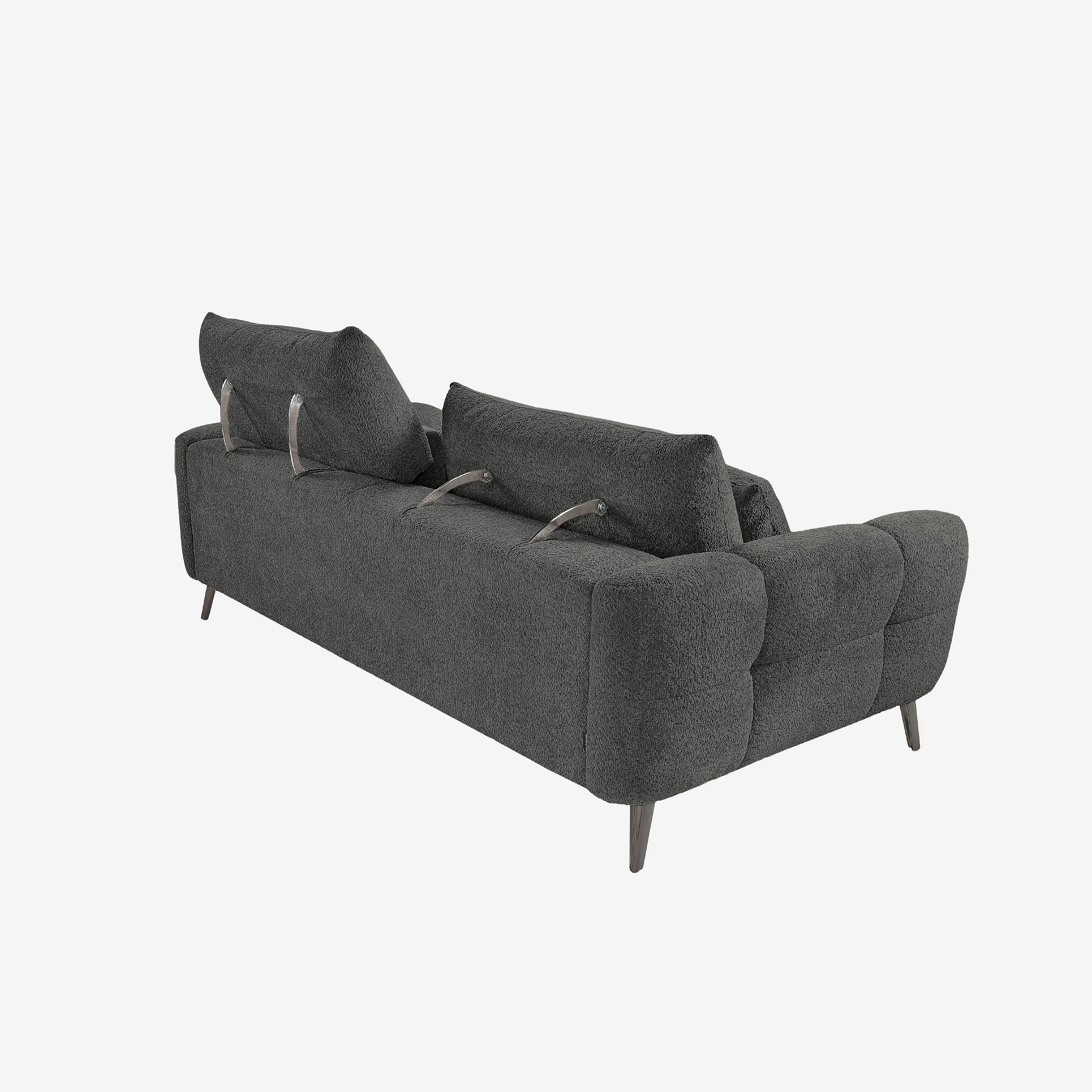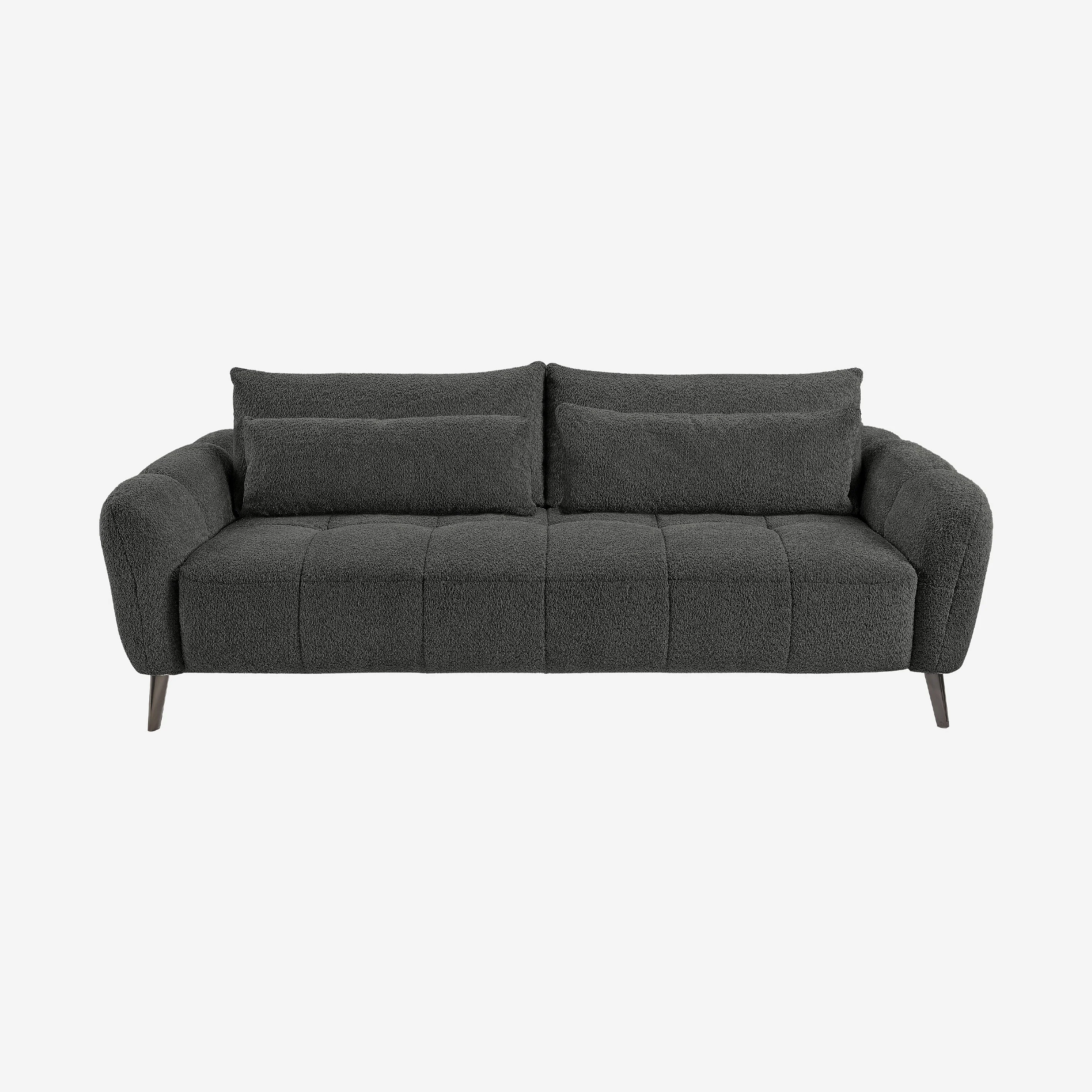 Canapé 3 places dossier relevable déhoussable en tissu bouclette courte - Gris anthracite