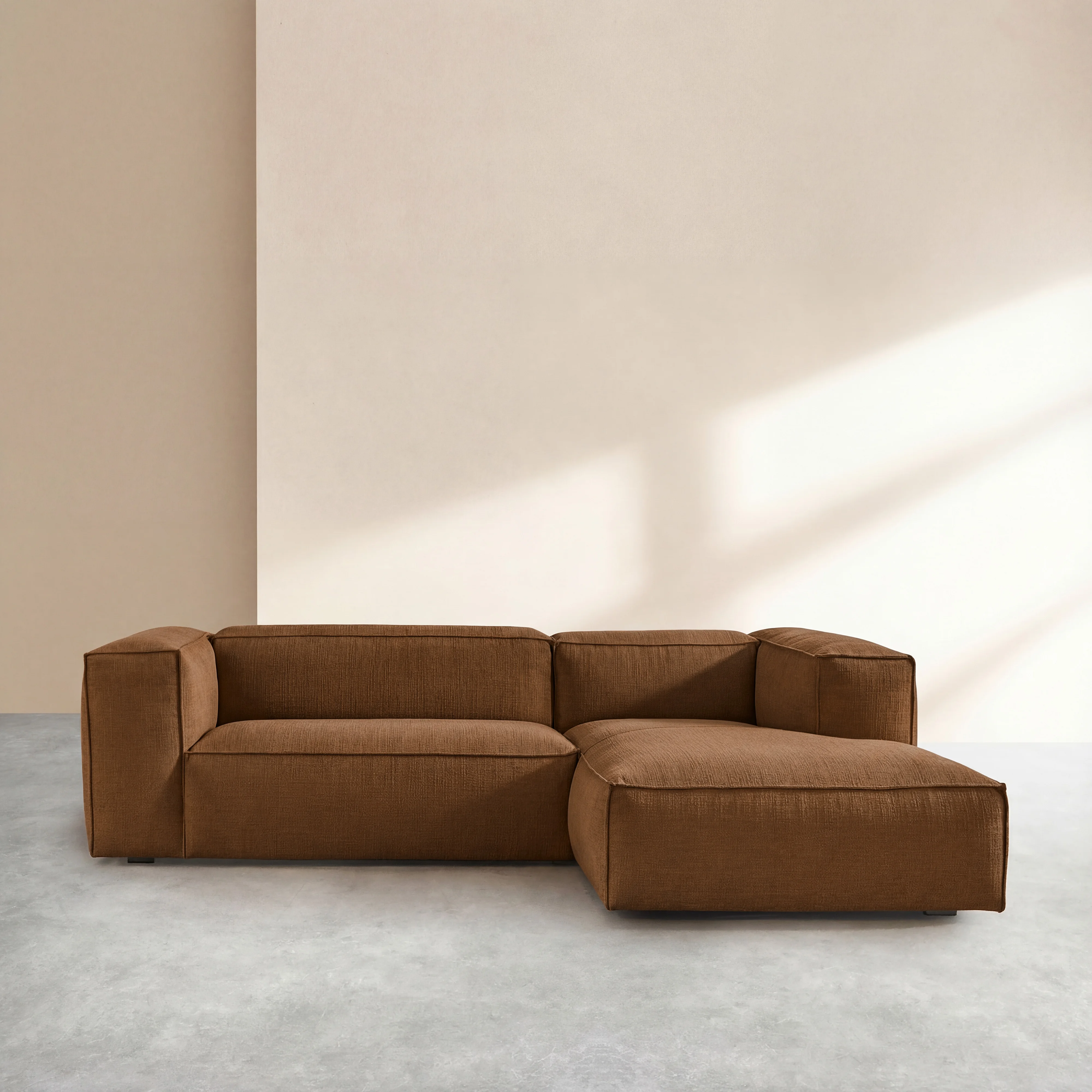Canapé d'angle droit en tissu bouclette courte Mira - Marron noisette