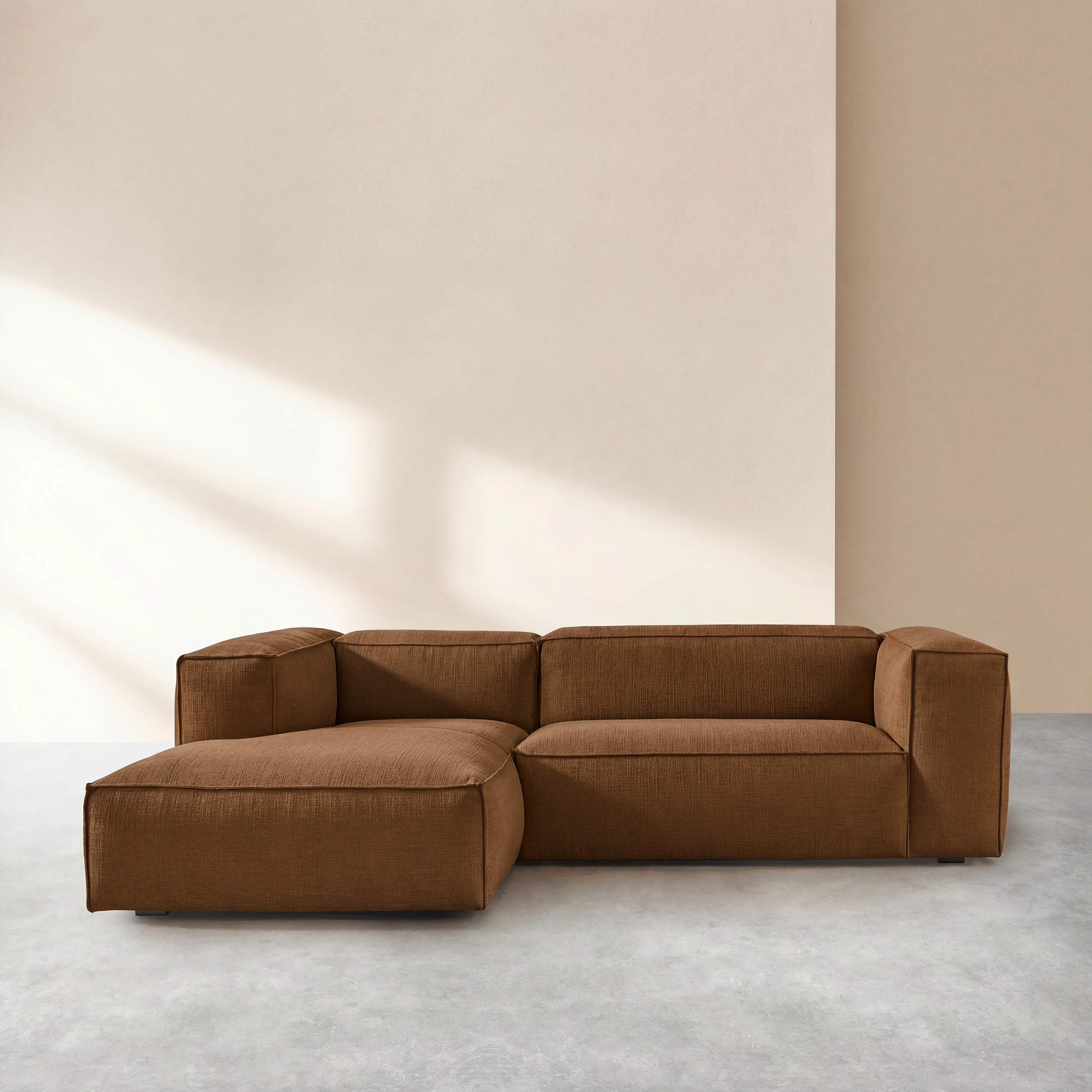 Canapé d'angle gauche en tissu bouclette courte Mira - Marron noisette