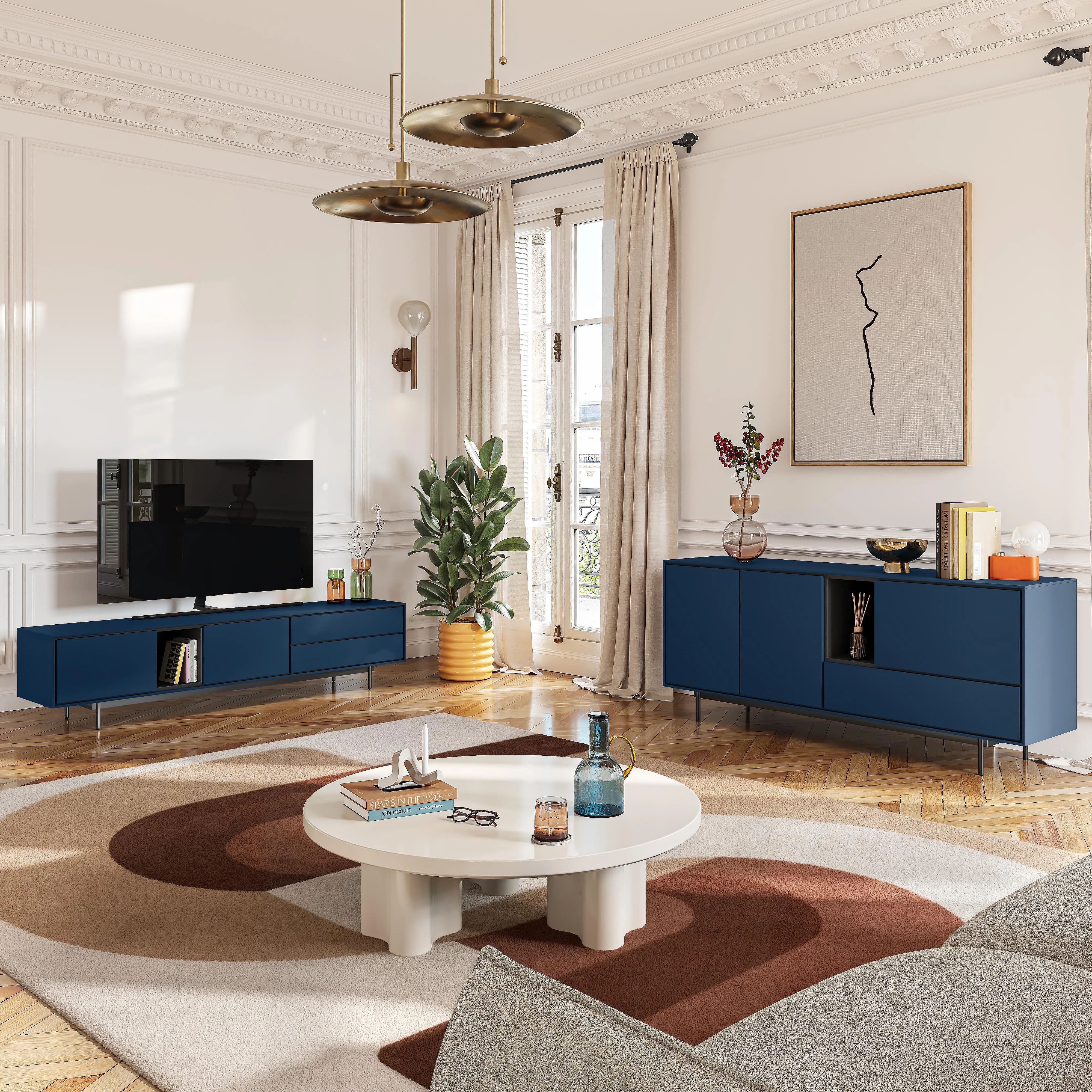 Meuble TV 2 portes et 2 tiroirs - Bleu pétrole - Design by Céline Mognon Fichet