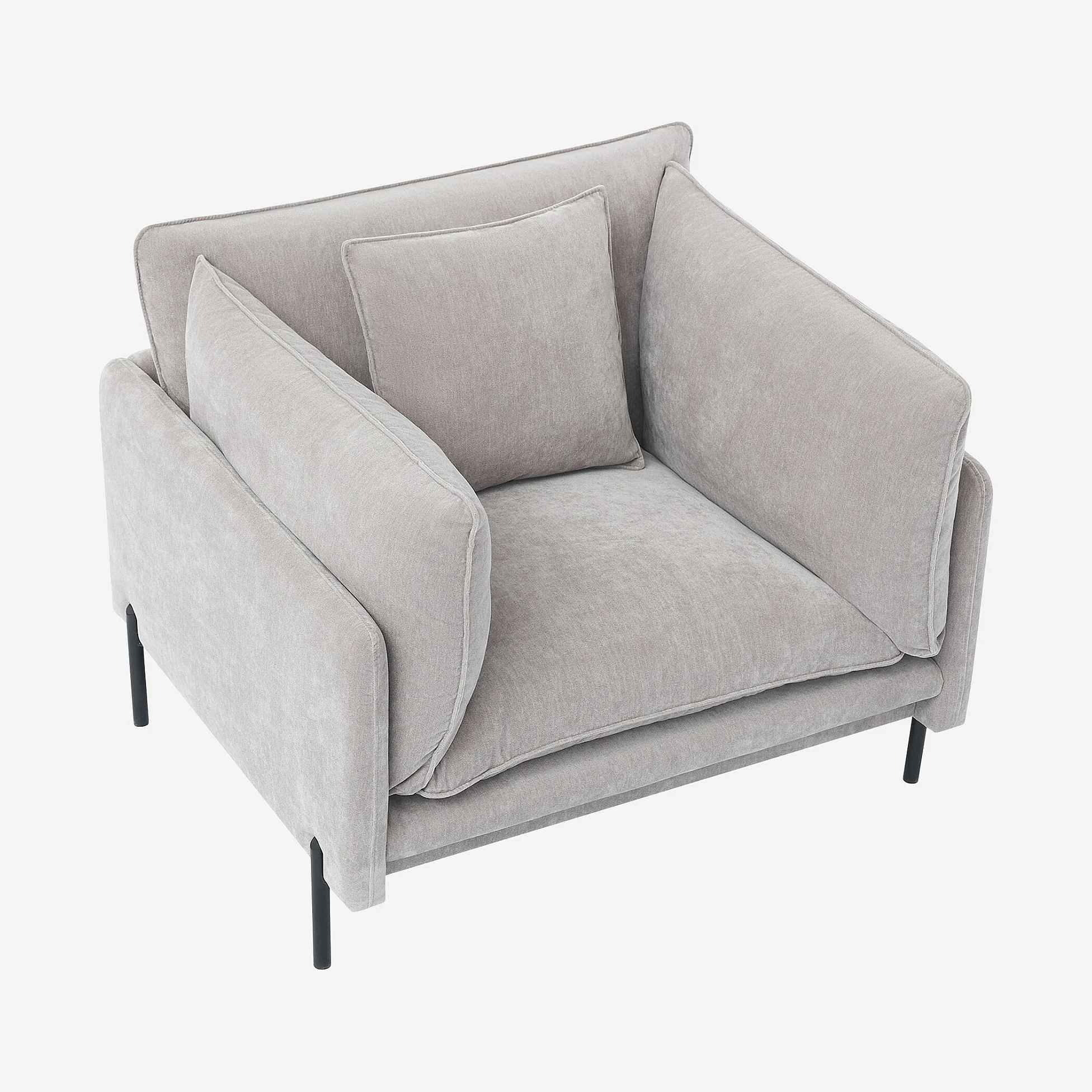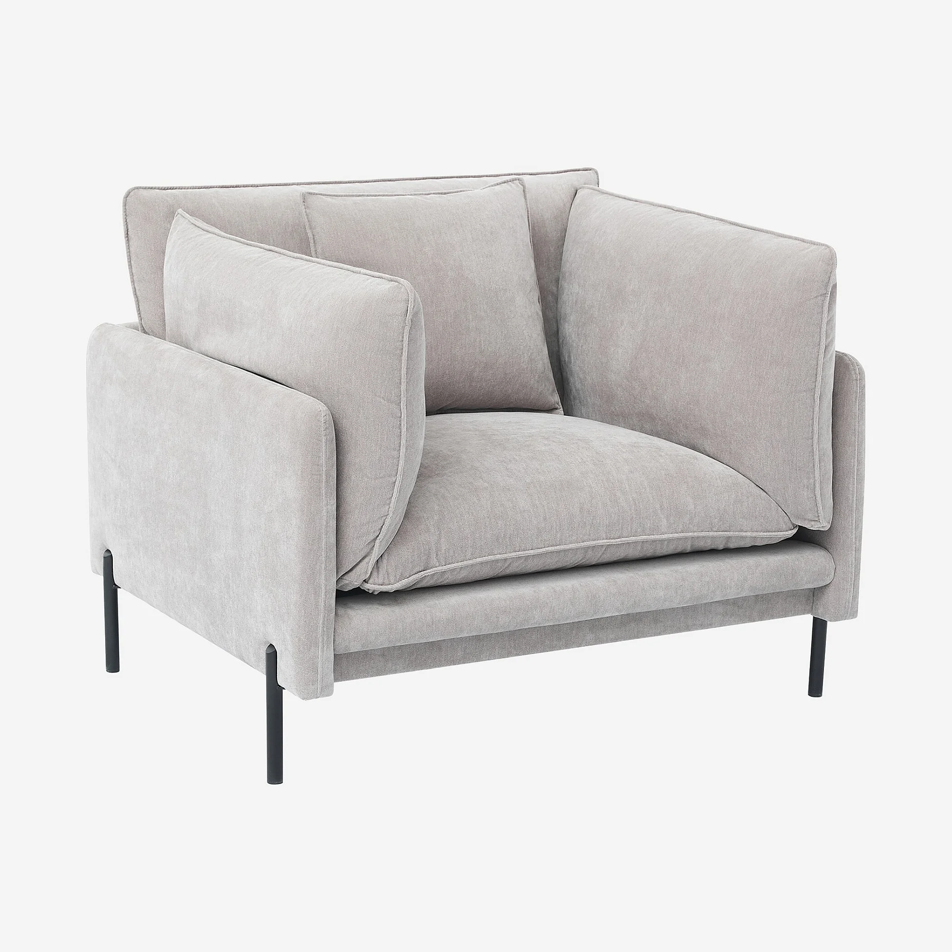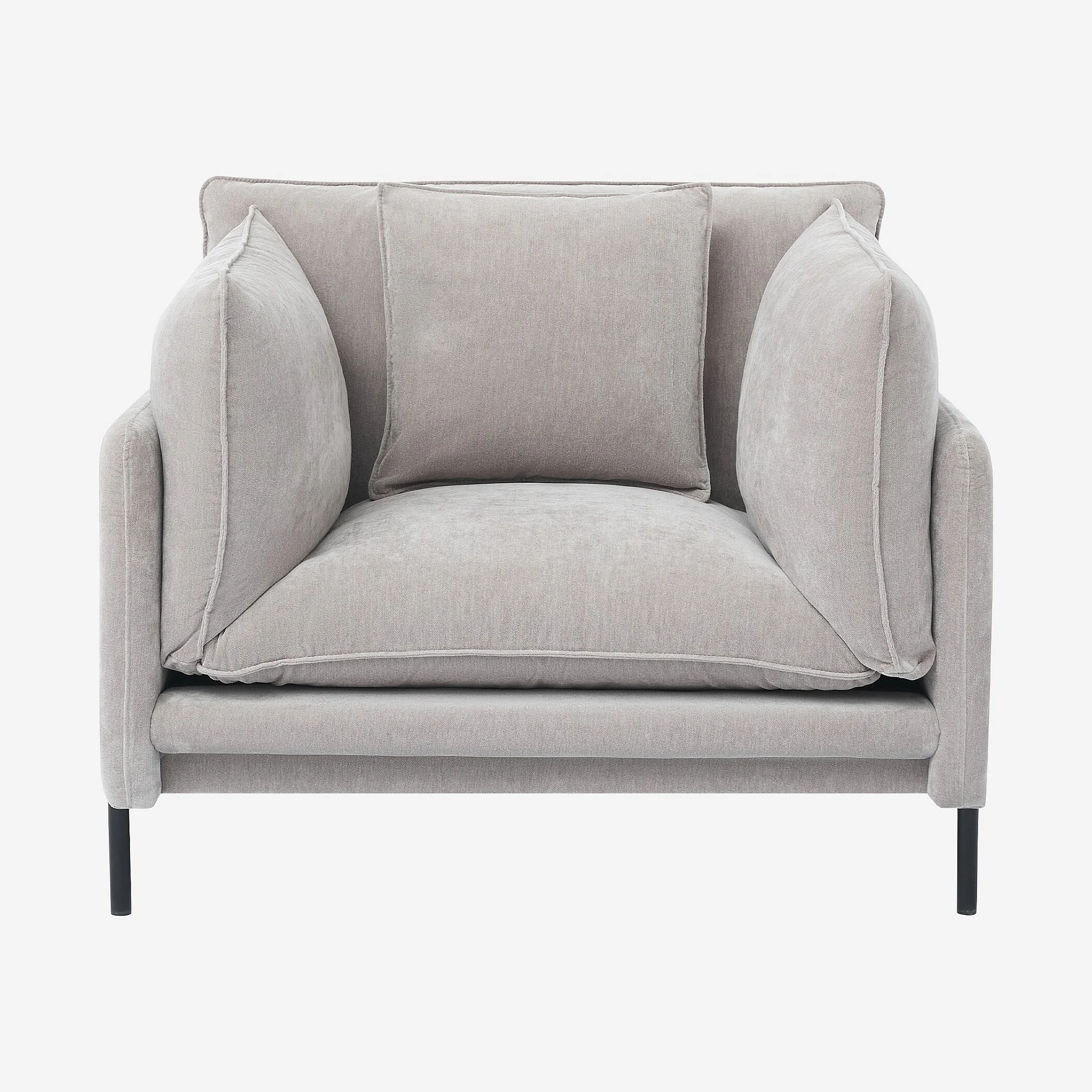 Fauteuil déhoussable en tissu garni de plumes - Gris perle