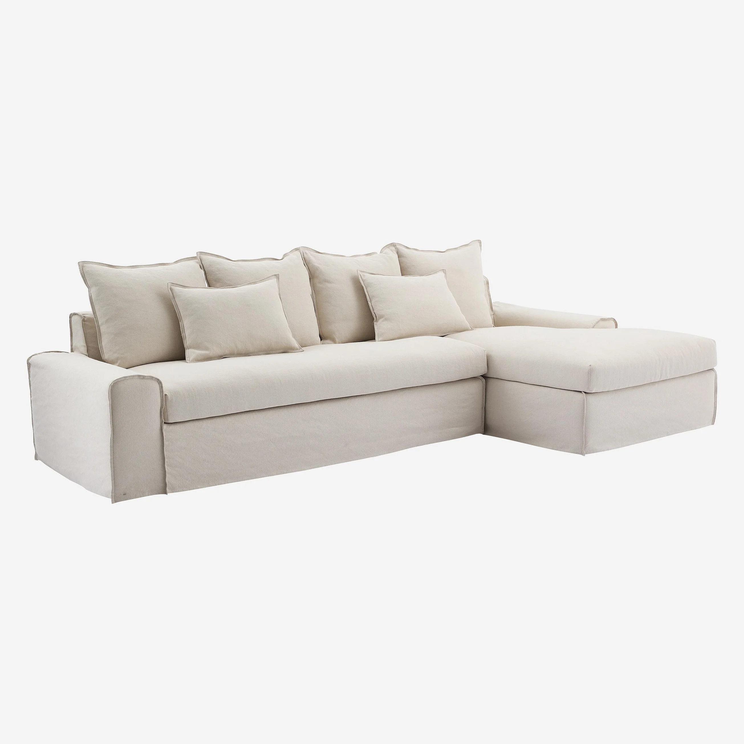 Canapé d'angle droit déhoussable en coton et lin garni de plumes - Sable blanc