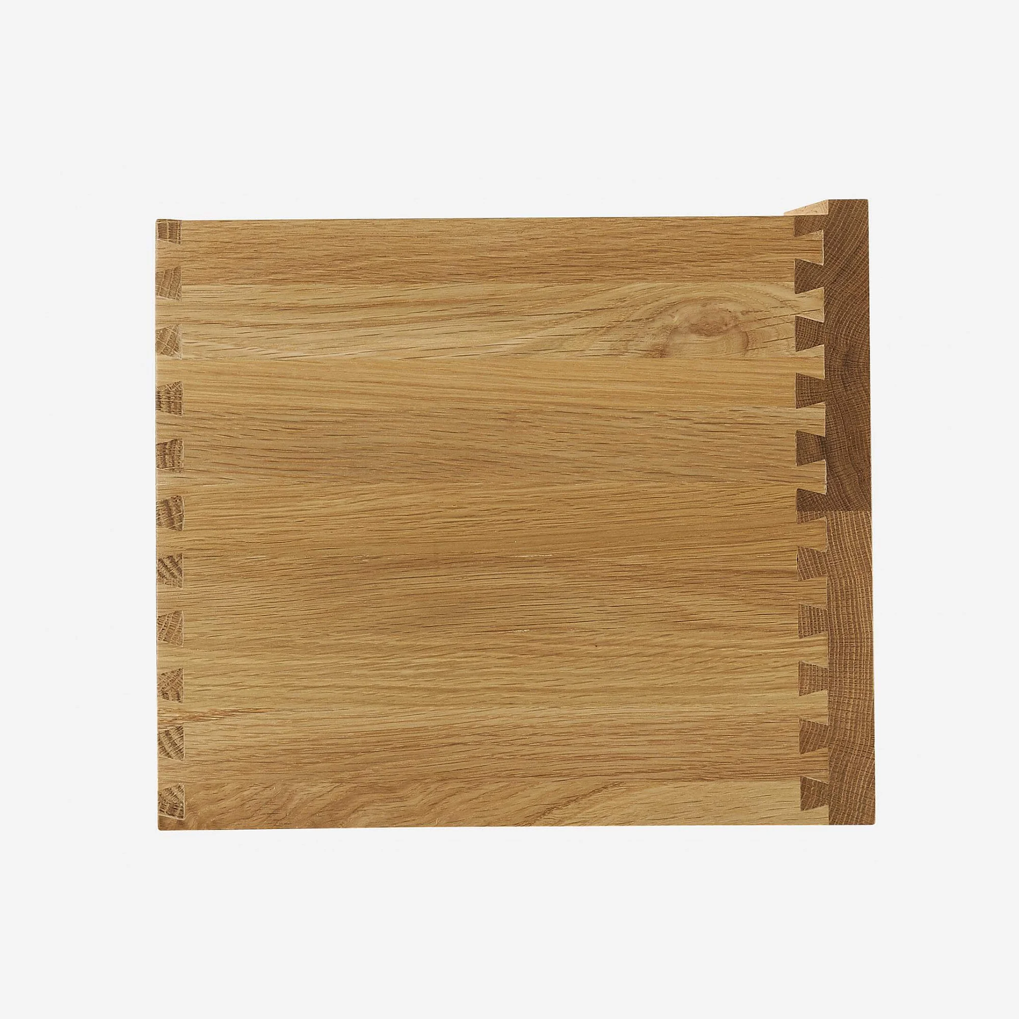 Tiroirs en chêne massif, assemblage en queue d’aronde et lignes épurées viennent compléter le miroir sur pied avec discrétion. Une solution pratique et élégante pour organiser ses essentiels avec soin.