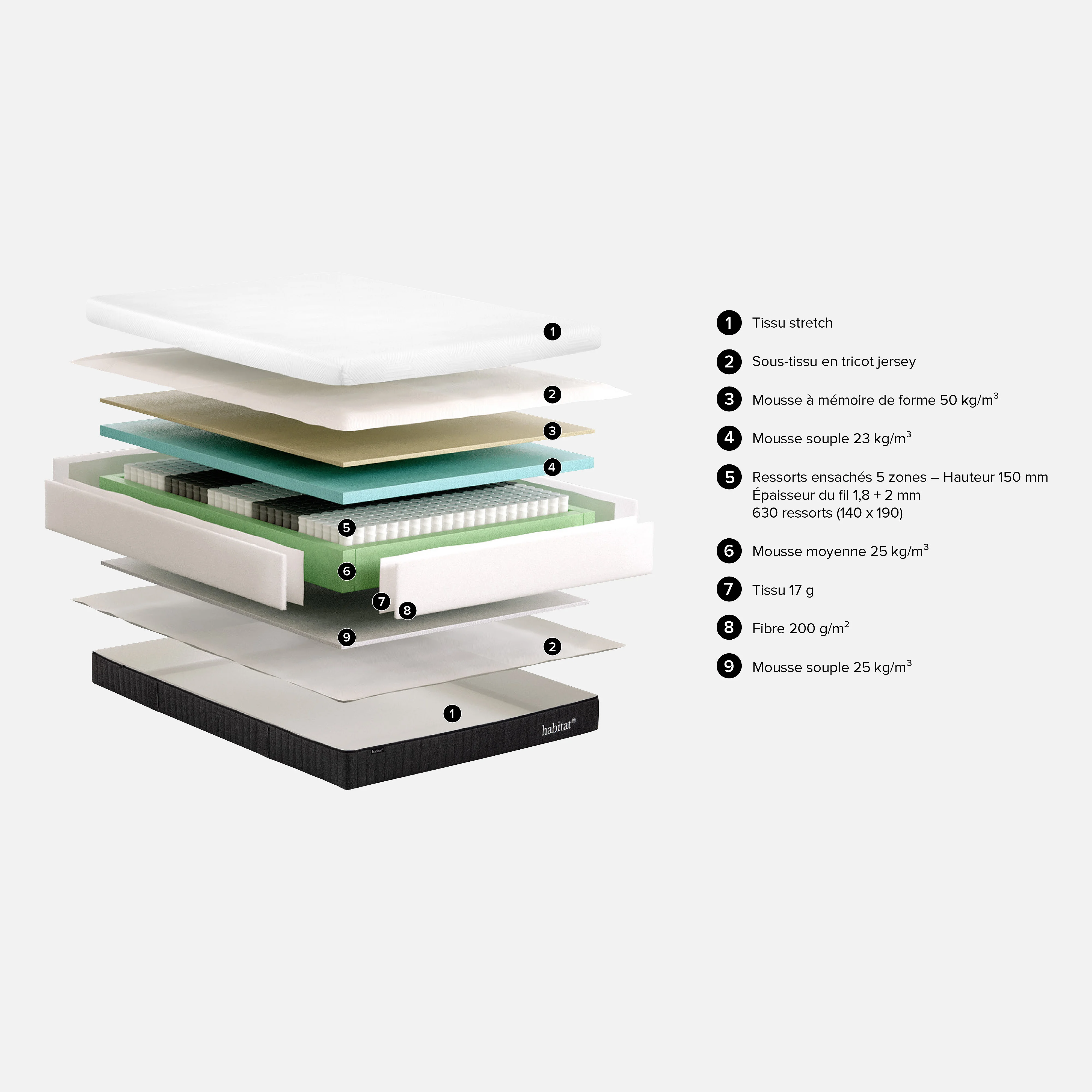 Hybride Genèse combine ressorts ensachés et mousse à mémoire de forme pour un accueil enveloppant et un soutien équilibré. Un matelas complet, respirant et durable, pensé pour votre bien-être toute l’année.