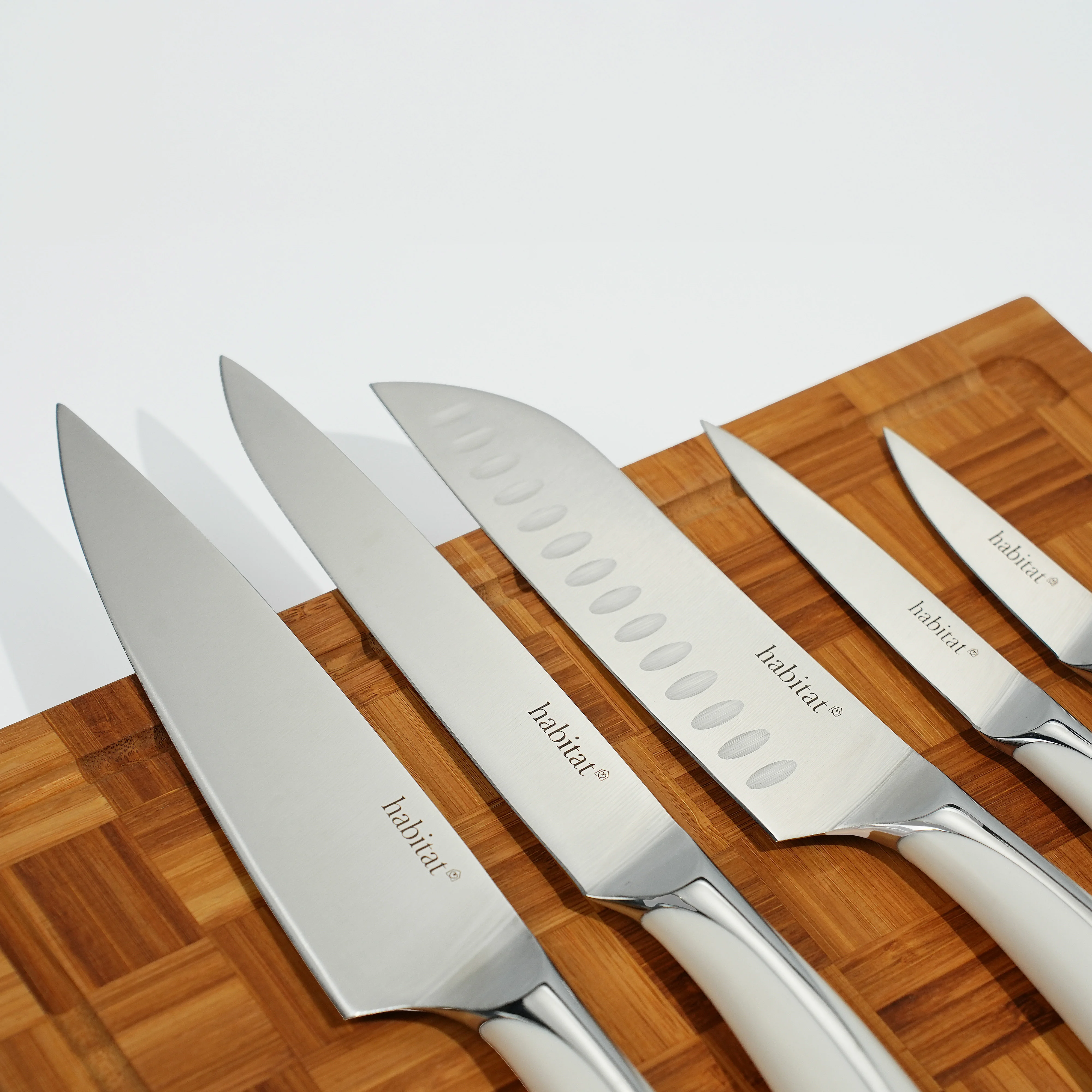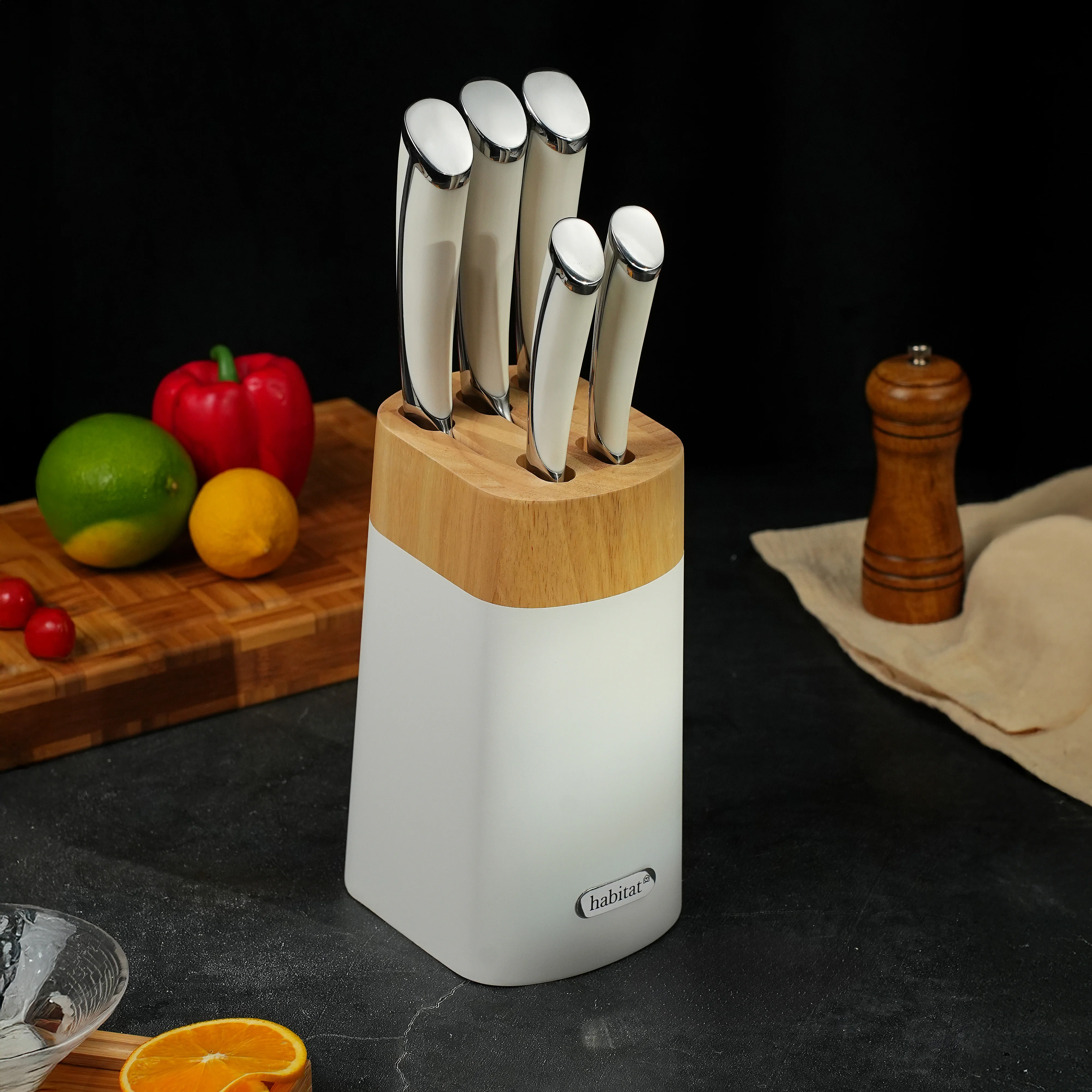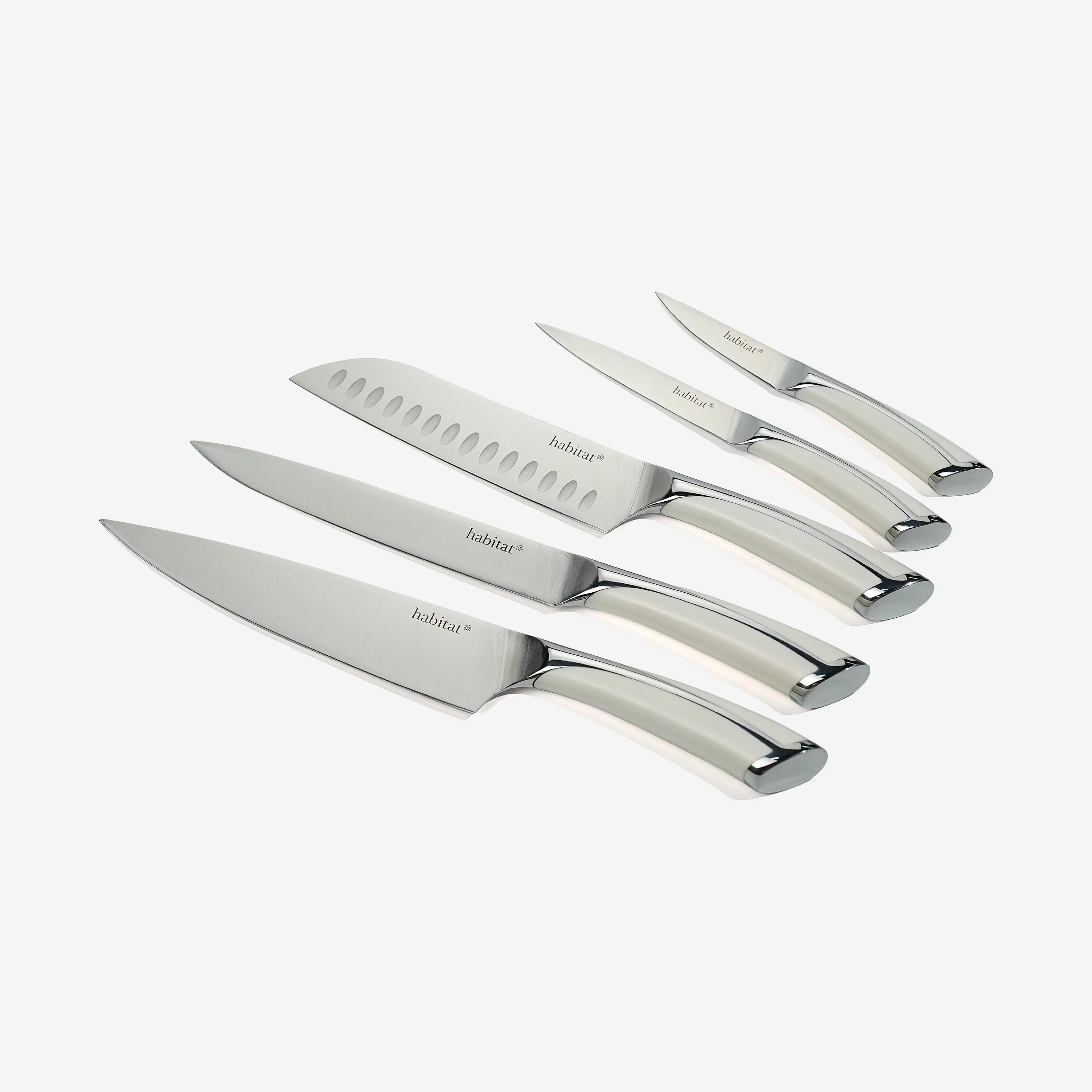 Bloc de 5 couteaux en acier inoxydable - Blanc