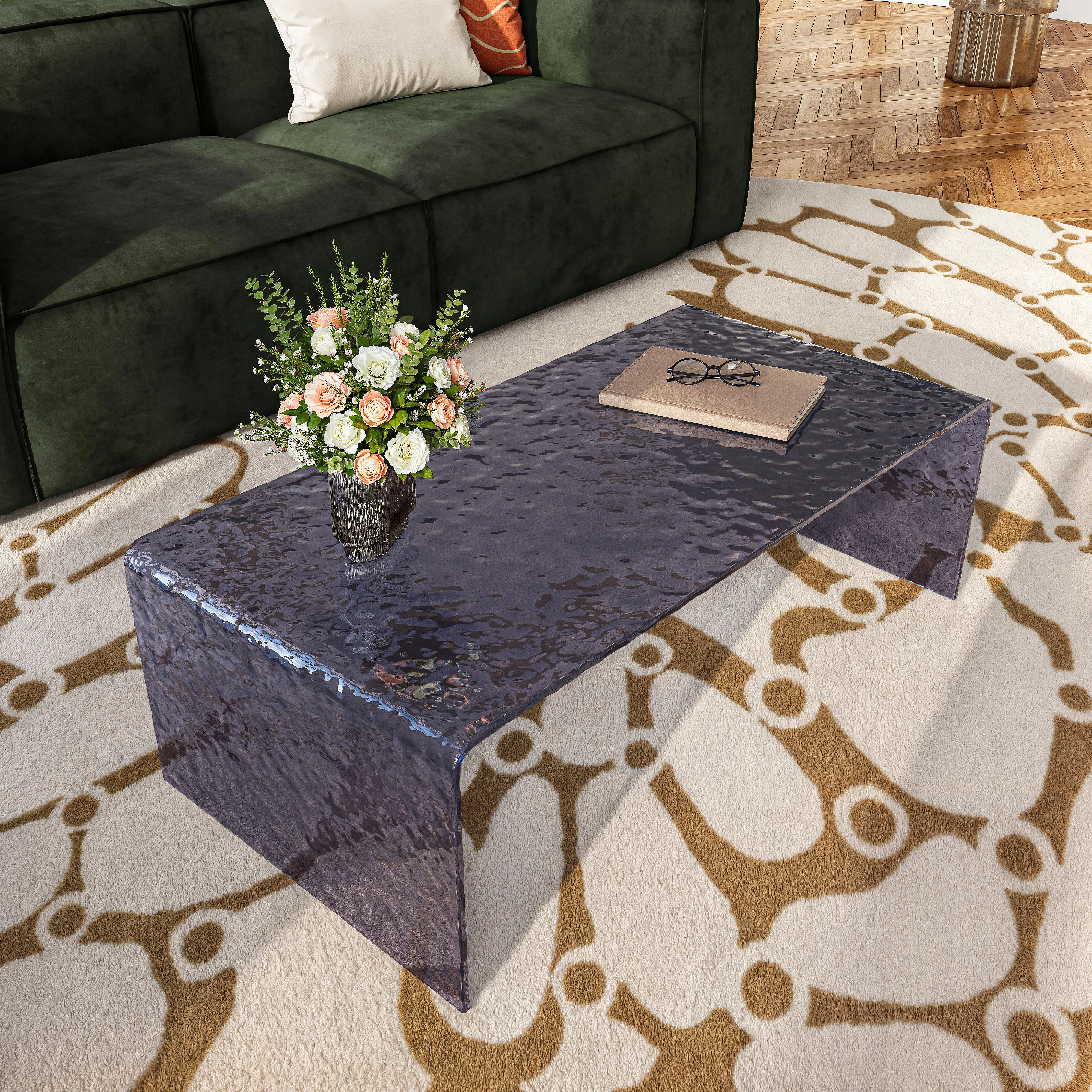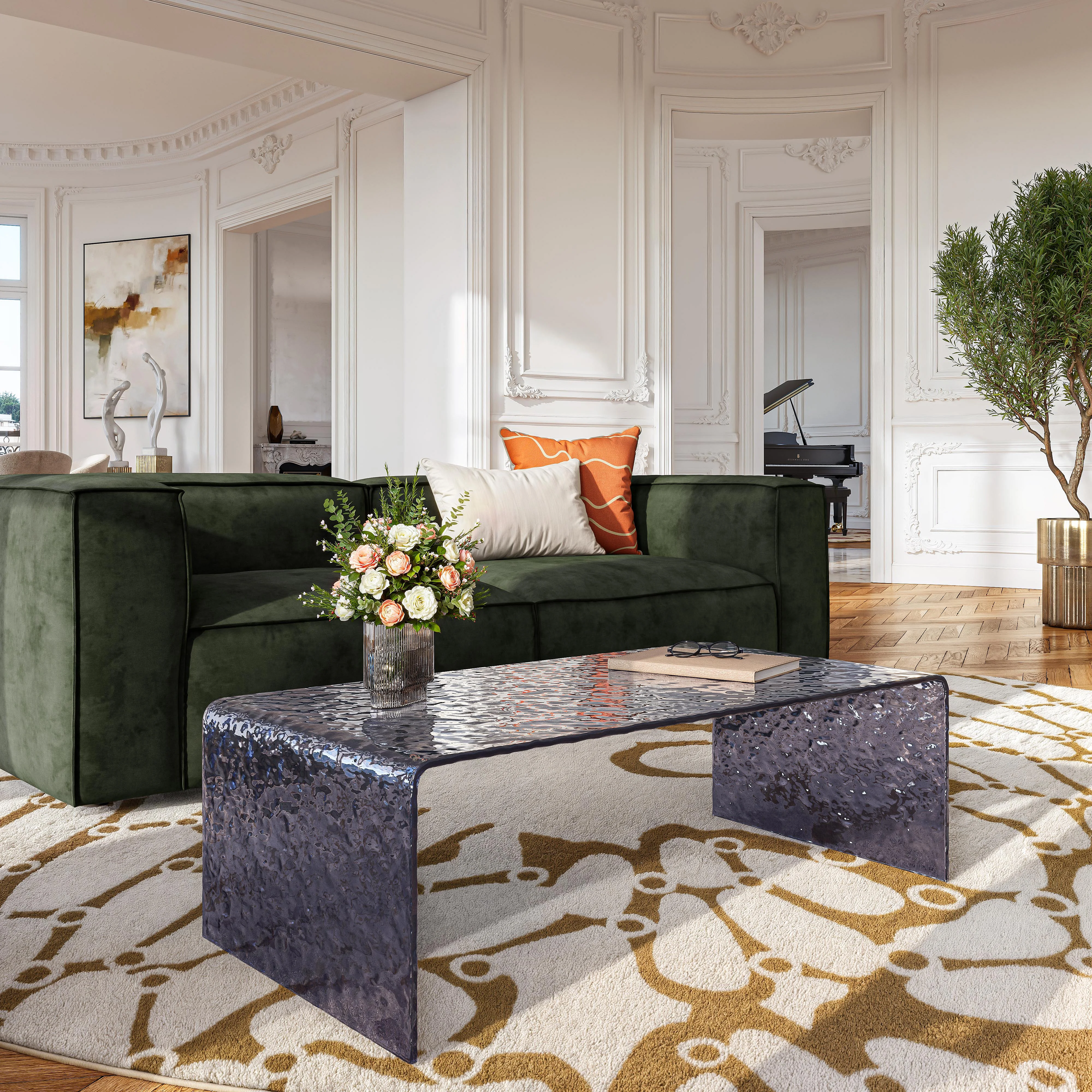 Lignes rectangulaires, verre bullé teinté et transparence définissent cette table basse au caractère affirmé. Une pièce graphique qui structure le salon avec finesse et légèreté.
