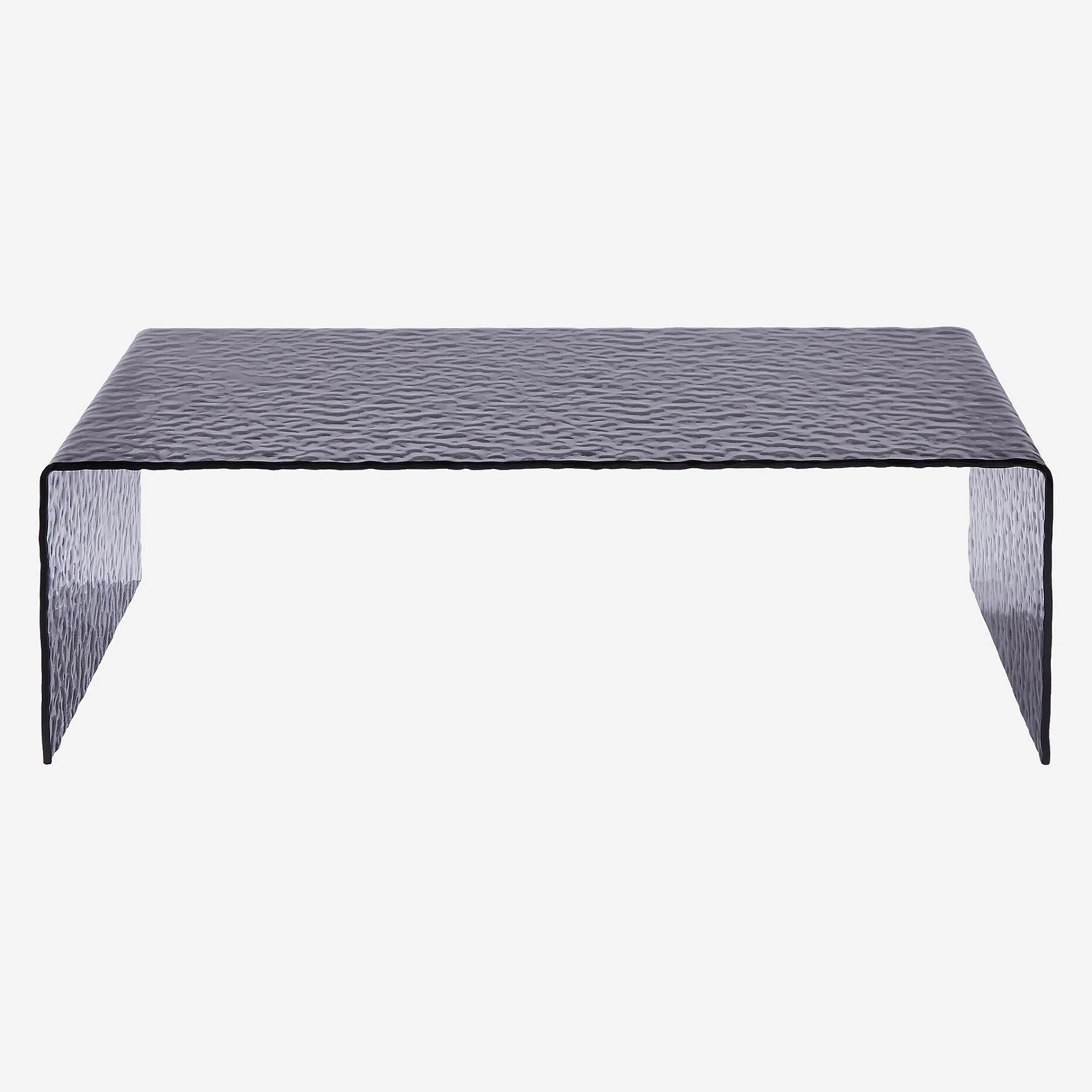 Table basse rectangulaire en verre trempé bullé - Gris fumé