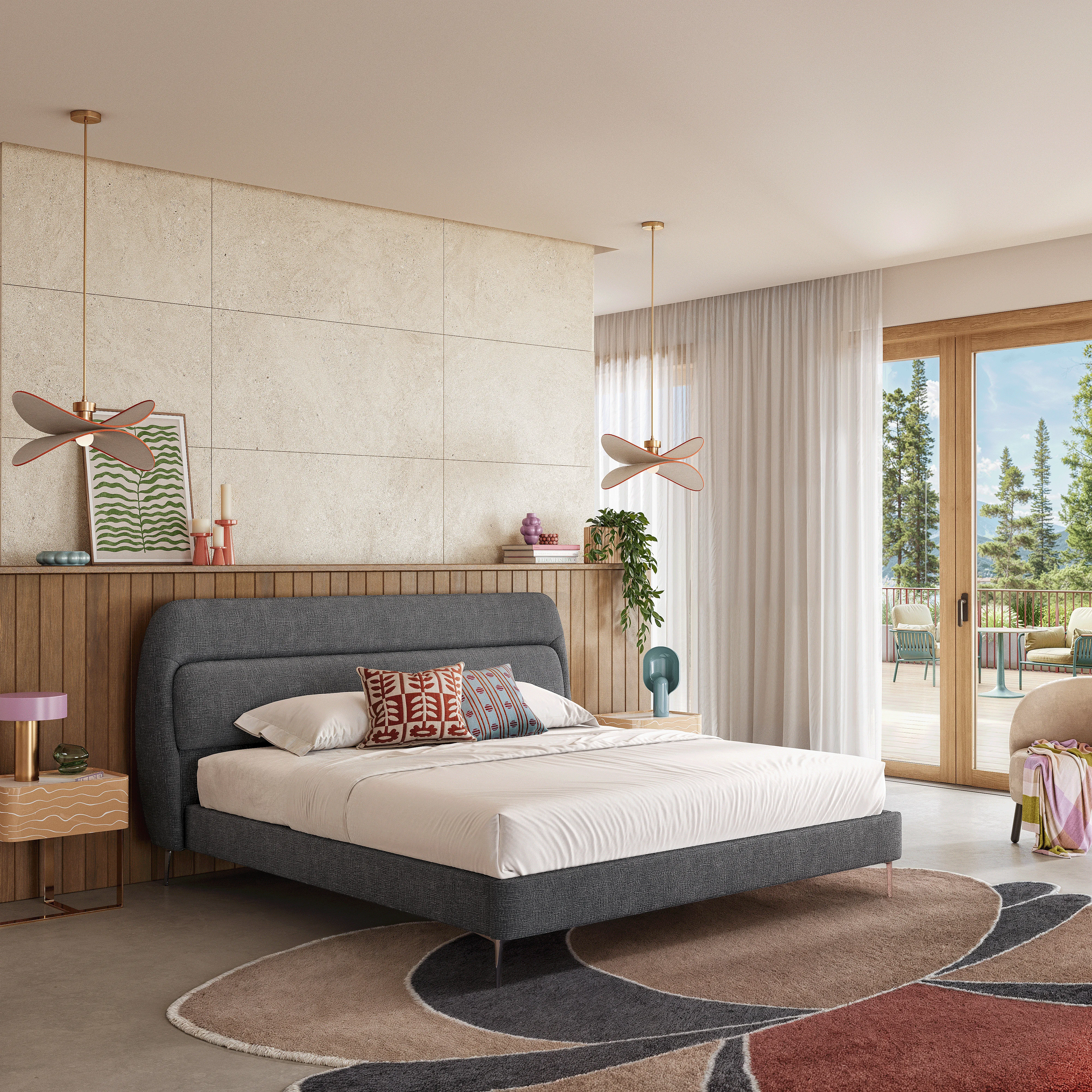 Izmir, un lit à l’élégance discrète porté par des lignes épurées et aériennes. Il structure la chambre avec légèreté tout en créant une atmosphère apaisante.