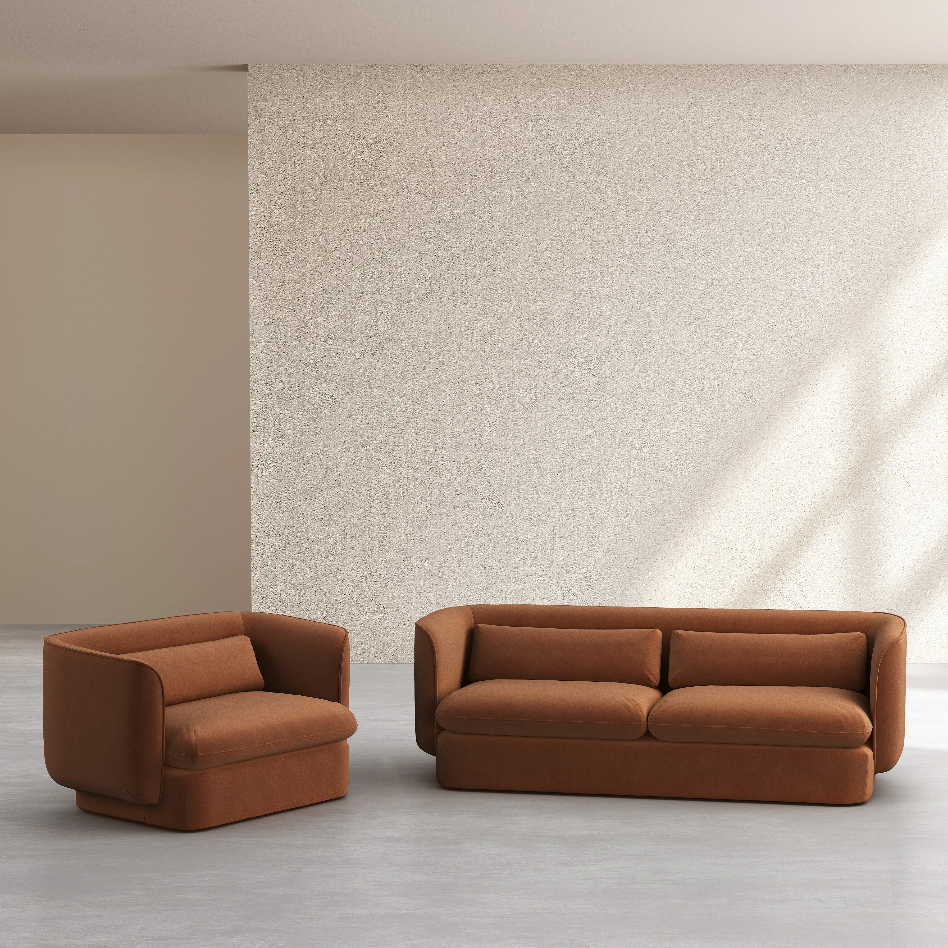 Kalmia mise sur une silhouette enveloppante et un confort moelleux garni de plumes. Un fauteuil pensé pour composer un coin détente élégant et contemporain.