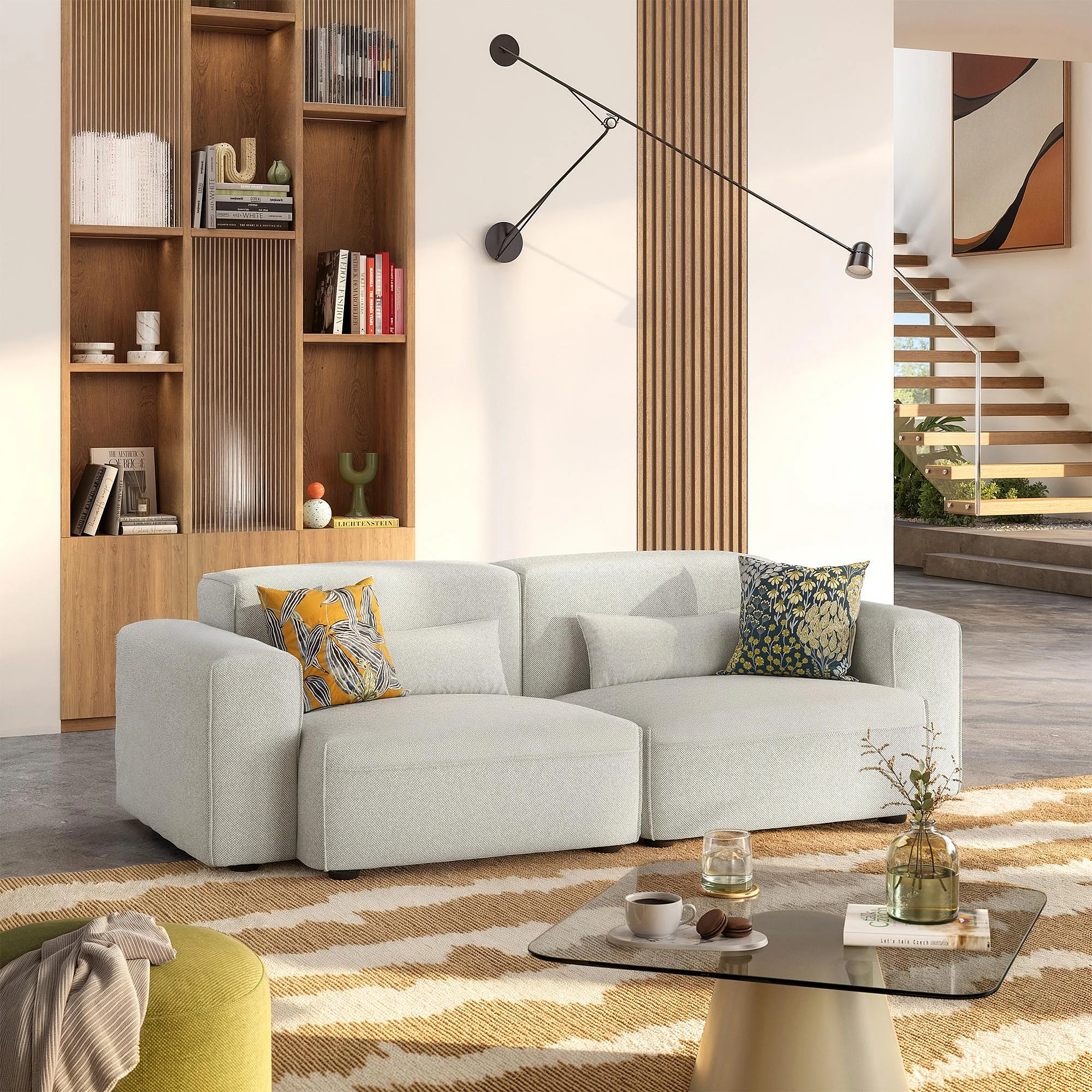 Kofi mêle courbes amples, douceur du tissu et confort durable pour créer un cocon moderne. Un canapé pensé pour composer un espace chaleureux, lumineux et enveloppant.