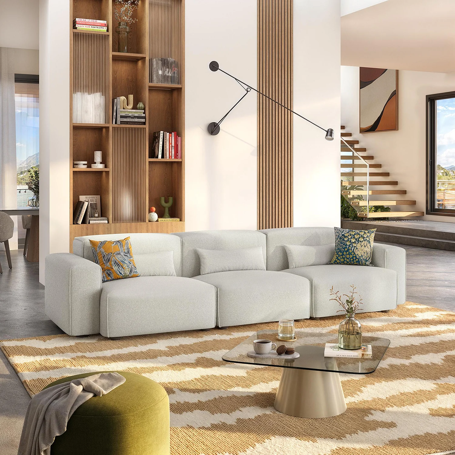 Kofi mêle courbes amples, douceur du tissu et confort durable pour créer un cocon moderne. Un canapé pensé pour composer un espace chaleureux, lumineux et enveloppant.