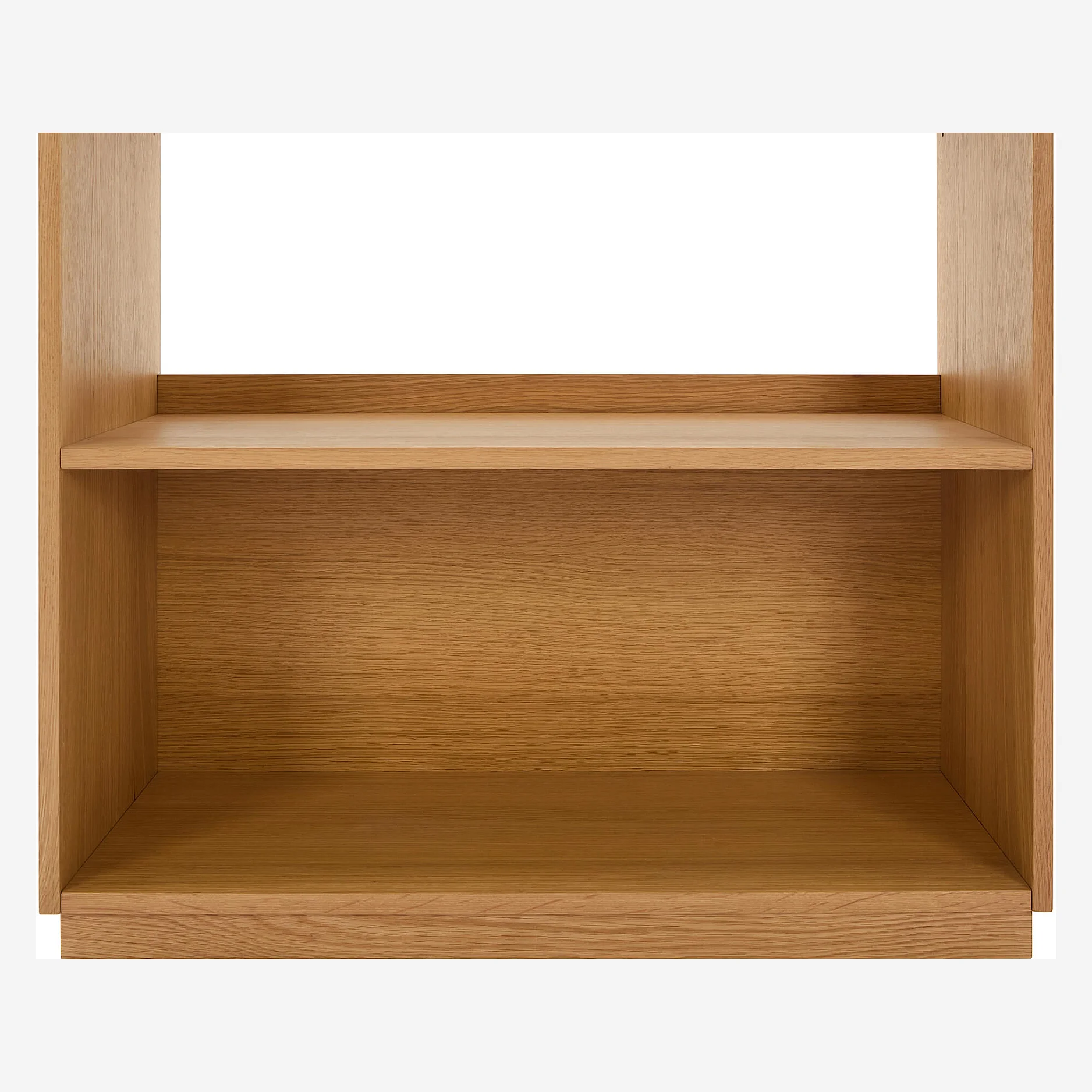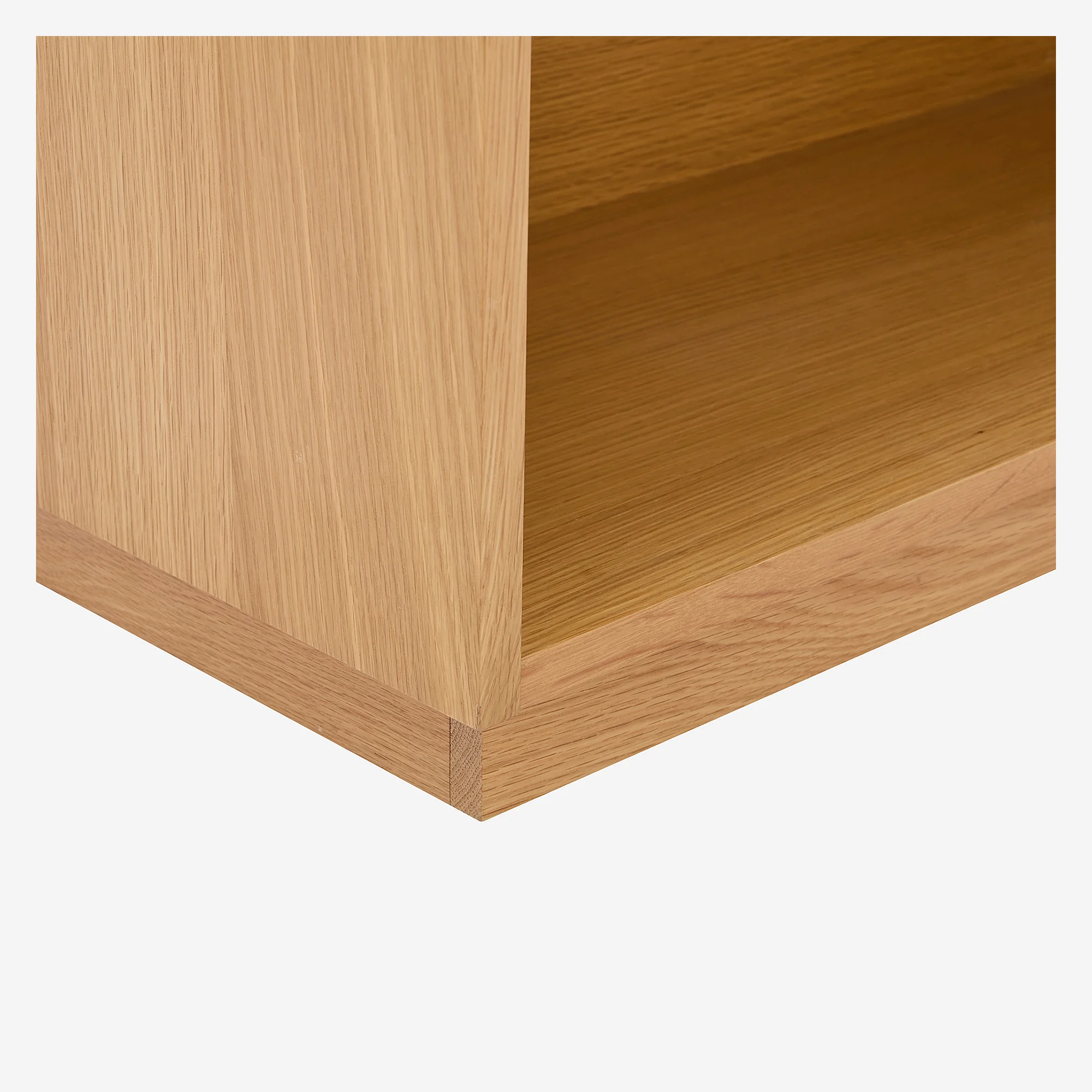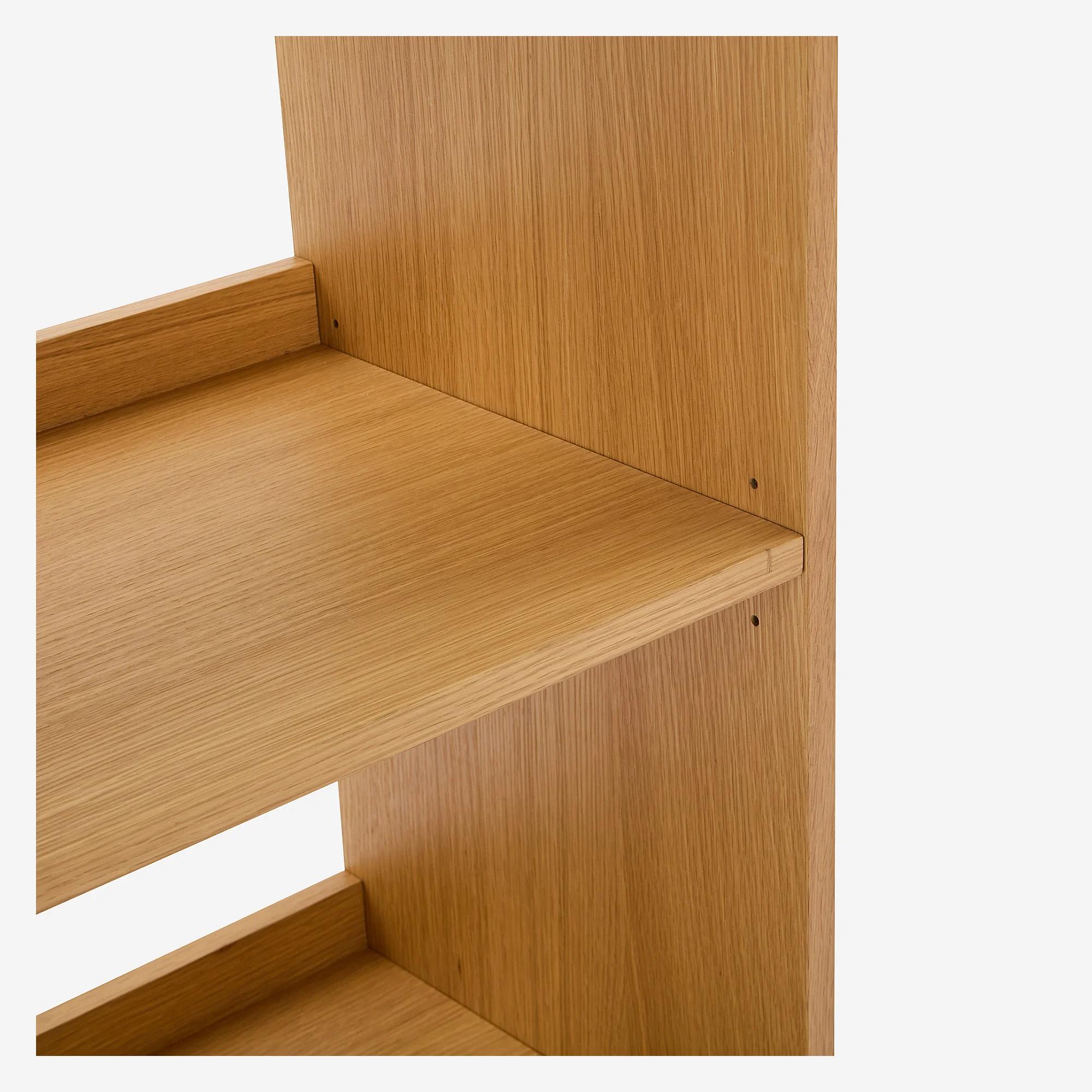 Kuda joue sur le rythme entre niches ouvertes et rangements fermés pour structurer l’espace avec équilibre. Une bibliothèque graphique et fonctionnelle, pensée pour accueillir livres et objets avec style.