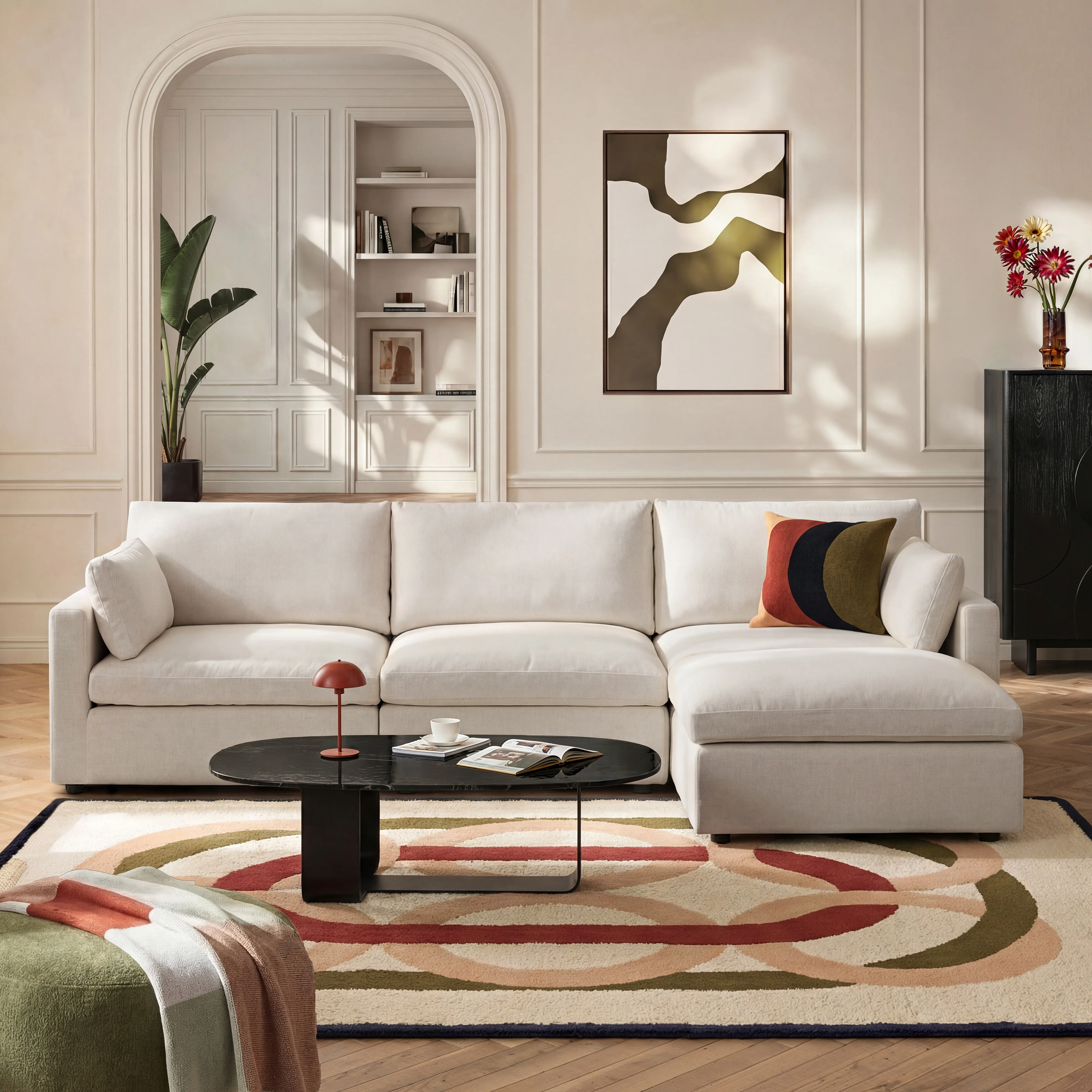 Lavinio réinvente le canapé modulable avec une silhouette épurée et un confort généreux. Ses modules s’assemblent librement pour composer, agrandir ou transformer votre canapé au fil de la vie.