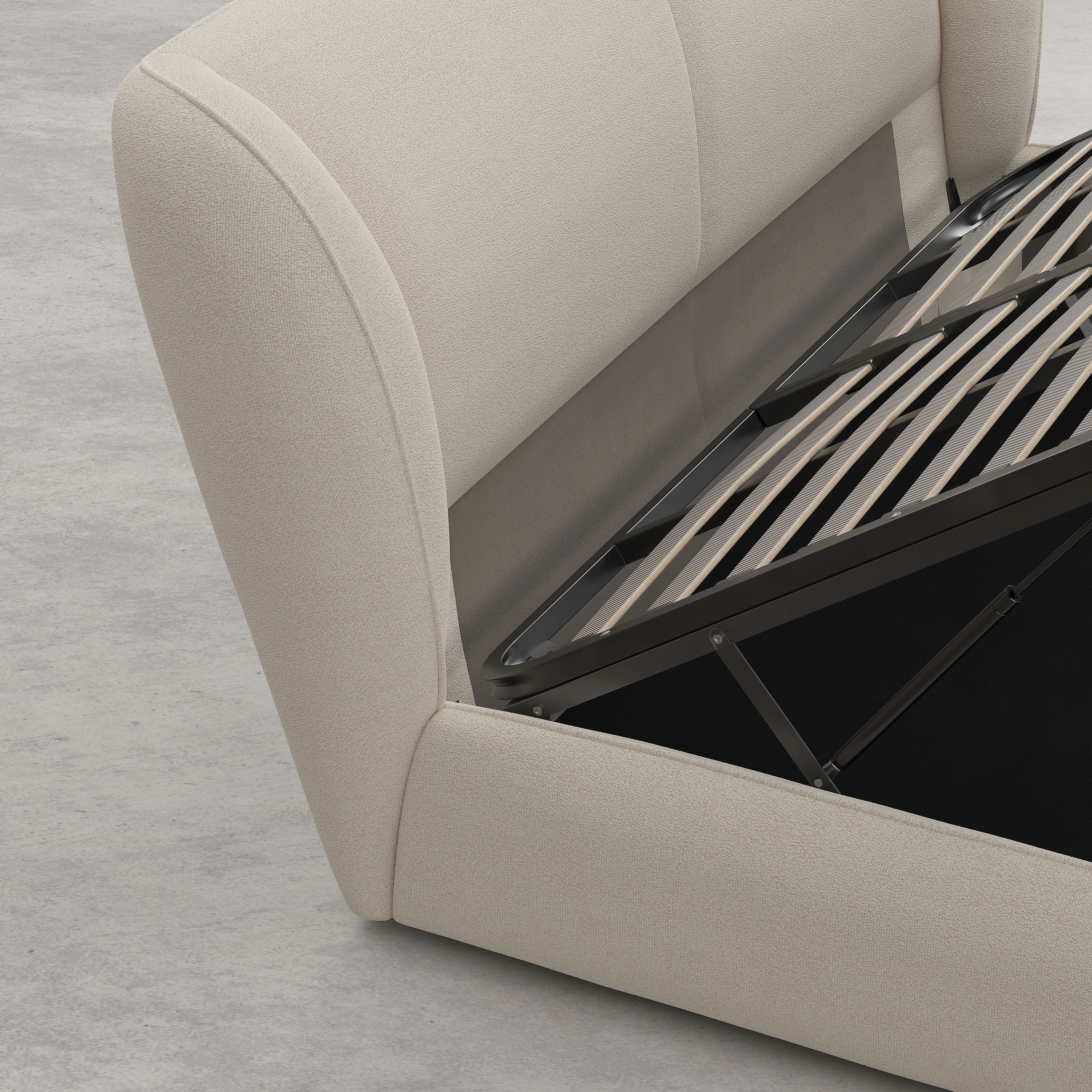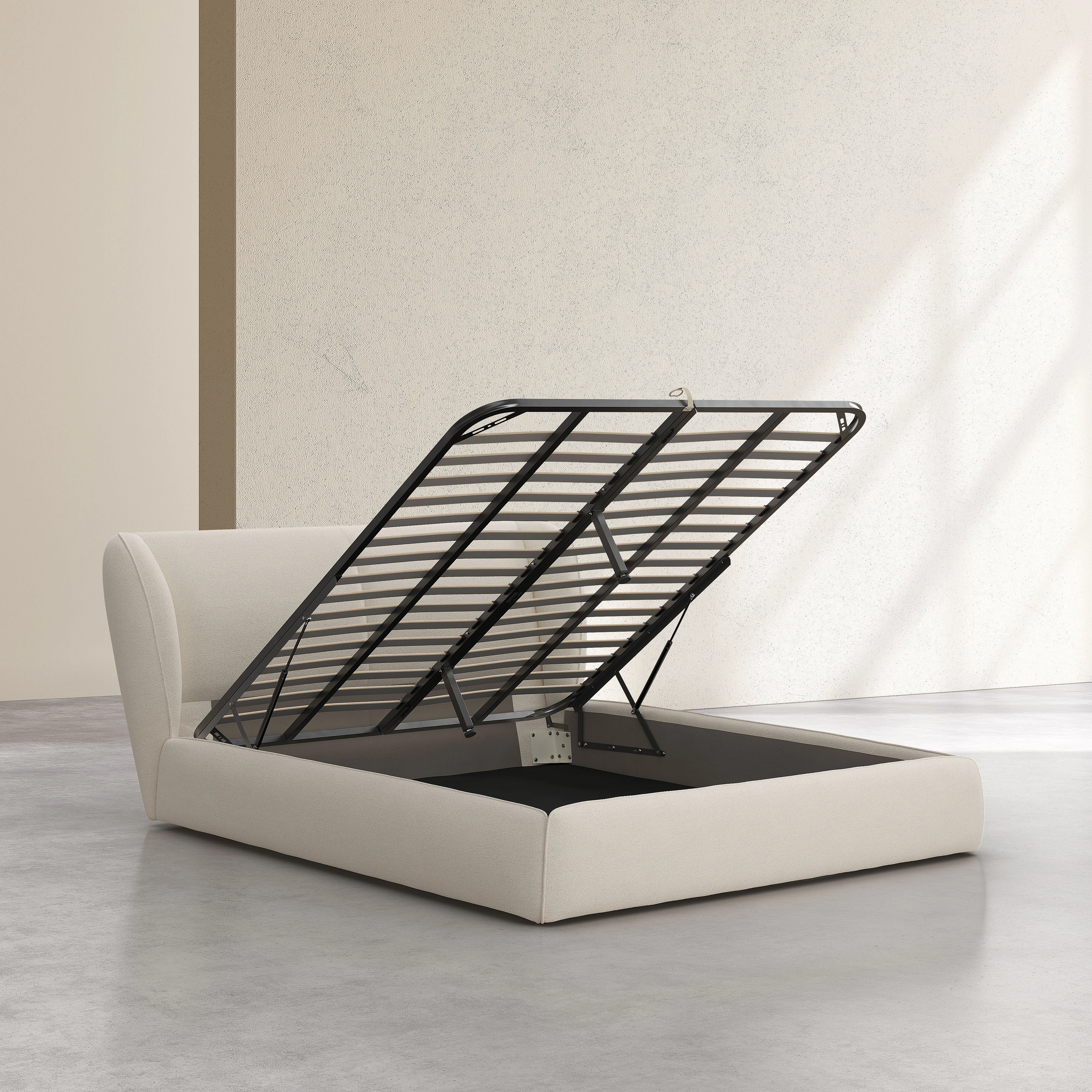 Le lit Malo transforme la chambre en un cocon contemporain grâce à sa bouclette moelleuse et sa capacité de rangement dissimulée. Un design pensé pour conjuguer confort et praticité.