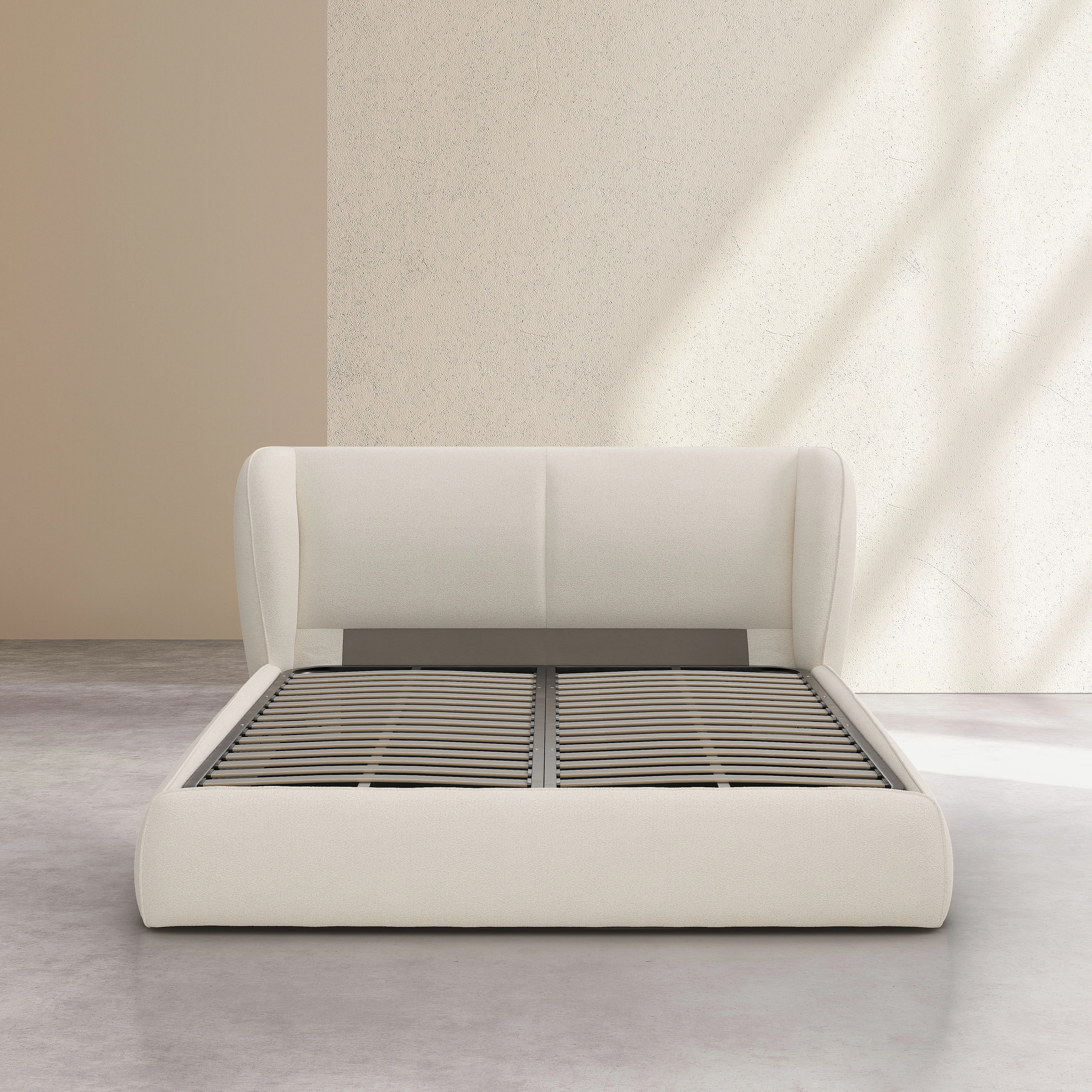 Lit coffre 160 x 200 cm en tissu bouclette courte - Beige meringue