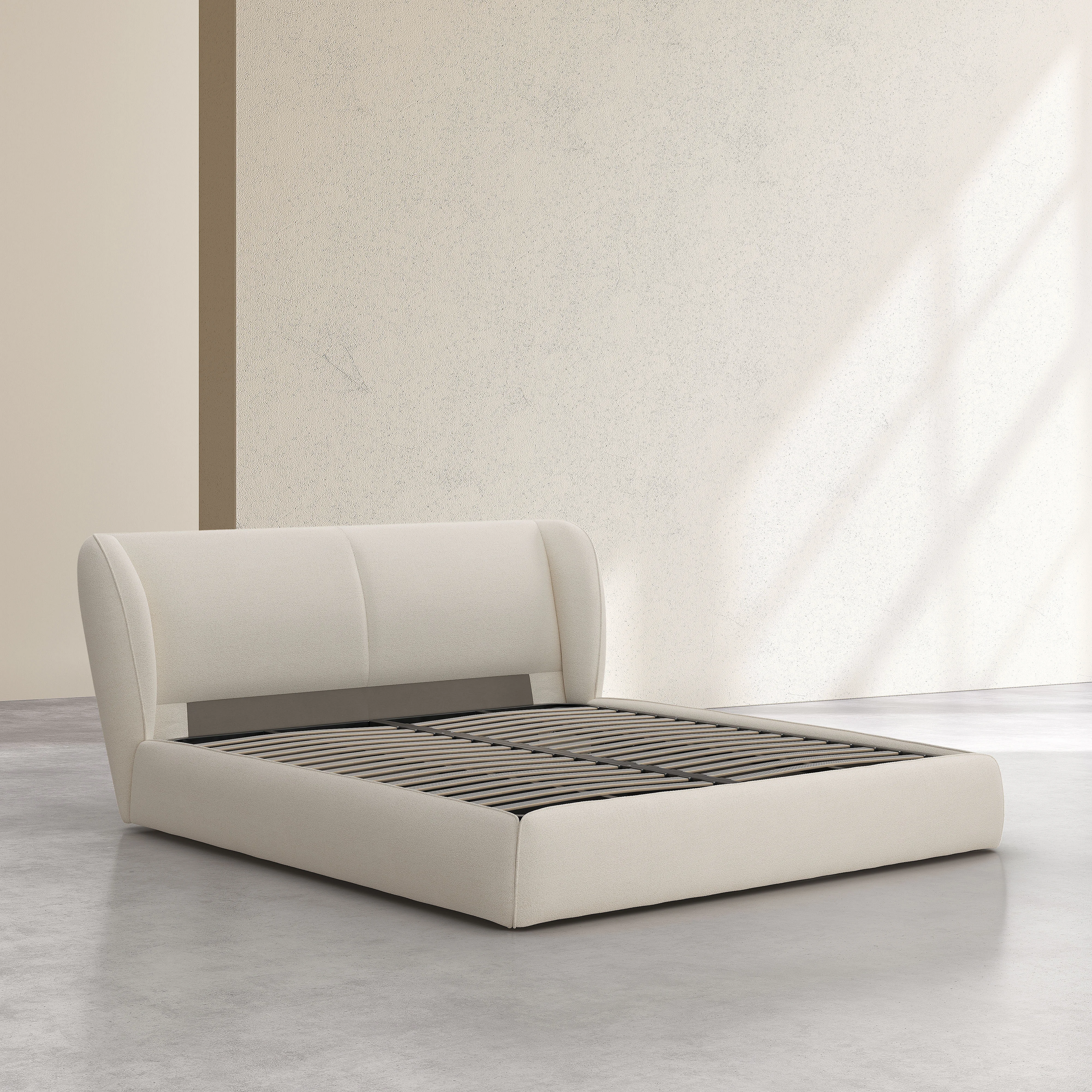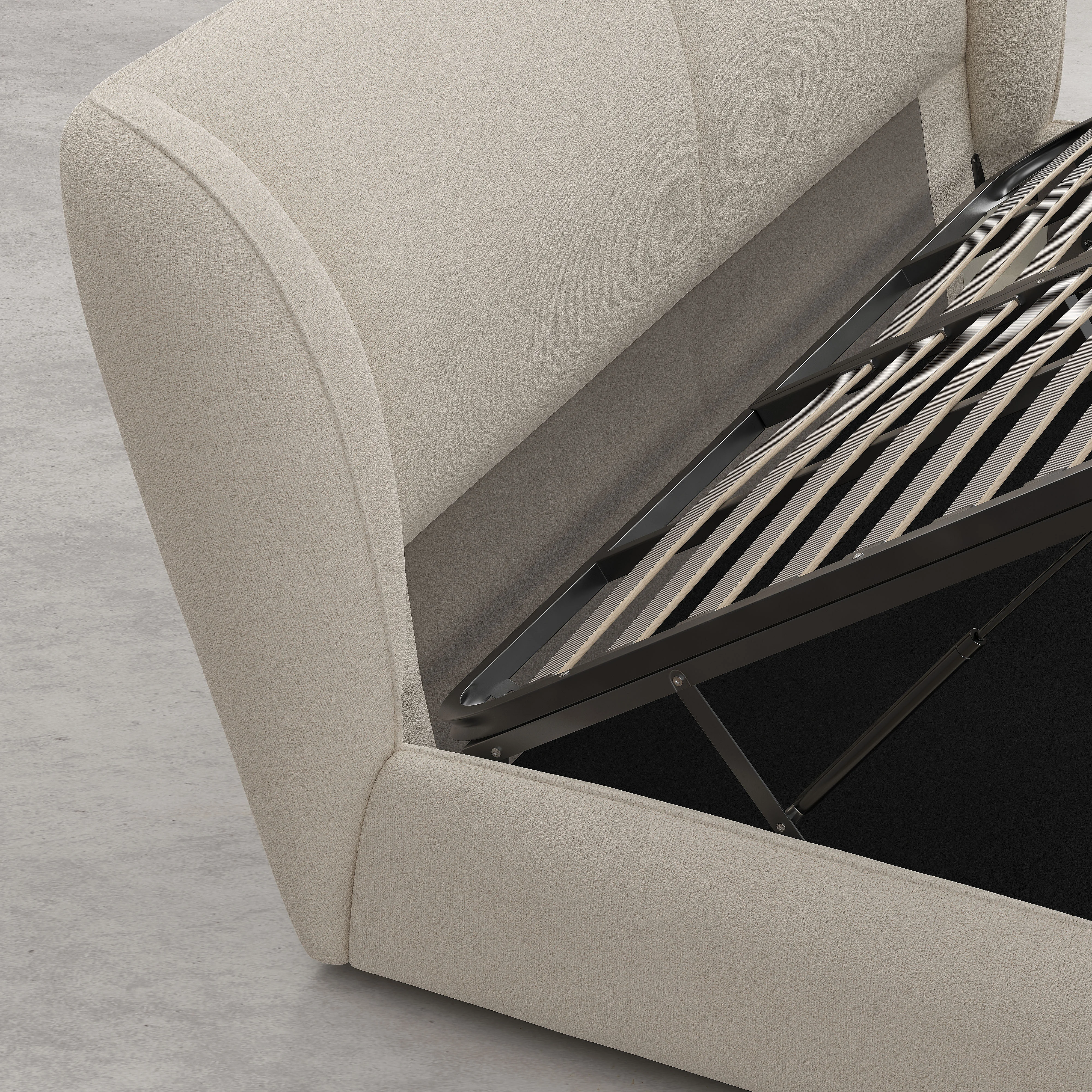 Le lit Malo transforme la chambre en un cocon contemporain grâce à sa bouclette moelleuse et sa capacité de rangement dissimulée. Un design pensé pour conjuguer confort et praticité.