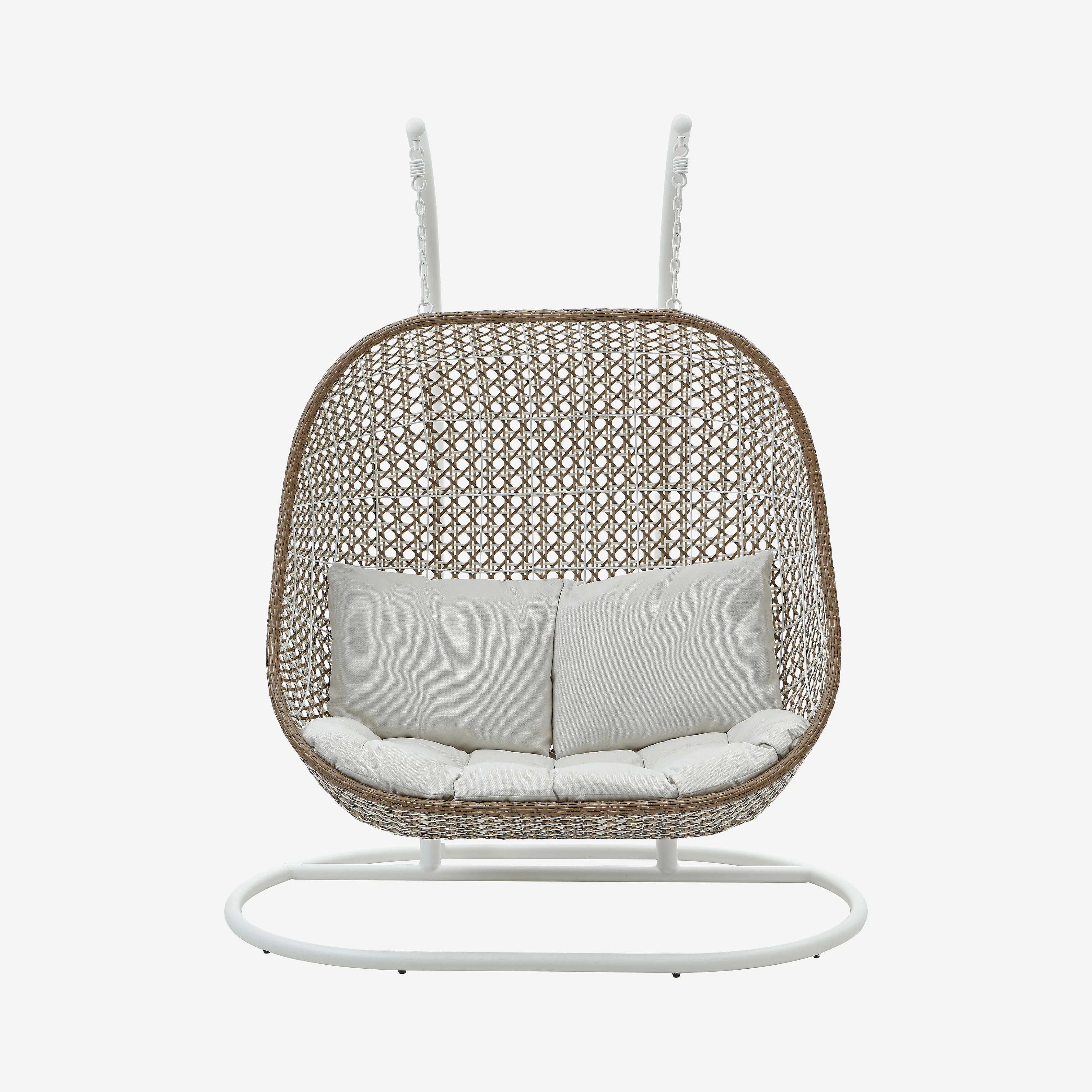 Fauteuil suspendu 2 places pour extérieur en résine tressée - Moka et blanc